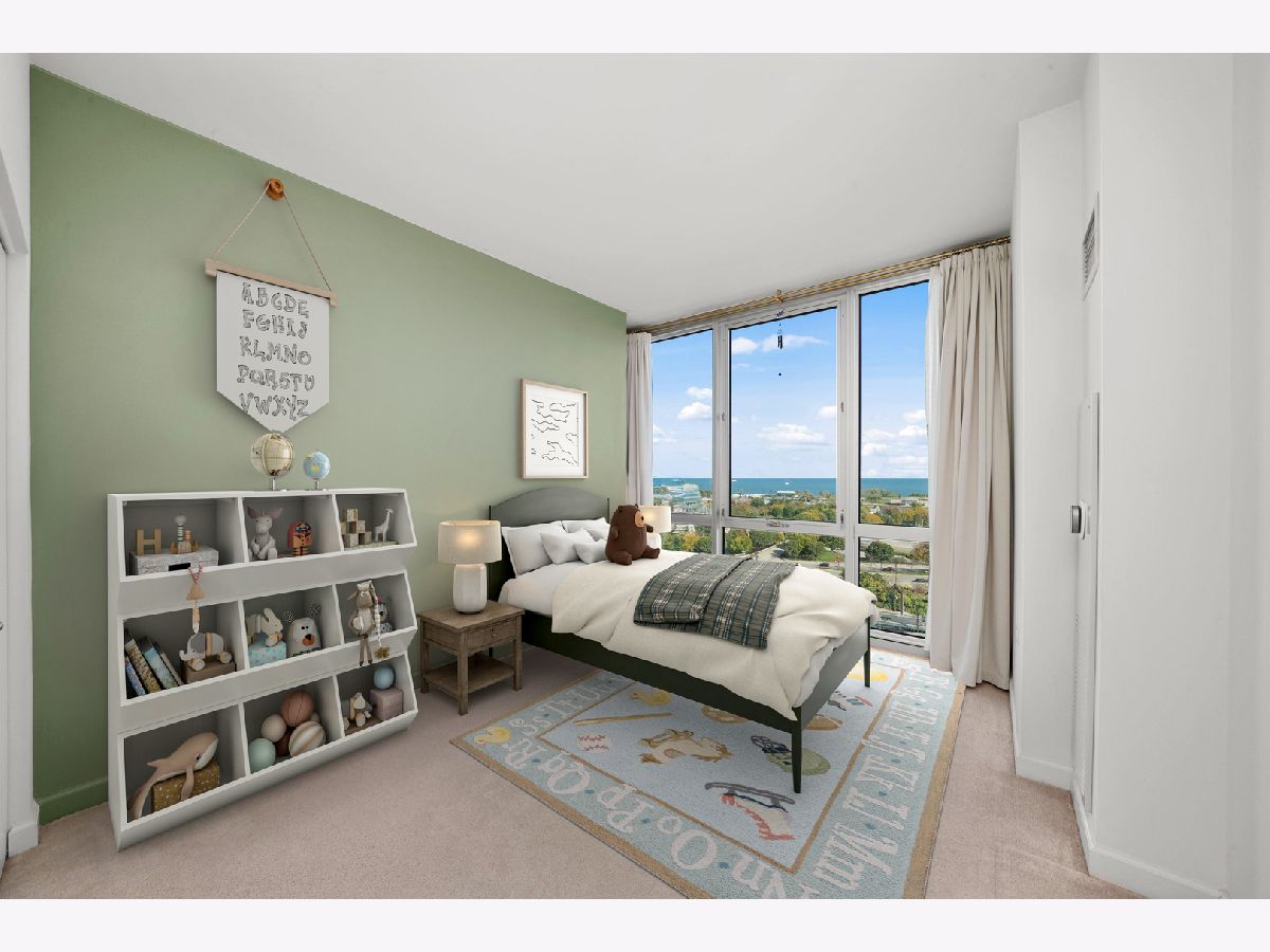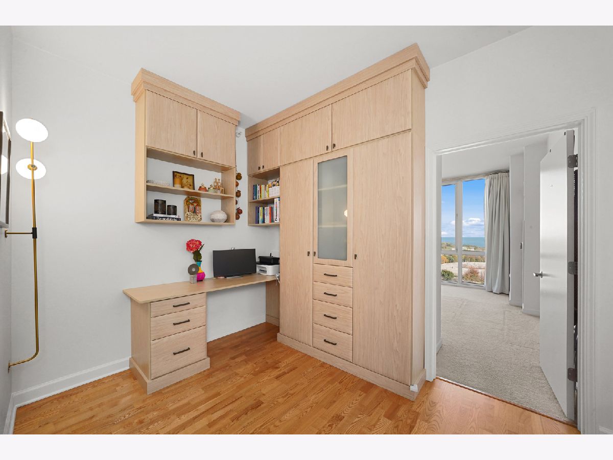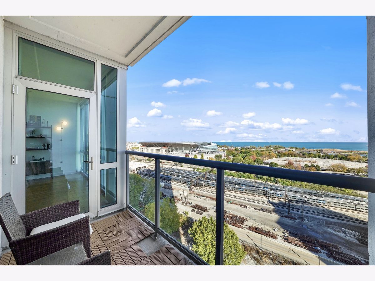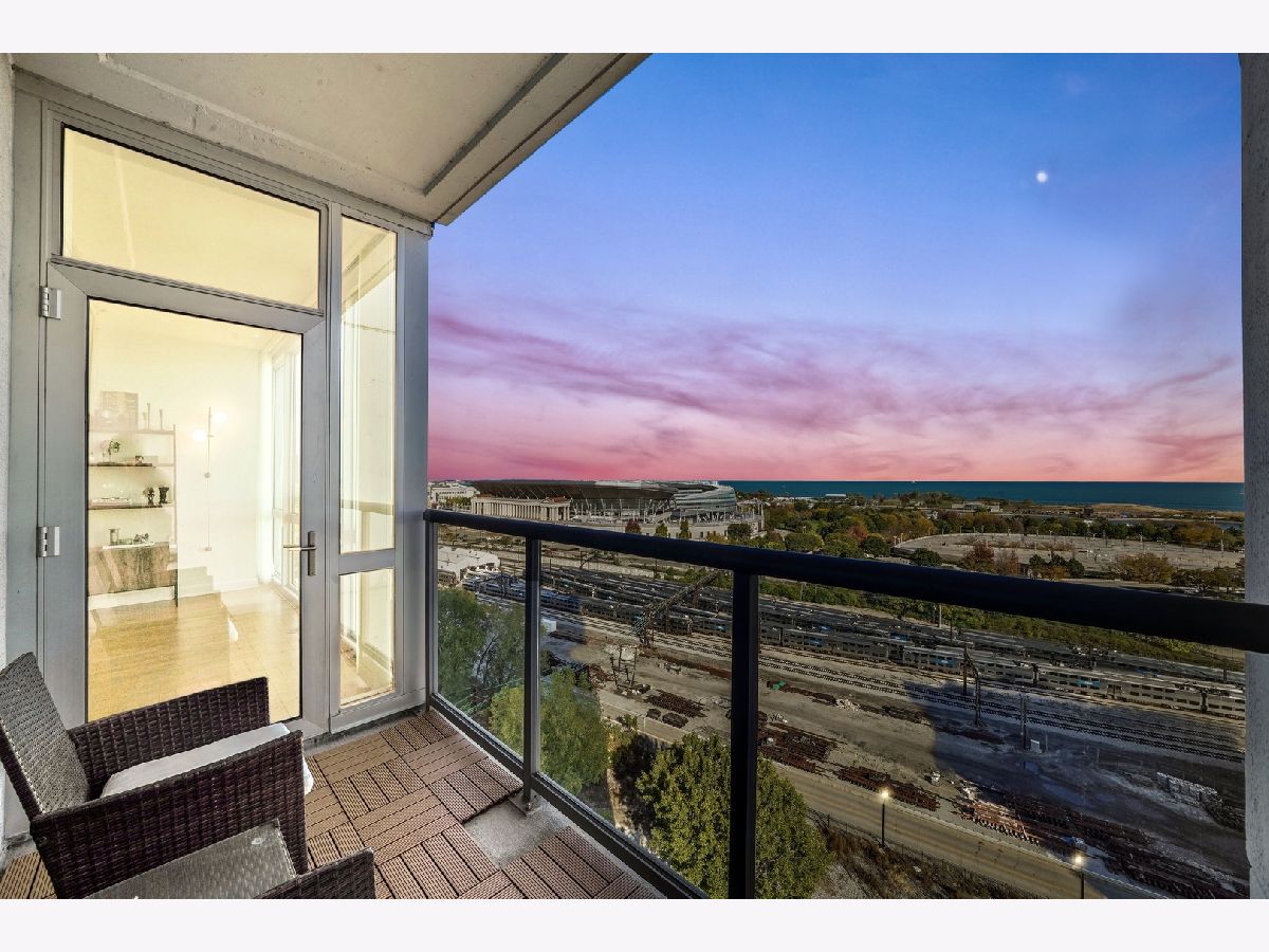 Enjoy postcard sunrises and expansive views of Lake Michigan from the floor to ceiling windows in this stunning split 2 bedroom + den, 2 bath condo at Adler Place! Walk in and be dazzled by the open concept kitchen featuring stainless steel appliances, crisp white 42" cabinetry with luxurious gold hardware and new white quartz countertops. Pull up a stool at the breakfast bar or flow seamlessly into the open concept dining room where engineered oak hardwoods and a designer chandelier await. Relax and soak up the sun in your well appointed living room or head out to the xl balcony perfect for relaxing with a cup of coffee/wine or for grilling and entertaining during the next big game or concert at neighboring Soldier Field and Northerly Island! Head back into the primary bedroom which easily fits a king size bed and showcases a generous organized walk-in closet. The attached ensuite features a double vanity w quartz countertop, upgraded lighting and spacious walk-in shower. The guest bed easily fits a queen and the guest bath features a new vanity w/ quartz countertop, updated shower hardware and lighting! For the work from home crowd, start your day from the comfort of the fully customized and built-in home office in the den. Adler is a full amenity building with 24/7 doorstaff, full time on-site property management, maintenance and engineering, a massive sundeck and party room, outdoor pool with skyline views, a well equipped fitness center, extra storage and a heated on-site garage. Ideally tucked away in the heart of Prairie District near local favorites Spoke&Bird and The Staley and just steps to the bike & jogging path, Soldier Field, Northerly Island, Women's Park & Garden, Mariano's and much more!
