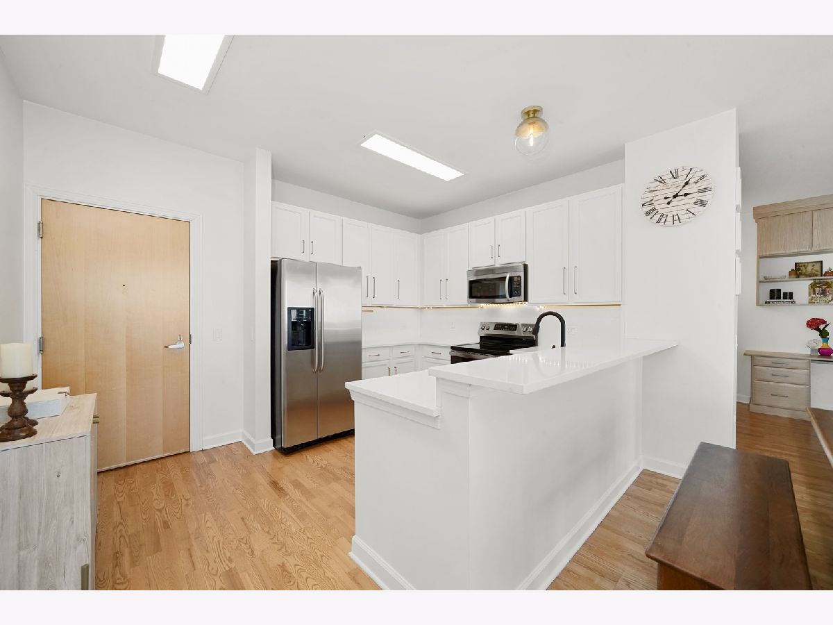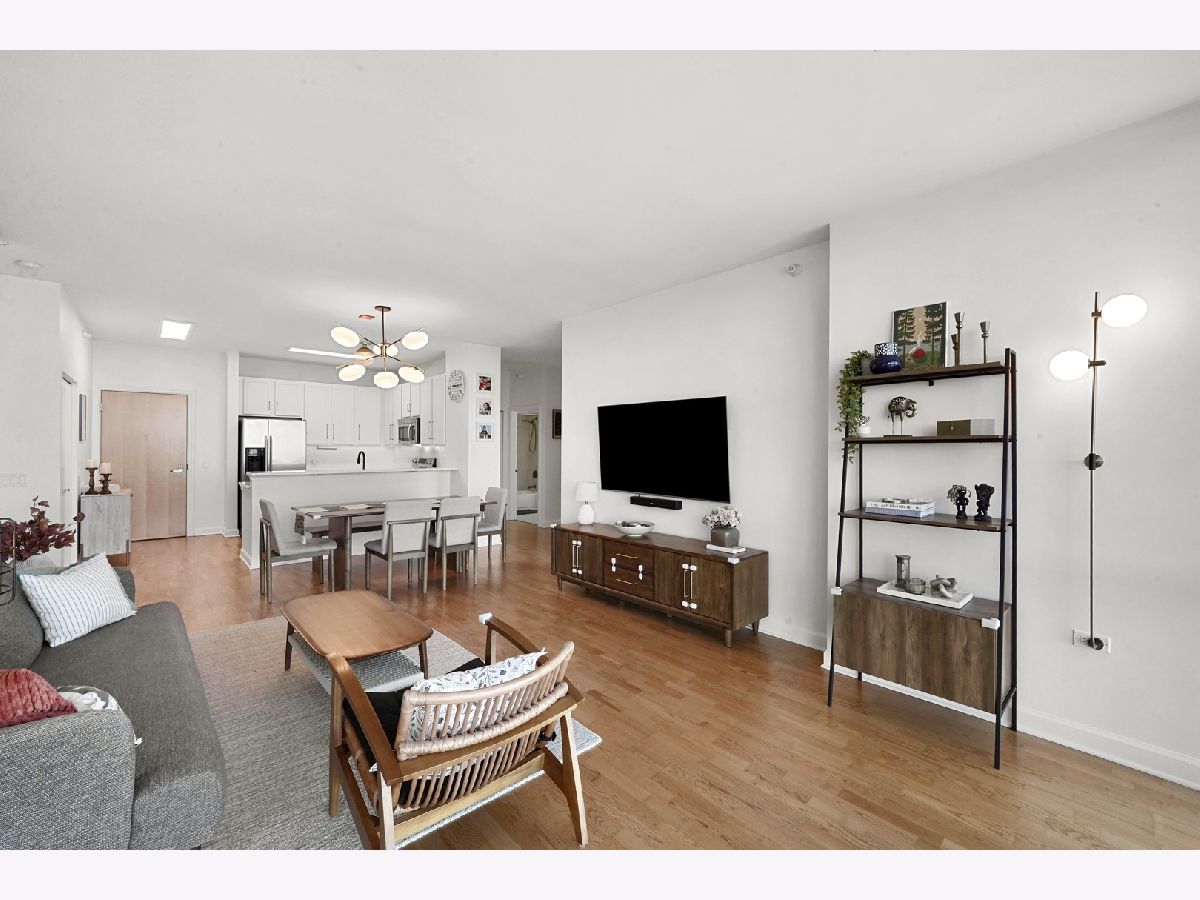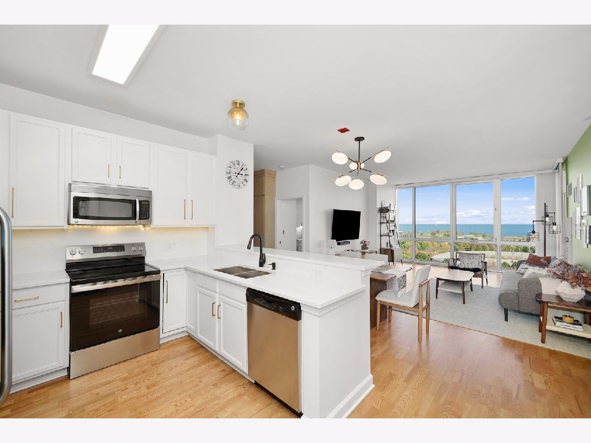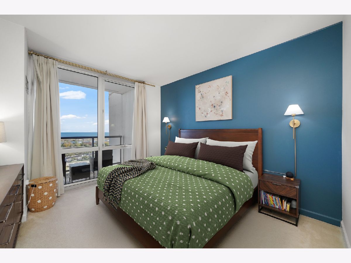 Enjoy postcard sunrises and expansive views of Lake Michigan from the floor to ceiling windows in this stunning split 2 bedroom + den, 2 bath condo at Adler Place! Walk in and be dazzled by the open concept kitchen featuring stainless steel appliances, crisp white 42" cabinetry with luxurious gold hardware and new white quartz countertops. Pull up a stool at the breakfast bar or flow seamlessly into the open concept dining room where engineered oak hardwoods and a designer chandelier await. Relax and soak up the sun in your well appointed living room or head out to the xl balcony perfect for relaxing with a cup of coffee/wine or for grilling and entertaining during the next big game or concert at neighboring Soldier Field and Northerly Island! Head back into the primary bedroom which easily fits a king size bed and showcases a generous organized walk-in closet. The attached ensuite features a double vanity w quartz countertop, upgraded lighting and spacious walk-in shower. The guest bed easily fits a queen and the guest bath features a new vanity w/ quartz countertop, updated shower hardware and lighting! For the work from home crowd, start your day from the comfort of the fully customized and built-in home office in the den. Adler is a full amenity building with 24/7 doorstaff, full time on-site property management, maintenance and engineering, a massive sundeck and party room, outdoor pool with skyline views, a well equipped fitness center, extra storage and a heated on-site garage. Ideally tucked away in the heart of Prairie District near local favorites Spoke&Bird and The Staley and just steps to the bike & jogging path, Soldier Field, Northerly Island, Women's Park & Garden, Mariano's and much more!