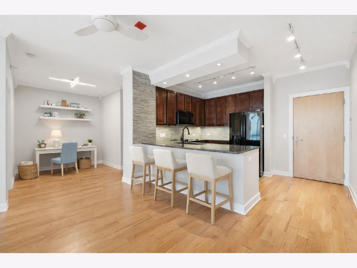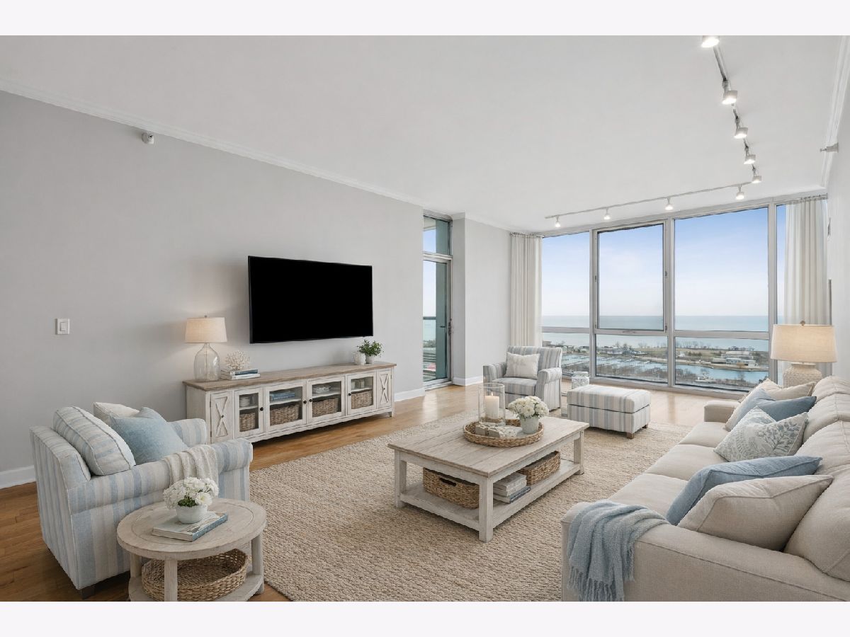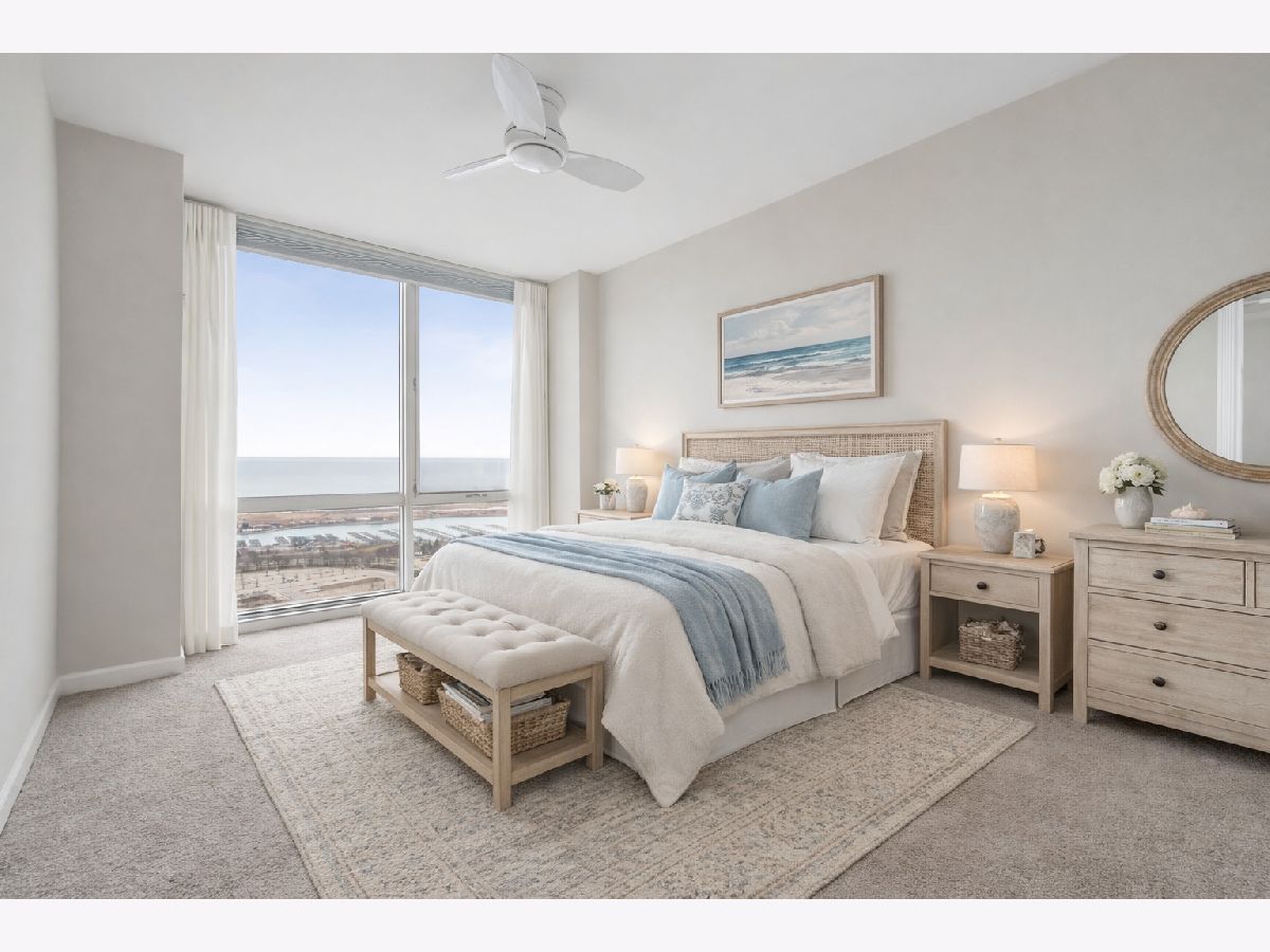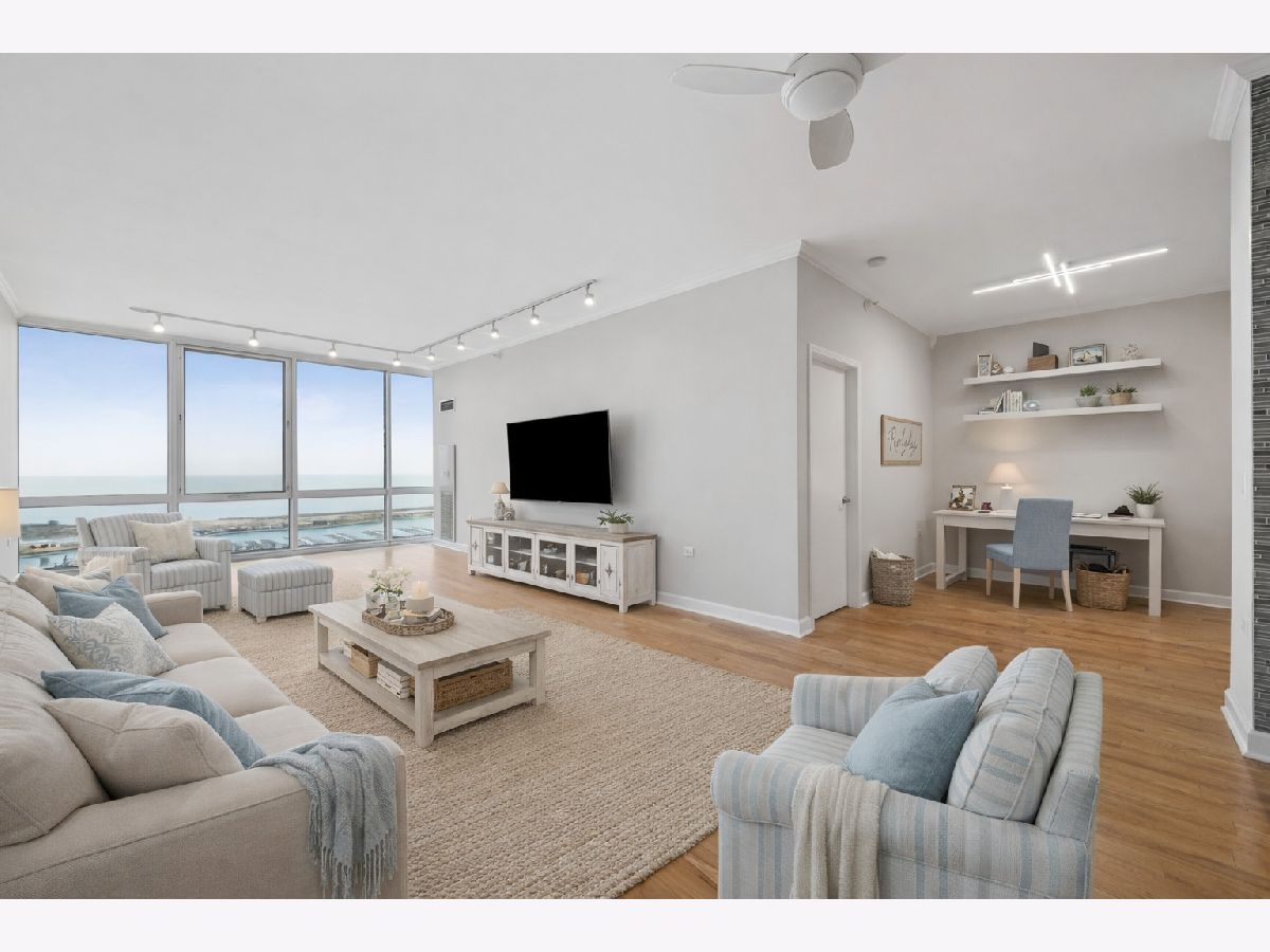 Bright and beautifully positioned two bedroom, two bath plus den residence in the sought-after Prairie District of the South Loop. Spanning almost 1,400 square feet, this home features a wide, open living and dining space framed by floor-to-ceiling windows with sweeping east-facing views of Lake Michigan and the Museum Campus. Step out onto the private balcony to take in the lakefront setting. The kitchen is designed for both everyday living and entertaining, offering ample cabinetry, granite countertops, and a convenient breakfast bar. Just off the main living area, a separate den provides flexible space ideal for a home office, reading nook, or additional lounge area. The primary suite features large windows, a walk-in closet, and an en-suite bath with dual vanity, marble counters, and a glass-enclosed shower. The second bedroom is well-proportioned and enjoys excellent natural light with eastern exposure. In-unit laundry adds everyday convenience. Residents enjoy a full-service building with 24-hour door staff, rooftop sundeck, outdoor pool, fitness center, hospitality room, and bike storage. Ideally located just moments from the lakefront, Museum Campus, Grant Park, and the vibrant dining and shopping options that define South Loop living.
