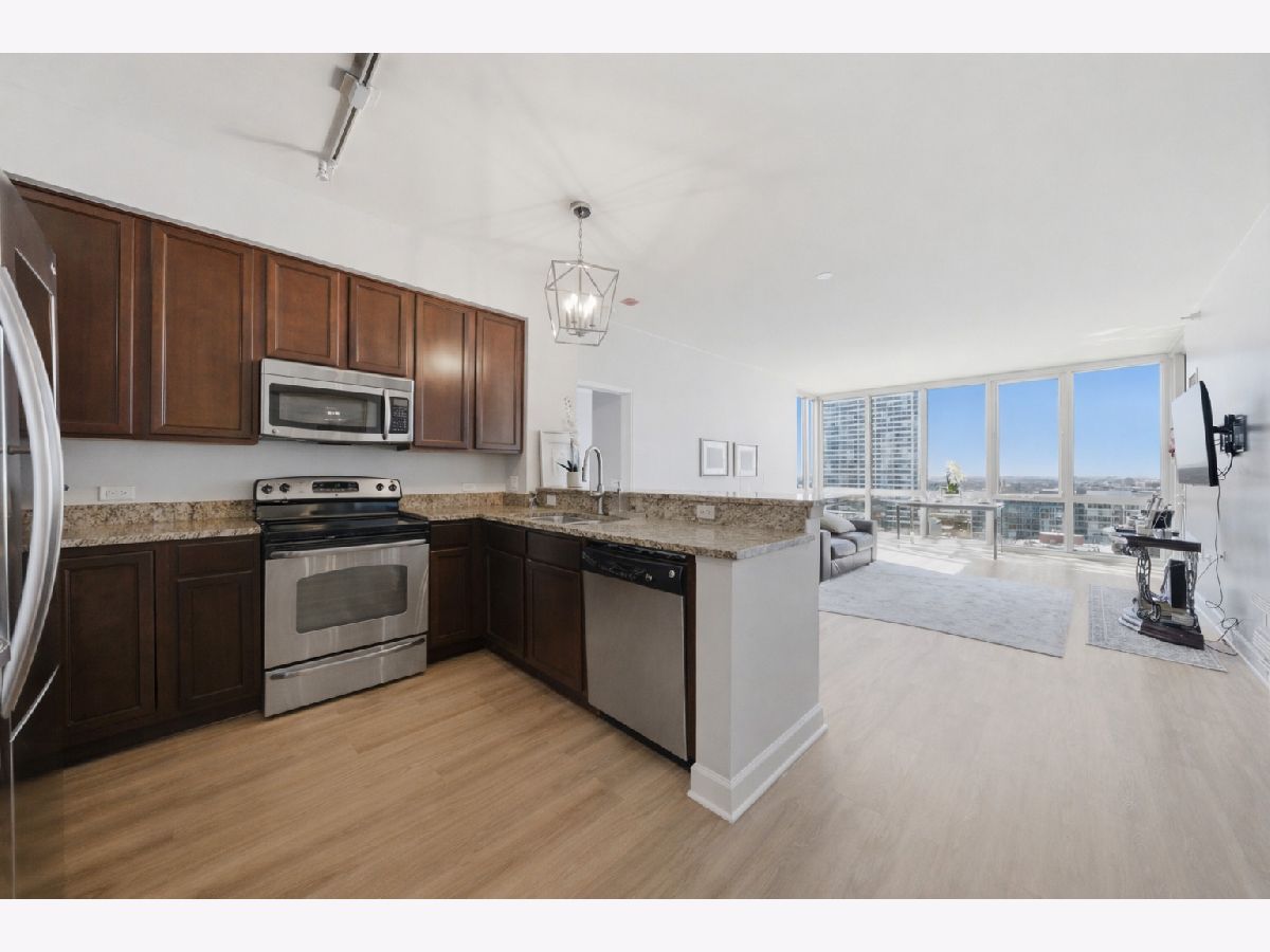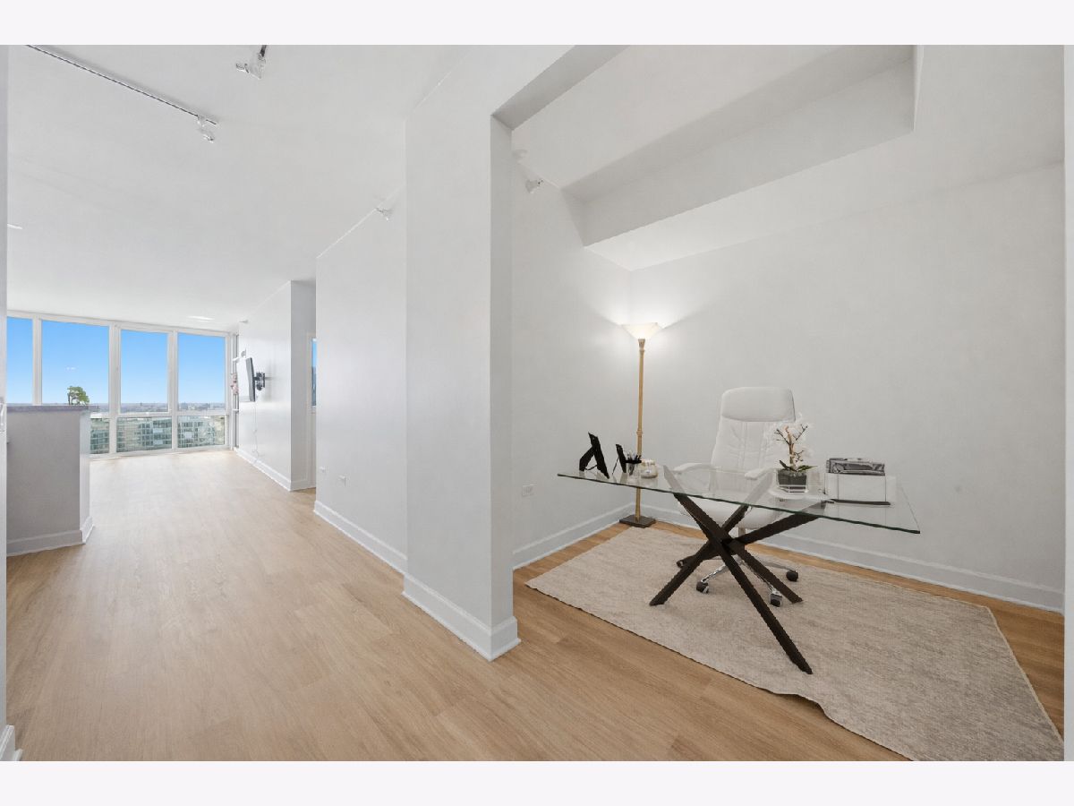 Nothing to do but move right in to this beautifully updated 2 bedroom, 2 bath plus den condo with stunning west-facing sunset views in the highly sought-after Prairie District of the South Loop at 1629 S. Prairie Avenue. Situated on the 18th floor, this home is filled with natural light and features floor-to-ceiling windows in every room. The spacious 1,250 square foot residence offers a highly desirable split-bedroom floor plan and brand-new flooring throughout the entire unit. The open-concept layout seamlessly connects the kitchen and family room, creating the perfect space for both everyday living and entertaining. The generous primary suite features floor-to-ceiling windows, excellent closet space, and an upgraded marble bathroom with double vanity and refined finishes. The second bedroom is well-sized and privately located on the opposite side of the home. A versatile den provides the perfect work-from-home space and can also serve as additional storage, a workout area, or a flexible bonus room depending on your needs.Recent updates include brand-new flooring throughout, a new refrigerator, newer washer and dryer, and fresh paint in the bathrooms and den. This full-service, pet-friendly and investor-friendly building offers outstanding amenities including 24-hour door staff, on-site management, a large fitness center, rooftop pool with incredible skyline views, and an expansive community room with full kitchen and grill deck perfect for entertaining.Located in the heart of the historic Prairie District, you are just steps from the lakefront, bike and jogging path, Soldier Field, Museum Campus, parks, and dining.Additional conveniences include a storage cage and dedicated dog run. Garage parking available for $35,000.