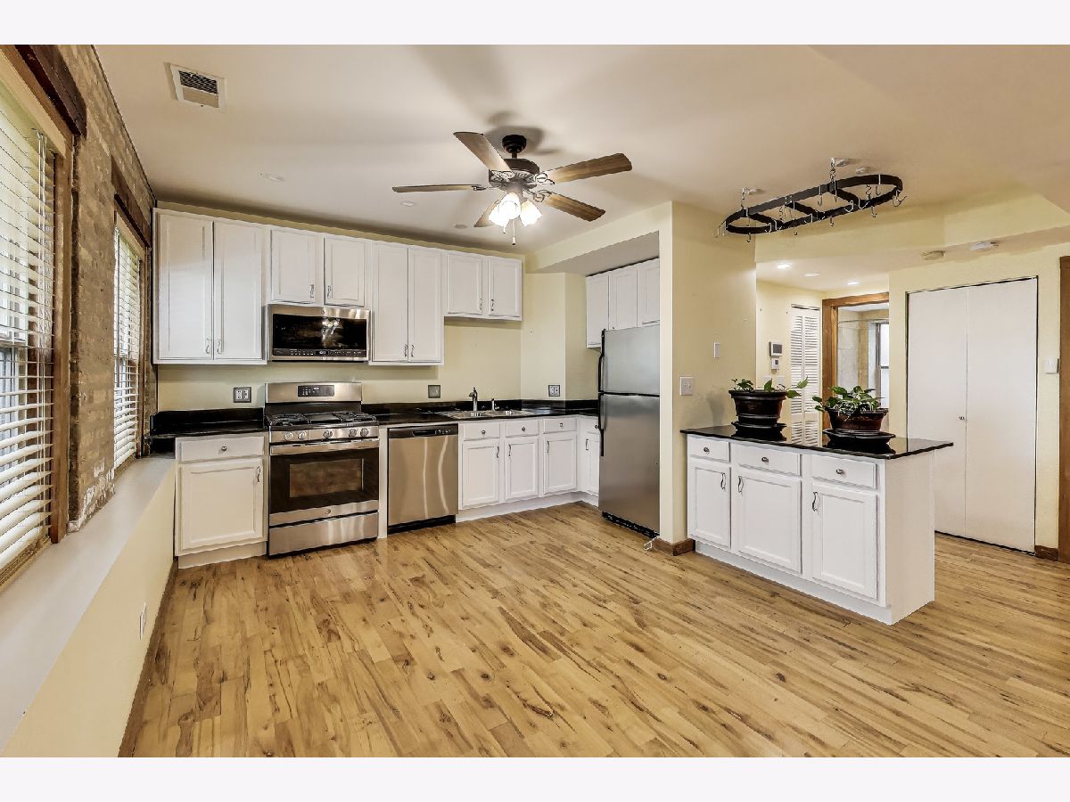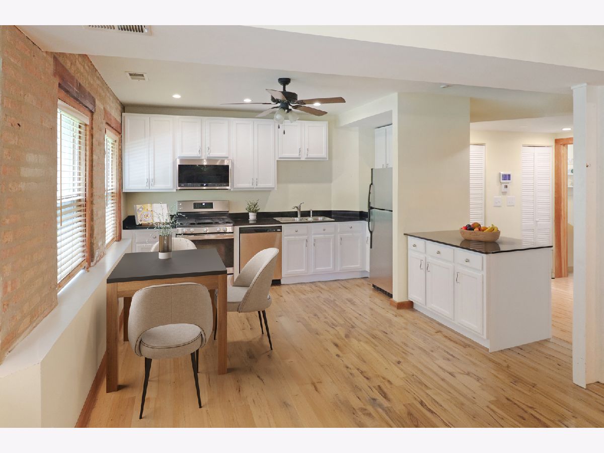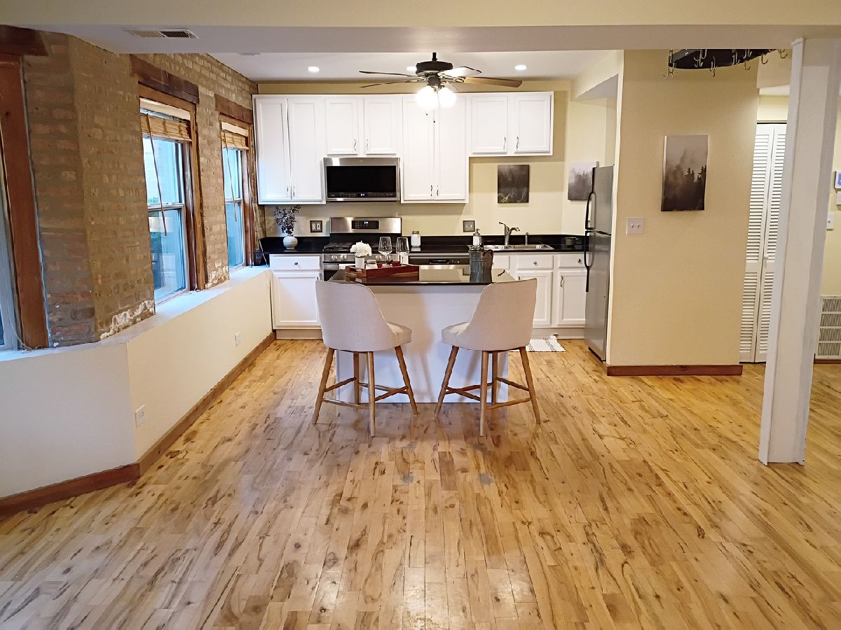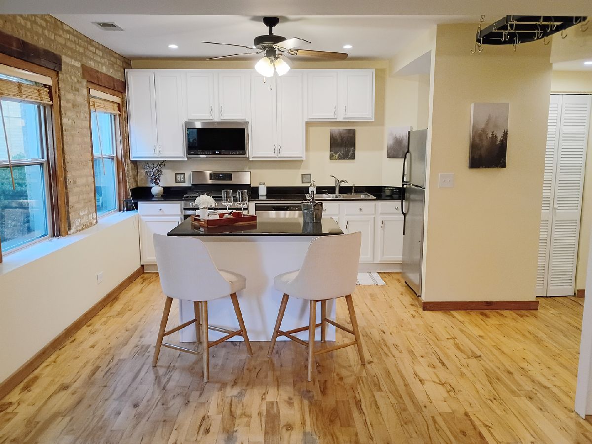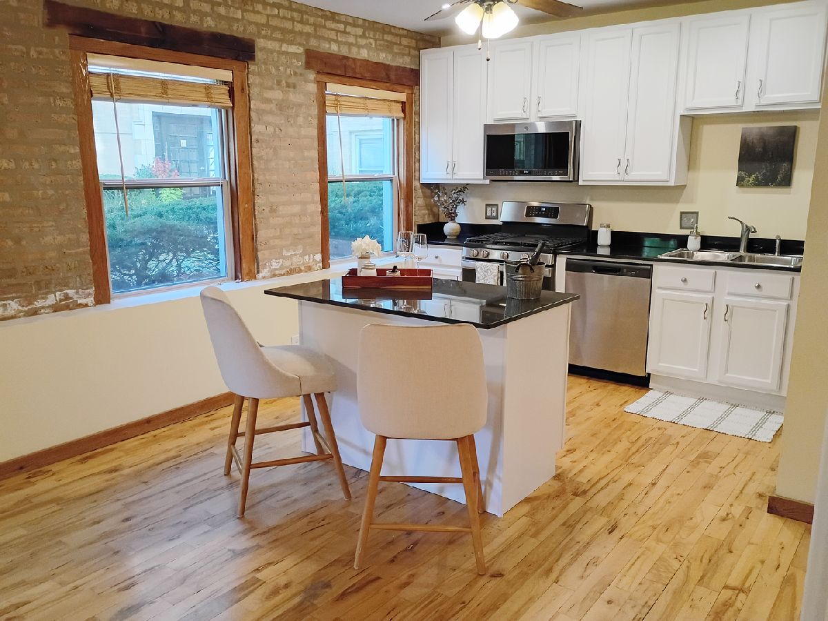 Owners motivated to sell! Don't miss this opportunity! Modern Meets Rustic in this Bright Rogers Park Ground-Floor Condo with large windows for lots of natural sun light, 9 foot ceilings, reserves over $100,000 and a moveable kitchen island, you can't miss this! Step into the perfect blend of charm and modern convenience with this beautifully updated ground-floor condo in the heart of Rogers Park. Featuring an open floor plan and rich hardwood floors throughout, this 2-bedroom, 1-bath gem is bathed in natural light from large windows that overlook a beautifully manicured courtyard. The second bedroom is open and can be used as an office or a door can be added and utilized as a bedroom. The updated kitchen offers stainless steel appliances, ample cabinet space, and stylish finishes-perfect for home chefs and entertainers alike. Unwind in the jetted tub, ideal for relaxing after a long day. Additional highlights include: Fifteen minute walk to the train - a commuters dream In-unit laundry for maximum convenience Low taxes and low assessment dues No special assessments - move in with peace of mind Secure gated entry with intercom system Access to a bike room for easy city commuting This well-maintained building offers the best of city living in a quiet, neighborly setting-steps from parks, shops, cafes, and public transit. Don't miss your chance to own a unique space where modern meets rustic-schedule your private tour today!