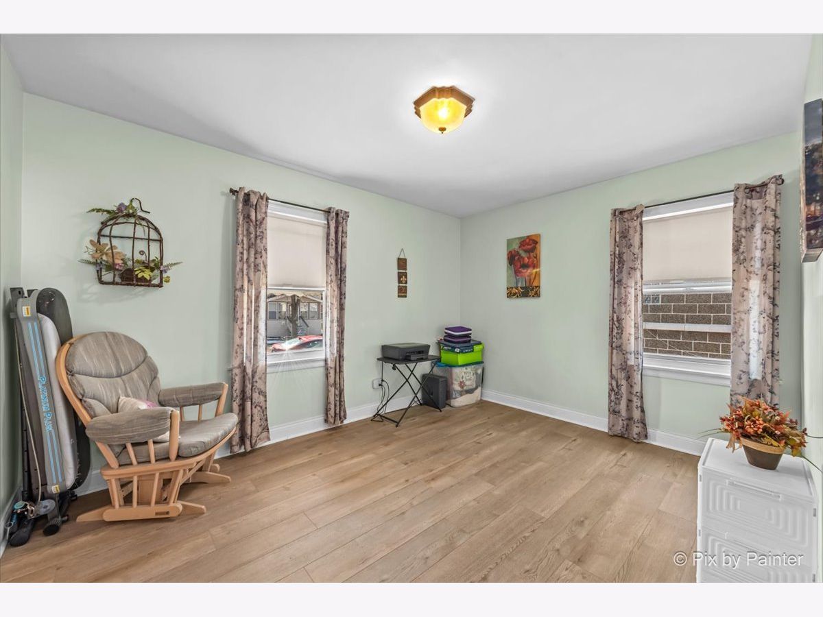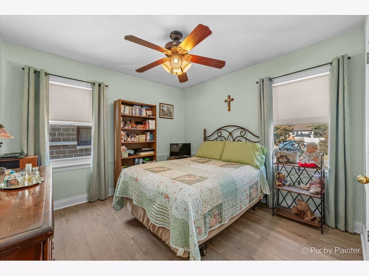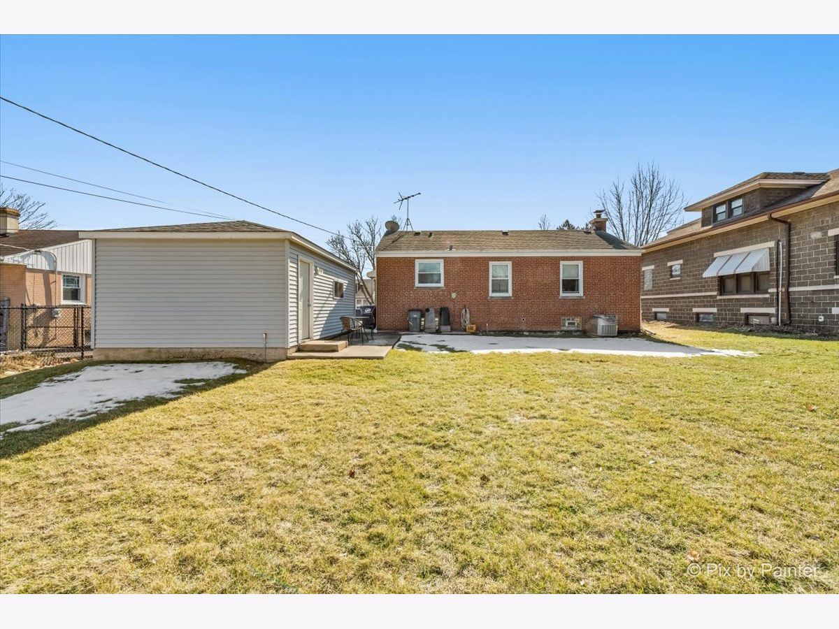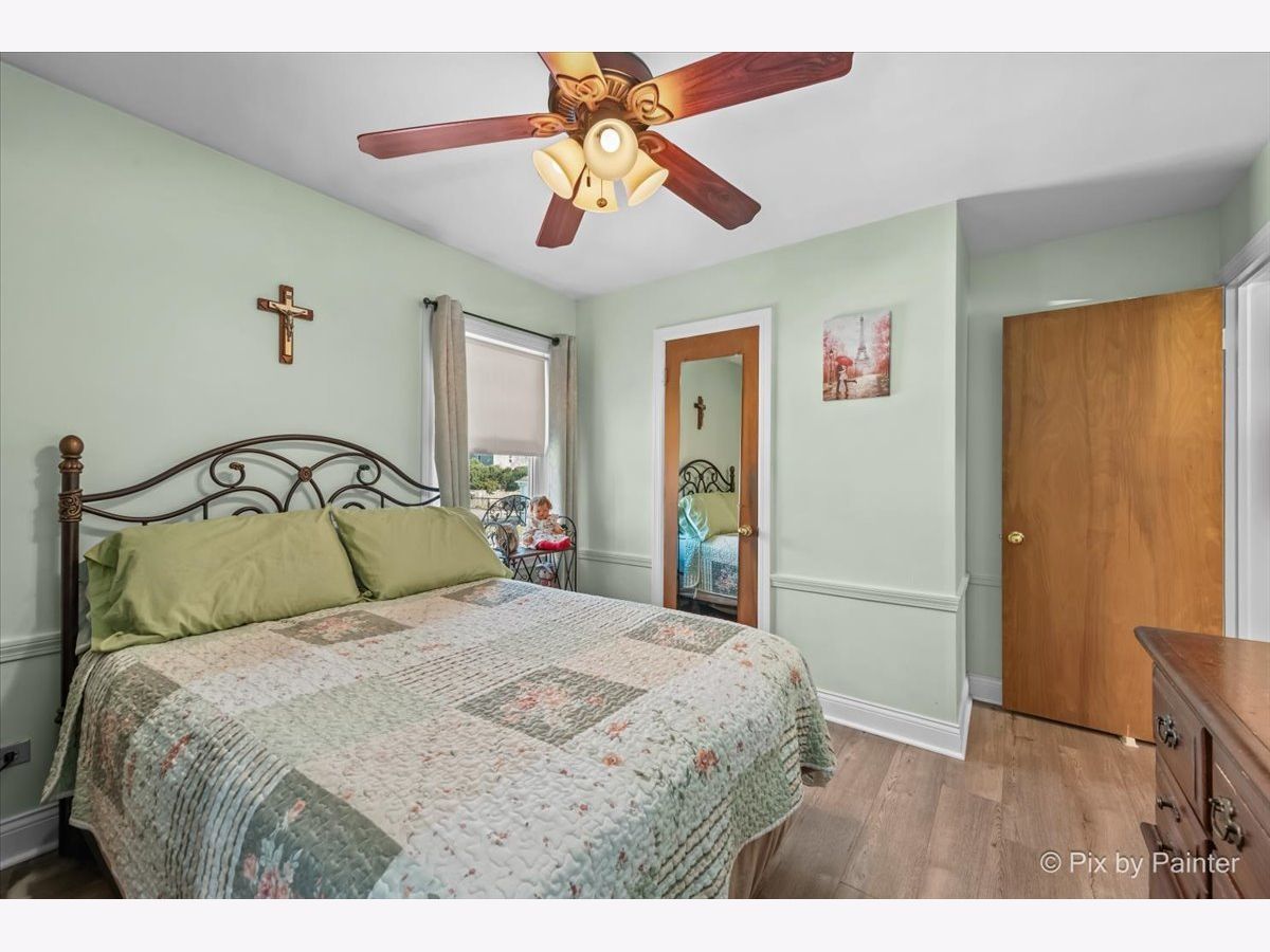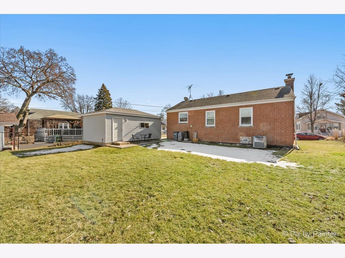 Welcome to this well maintained and thoughtfully updated home offering 935 square feet of comfortable living space with two bedrooms and one full bath. The main living area features vinyl plank flooring installed approximately four years ago, higher baseboards, and Feldco vinyl windows that bring in natural light. A freestanding gel can fireplace, designed as a furniture piece rather than a built in fixture, adds warmth and character and can remain if desired. The kitchen includes updated cabinet doors, quartz countertops, and a self cleaning oven, microwave, and refrigerator, creating a functional space for everyday living. The bathroom has been refreshed with a new toilet, updated shower, exhaust fan, and fresh paint. Exterior improvements include replaced siding, a chimney that was completely rebuilt in 2025, and gutters equipped with gutter guards for low maintenance living. The partially finished basement offers additional living space, a bar that can stay, generous storage, and replaced ceiling tiles. Copper pipes were replaced in 2017, the sewer line was rodded within the last two years, and the sump pump and water heater were both replaced in 2017. The washer, purchased in 2020, includes a tub clean feature. Additional highlights include a garage built in 2017 and a location outside of the O'Hare flight path. This move in ready home offers comfort, functionality, and thoughtful updates throughout.