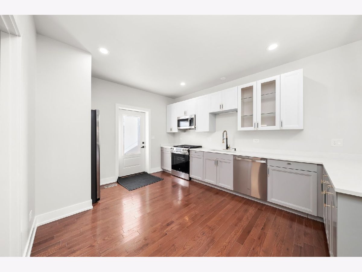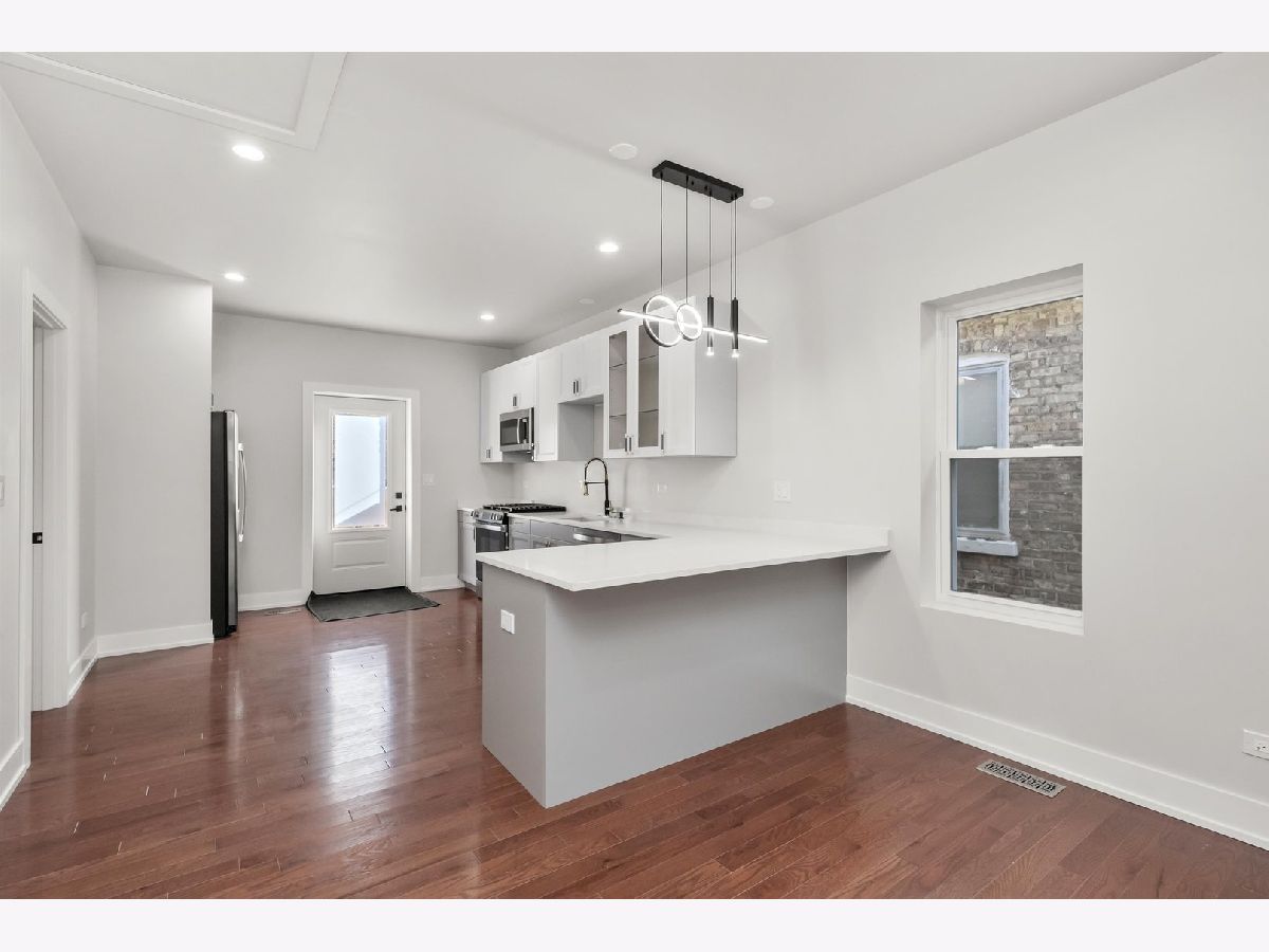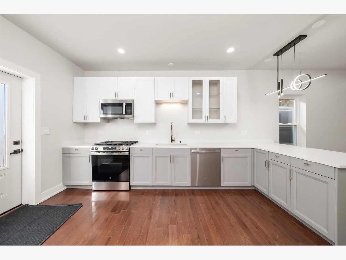 This beautifully gut-rehabbed home offers a fresh, modern feel from top to bottom. The property features all new windows, electrical, plumbing, HVAC, flooring, and recessed lighting throughout. The stylish kitchen includes 42" soft-close cabinets, quartz countertops and backsplash, and all new stainless steel appliances-stove, microwave, refrigerator, and dishwasher. An open-concept design seamlessly connects the kitchen, dining area, and living room, creating the perfect space for both everyday living and entertaining. The main floor offers two generously sized bedrooms along with a newly renovated full bathroom. The fully finished basement provides even more living space with two additional bedrooms, another full bathroom, laundry hookups, and a utility room. All major mechanicals have been replaced, giving you long-lasting comfort and peace of mind. Outside, you'll find a brand-new back porch, a freshly poured concrete parking slab for up to 2.5 cars, and new cement sidewalks. The roof is newer as well. Conveniently located just minutes from downtown and close to public transportation, this home combines modern upgrades with everyday convenience. Truly move-in ready, this property shines with thoughtful updates inside and out.