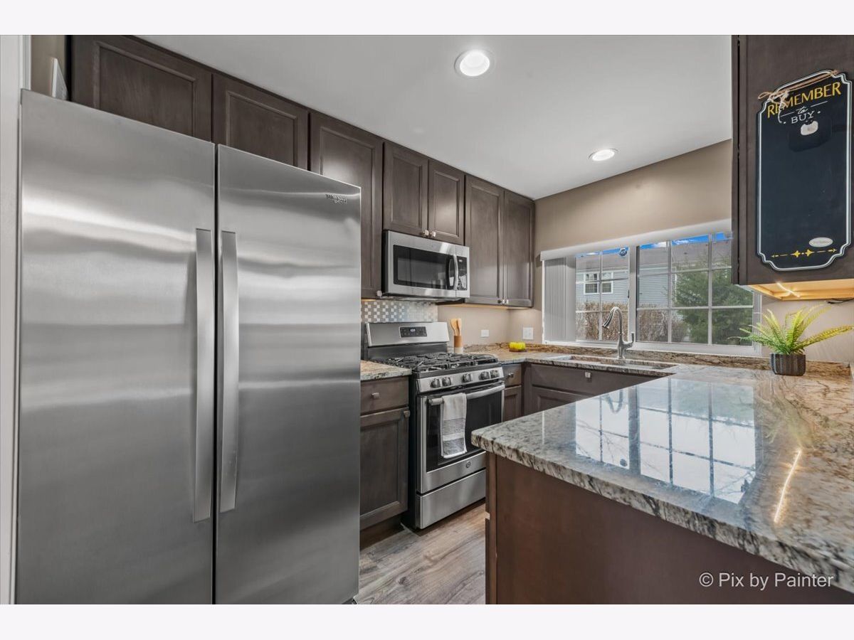 Well maintained and move-in ready, this beautifully updated townhouse showcases refined finishes and thoughtful upgrades throughout. The designer kitchen features stainless steel appliances, granite countertops, a breakfast bar, soft-close cabinetry, and a farmhouse-style sink, all complemented by abundant natural light and newer flooring across the main level. The open-concept living space seamlessly extends to a private, oversized deck overlooking serene green space and walking trail-an ideal setting for both relaxing and entertaining. The primary suite offers a sophisticated retreat with a custom accent wall, barn door detail, ceiling fan, and spacious walk-in closet. The spa-inspired shared bath is appointed with a double vanity and an expansive zero-entry shower. Convenient second-floor laundry with newer washer and dryer. Carpeting has been professionally cleaned, enhancing the home's pristine condition. Complete with a deep 1-car garage and ideally located near Randall Road with easy access to I-90, shopping, and dining. A perfect blend of comfort, style, and convenience. Schedule your showing today!