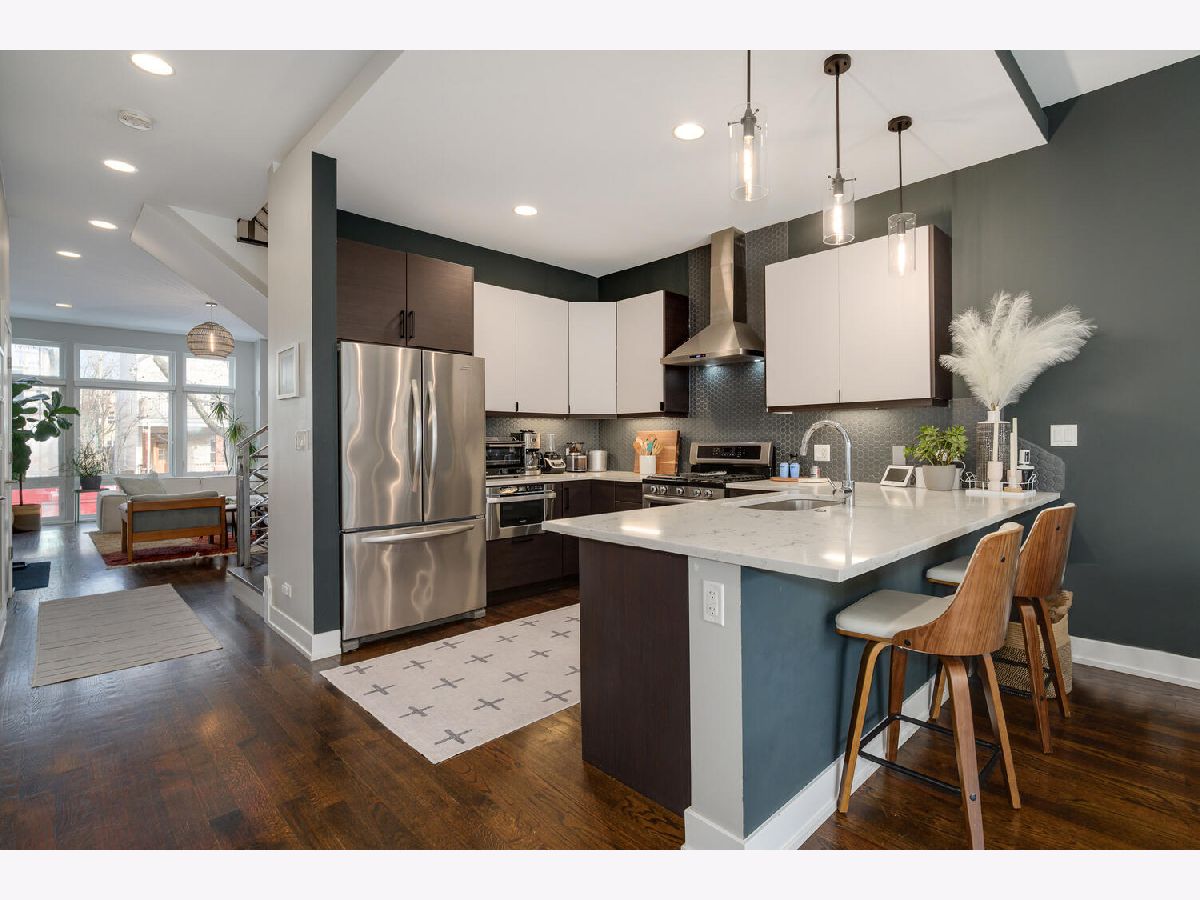 Tucked along a quiet, tree-lined street near Humboldt Park and Logan Square, this stylish home delivers a sophisticated take on modern city living. From the moment you enter, natural light takes center stage. Expansive windows stretch skyward, illuminating an airy main level designed for both comfort and connection. A sculptural staircase anchors the space, creating subtle architectural definition while preserving an open, fluid layout from front to back. The stone fireplace adds warmth and texture, offering the perfect backdrop for crisp Chicago evenings. At the heart of the home, a beautifully appointed kitchen blends clean lines with everyday functionality. Quartz surfaces, stainless steel appliances, and an oversized peninsula invite gathering, conversation, and celebration. A generous pantry keeps everything effortlessly organized, while the adjoining eat-in space and greatroom ensure no one is ever far from the moment. Outdoor living feels intentional and private with a maintenance-free composite deck that extends directly from the main living area, leading to a brick patio designed for grilling, dining, and relaxing under the open sky. Upstairs, three well-proportioned bedrooms offer comfort and flexibility. The primary suite serves as a true retreat, complete with a custom walk-in closet and a spa-inspired bath designed for relaxation. The option for a second-level laundry hookup adds thoughtful convenience. The finished lower level expands the home's versatility with multiple lifestyle options - media room, guest quarters, fitness studio, office, or all of the above. A fourth bedroom, full bath, laundry center, and abundant storage complete the space. The location delivers unmatched neighborhood access. Enjoy nearby dining in both Humboldt Park and Logan Square, and the natural beauty of Humboldt Park and access to the 606 trail are just steps away. This is a home that lives beautifully - inside and out.
