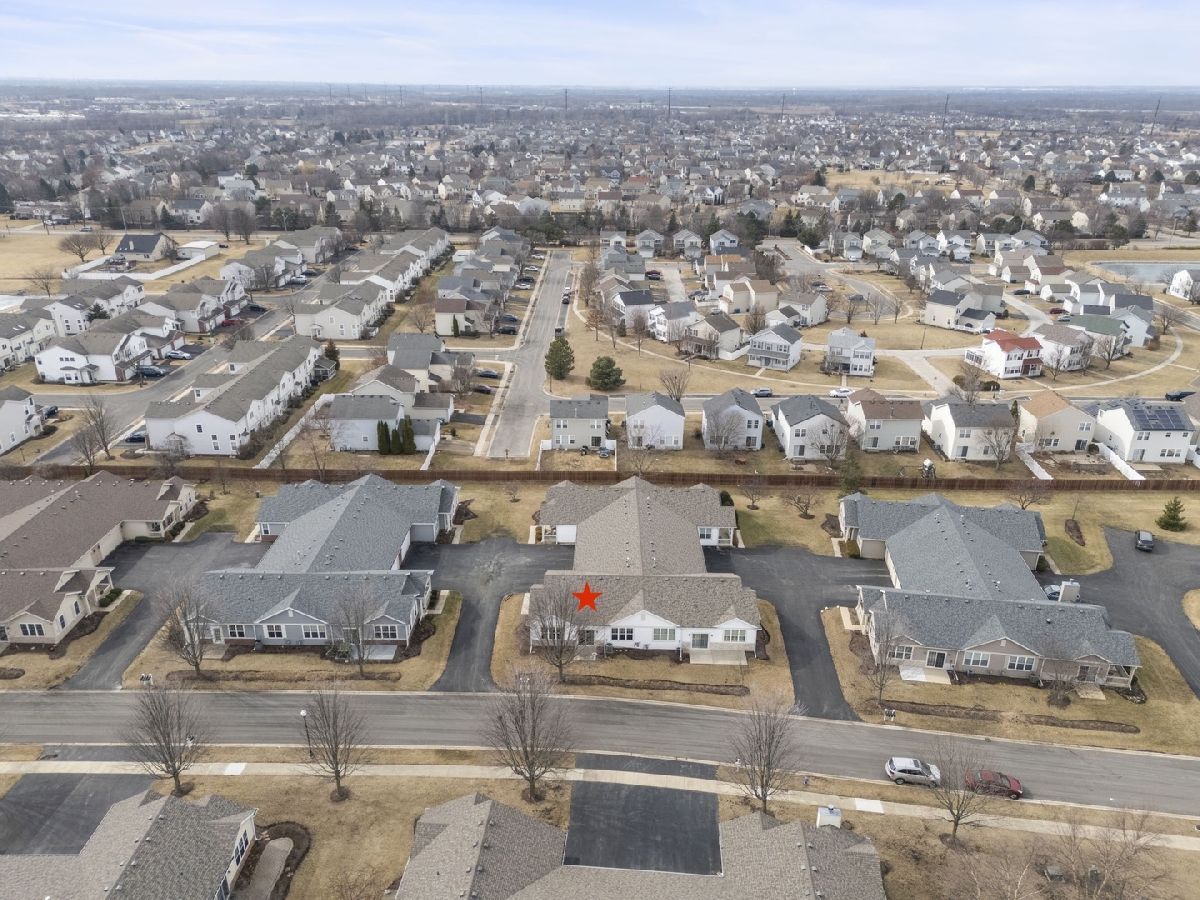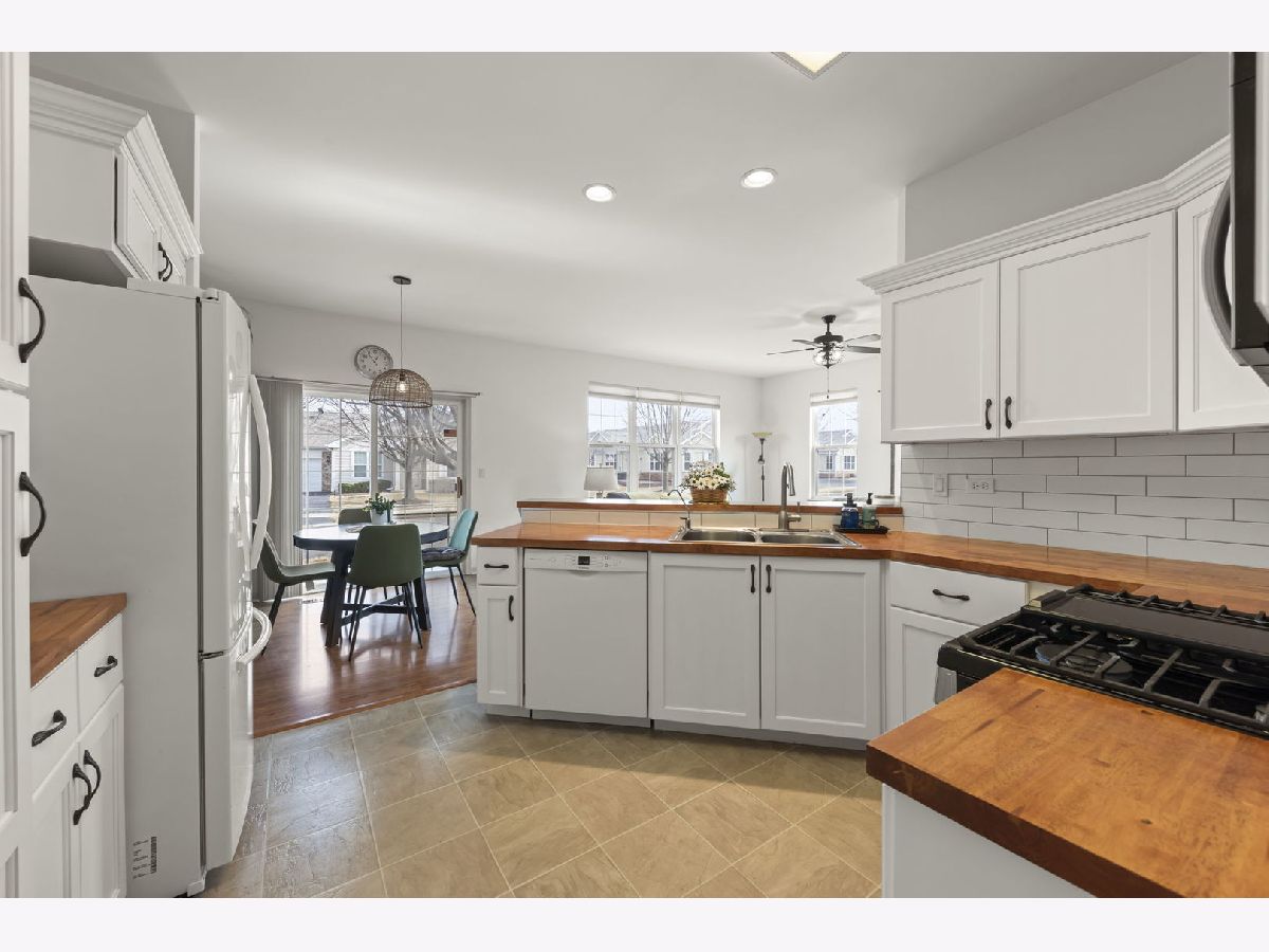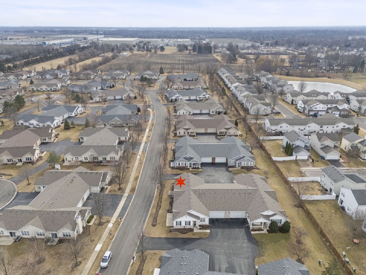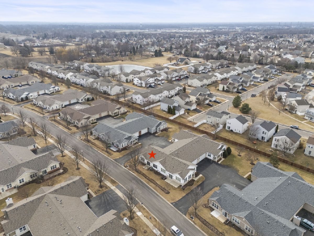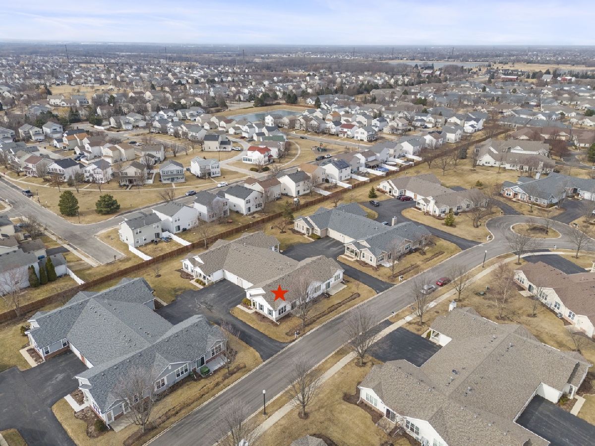 Move-in ready and beautifully updated Whitney Ranch Quad in highly desirable Carillon Lakes! This popular floor plan offers 2 bedrooms, 2 full baths, and an oversized 20' x 24' attached garage with shelving, workbench, and pull-down stairs to attic storage with plywood flooring. Step inside to an open and airy layout featuring 9' ceilings, abundant windows, neutral decor, painted woodwork, and classic 6-panel doors throughout. The spacious design creates a light, bright, and relaxing atmosphere perfect for everyday living and entertaining. The renovated kitchen is a standout, featuring white cabinetry with crown molding, stylish tile backsplash, butcher block countertops, new faucet, and updated stainless steel stove and microwave (2022). The open concept flows seamlessly into the living and dining areas. The generously sized primary suite is a favorite for its large layout, walk-in closet plus second closet, and private bath with dual-seat shower and linen closet. The second bedroom and full bath are thoughtfully located on the opposite side of the home, offering ideal privacy for guests. A separate laundry room adds convenience. Major updates provide true peace of mind: Furnace & A/C (2019), Water Softener, Reverse Osmosis System, Butcher Block Counters & Backsplash, Stove & Microwave, and new faucet were all installed in 2022, and a new Garage Door and new Washer & Dryer and new Roof were all installed in 2023. Enjoy low-maintenance living just steps from stocked fishing lakes and beautifully landscaped walking trails. Carillon Lakes is one of Illinois' most sought-after 55+ communities, featuring an 18,000 sq. ft. clubhouse with indoor & outdoor heated pools, hot tub, fitness center, aerobics & dance studio, craft and card rooms, billiards and poker room, 3-hole 3-par golf course with putting green, and over 50 clubs, classes, and social activities. Located by Weber Rd and Renwick Rd, this home and community have access to shopping, dining, and entertainment, and highway access. This is the total package - updated, impeccably maintained, and located in one of the area's premier active adult communities.