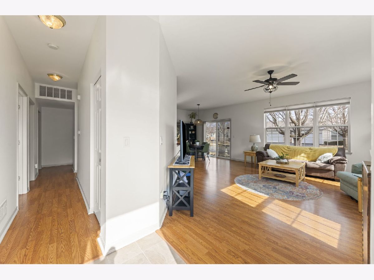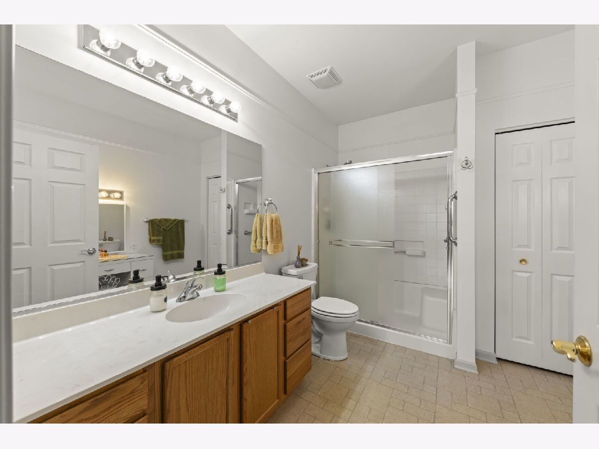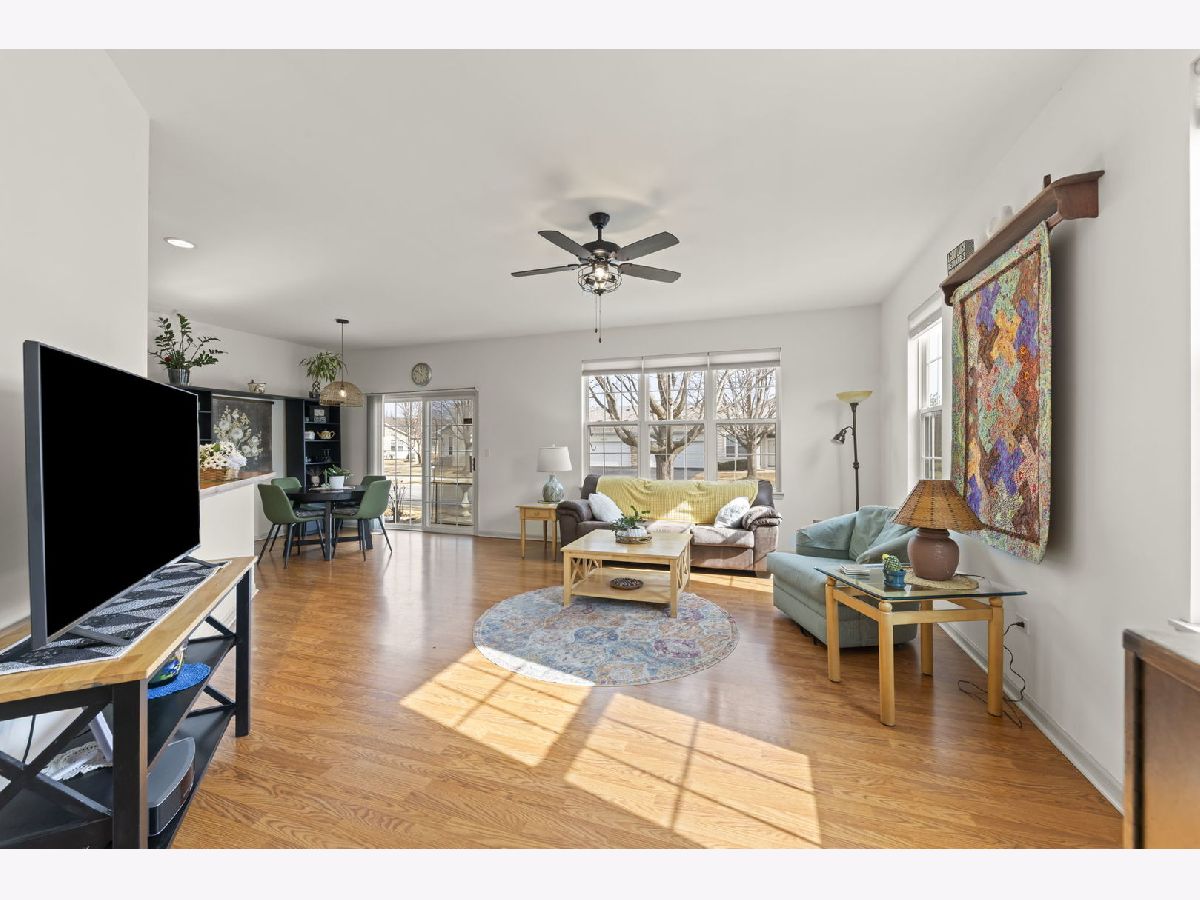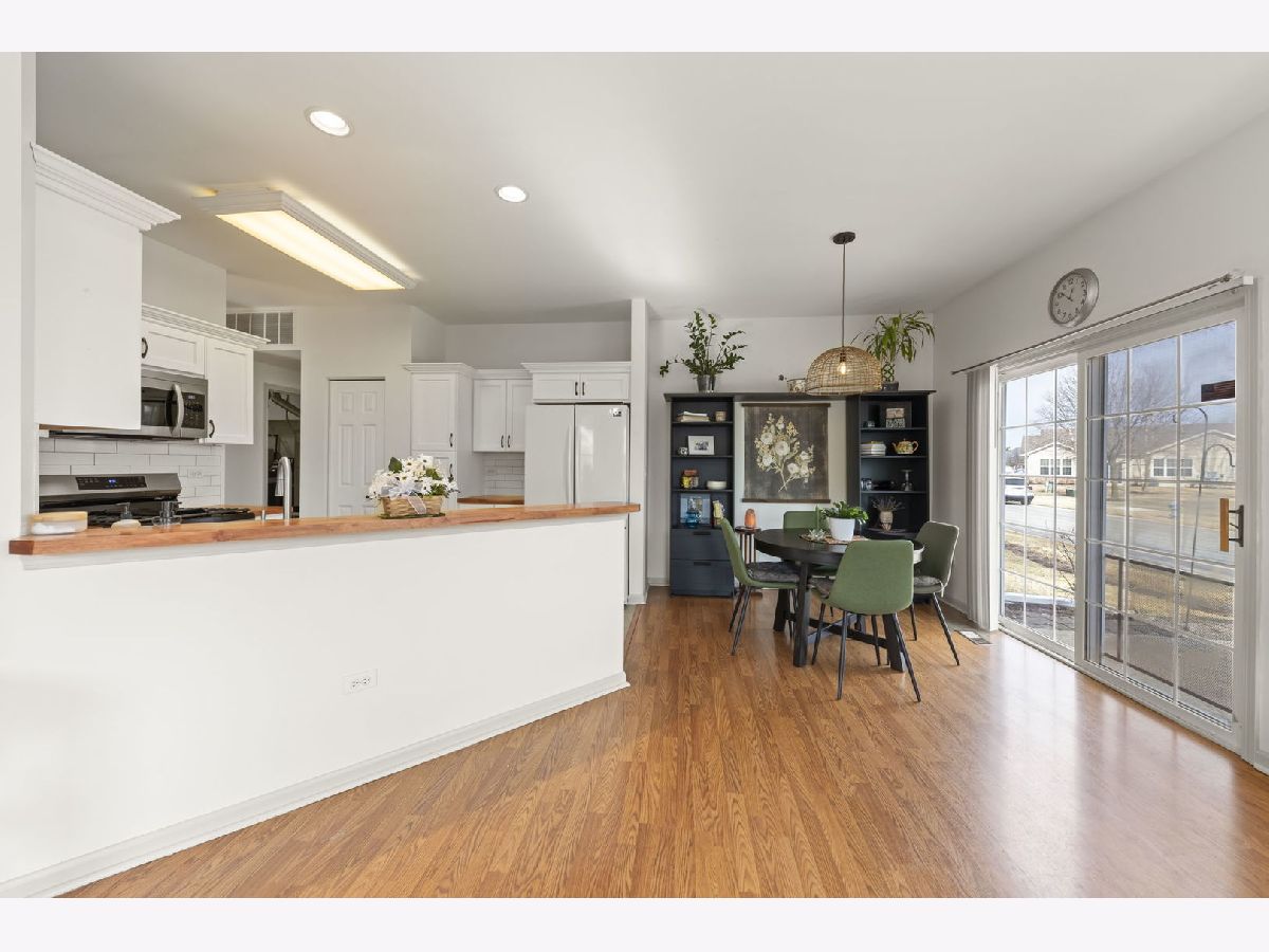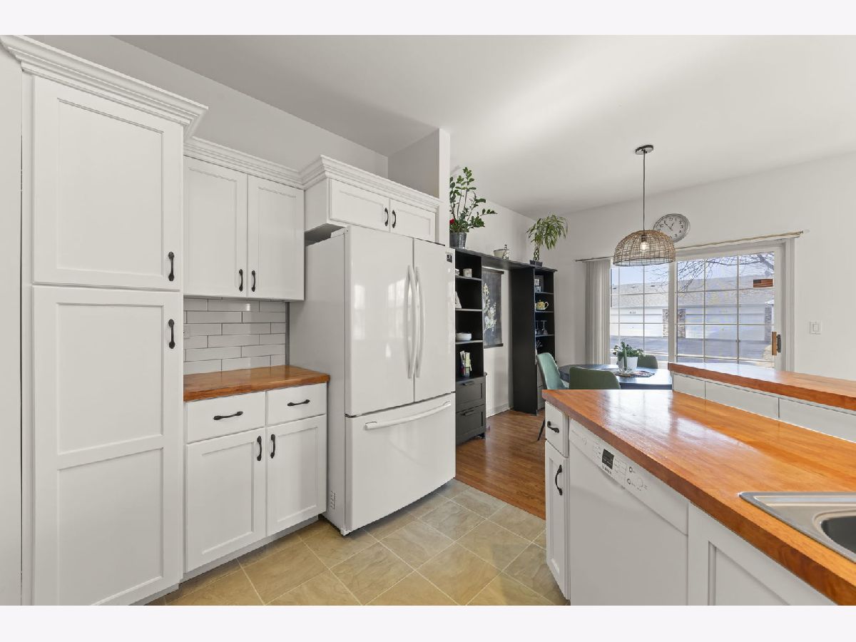 Move-in ready and beautifully updated Whitney Ranch Quad in highly desirable Carillon Lakes! This popular floor plan offers 2 bedrooms, 2 full baths, and an oversized 20' x 24' attached garage with shelving, workbench, and pull-down stairs to attic storage with plywood flooring. Step inside to an open and airy layout featuring 9' ceilings, abundant windows, neutral decor, painted woodwork, and classic 6-panel doors throughout. The spacious design creates a light, bright, and relaxing atmosphere perfect for everyday living and entertaining. The renovated kitchen is a standout, featuring white cabinetry with crown molding, stylish tile backsplash, butcher block countertops, new faucet, and updated stainless steel stove and microwave (2022). The open concept flows seamlessly into the living and dining areas. The generously sized primary suite is a favorite for its large layout, walk-in closet plus second closet, and private bath with dual-seat shower and linen closet. The second bedroom and full bath are thoughtfully located on the opposite side of the home, offering ideal privacy for guests. A separate laundry room adds convenience. Major updates provide true peace of mind: Furnace & A/C (2019), Water Softener, Reverse Osmosis System, Butcher Block Counters & Backsplash, Stove & Microwave, and new faucet were all installed in 2022, and a new Garage Door and new Washer & Dryer and new Roof were all installed in 2023. Enjoy low-maintenance living just steps from stocked fishing lakes and beautifully landscaped walking trails. Carillon Lakes is one of Illinois' most sought-after 55+ communities, featuring an 18,000 sq. ft. clubhouse with indoor & outdoor heated pools, hot tub, fitness center, aerobics & dance studio, craft and card rooms, billiards and poker room, 3-hole 3-par golf course with putting green, and over 50 clubs, classes, and social activities. Located by Weber Rd and Renwick Rd, this home and community have access to shopping, dining, and entertainment, and highway access. This is the total package - updated, impeccably maintained, and located in one of the area's premier active adult communities.
