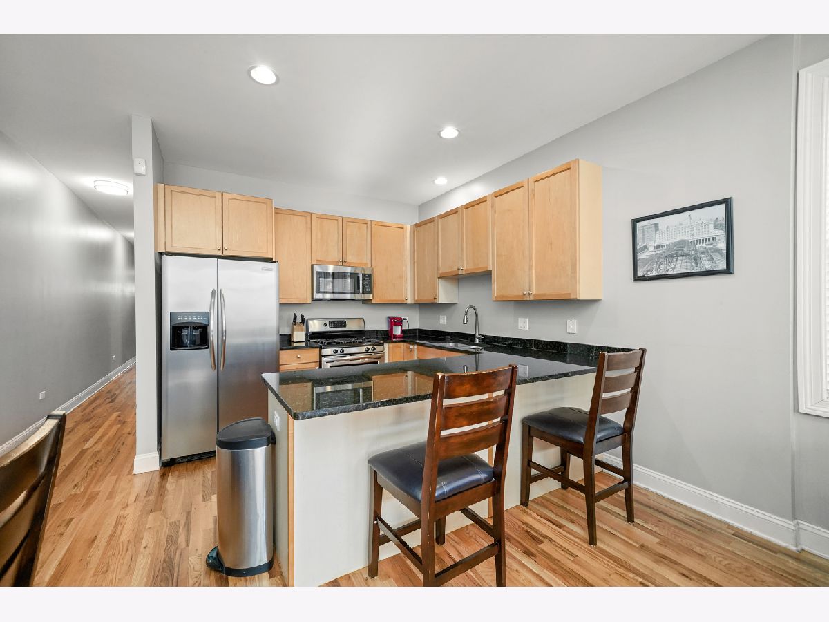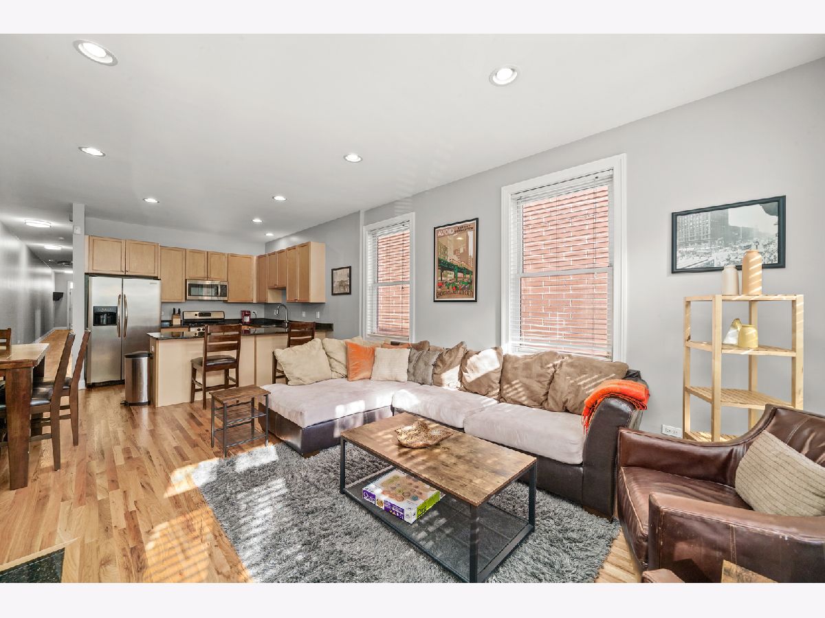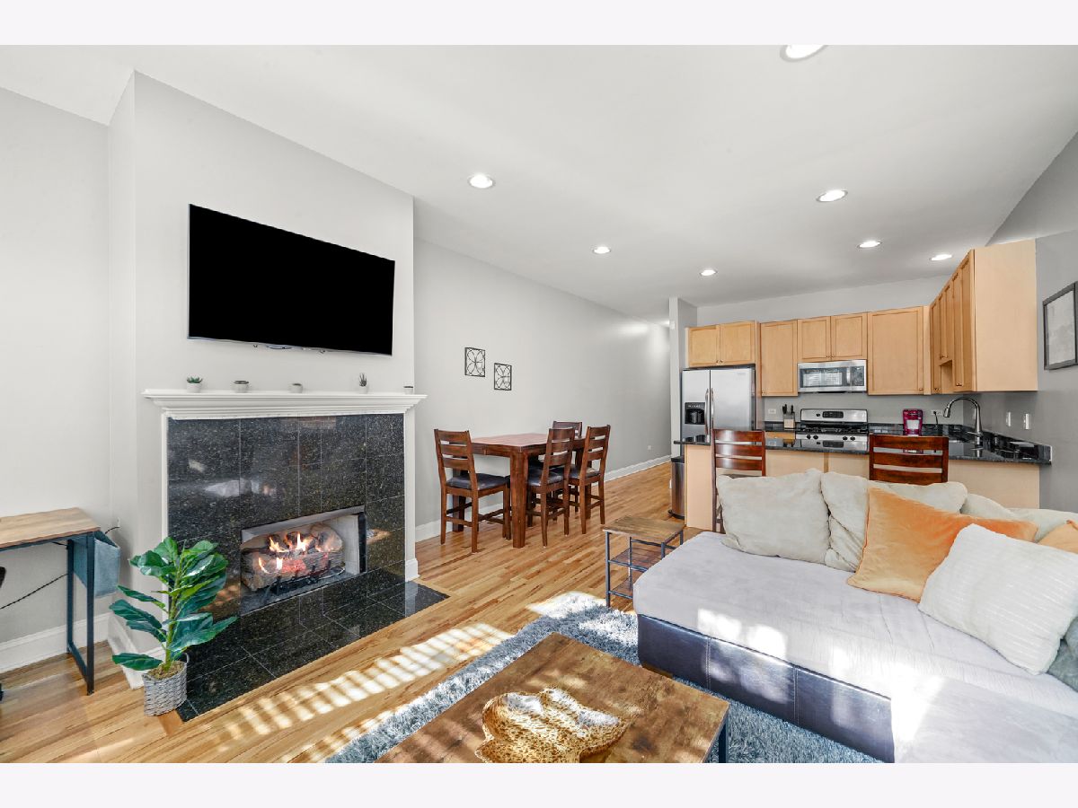 Fantastic location! Spacious top-floor 2-bedroom, 1-bath unit featuring a modern kitchen with stainless steel appliances and a large island with ample counter space. Enjoy hardwood floors, a cozy fireplace, central HVAC, and a private rear balcony. Additional highlights include granite countertops and easy access to the West Loop, Costco, grocery stores, public transportation, and Union Park with its pool, tennis courts, and more. Explore the property in 3D! Click the 3D button to take a virtual tour and walk through every detail.