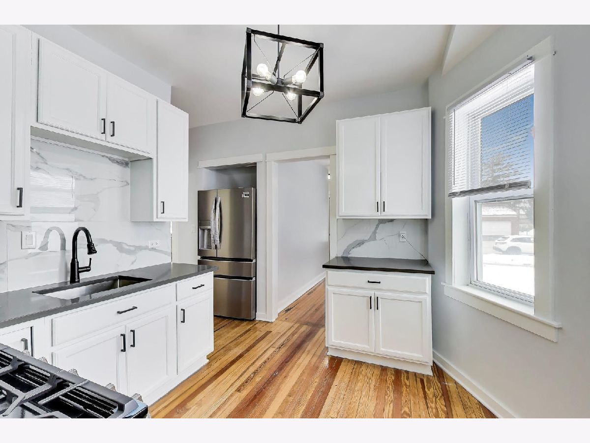 This expanded bungalow has been remodeled inside and out and is located within 2 blocks of the vibrant, expanding Downtown area of Des Plaines. The home features 5 bedrooms and 2 full baths. 2 first floor bedrooms and a full bath makes living on either level convenient. The home features remodeled kitchen and baths, new flooring, and a full unfinished dry basement. The exterior of the home has been renewed with new roof, hardy board siding, and paint. The full front-porch and backyard deck makes it easy for outdoor living and entertainment. The backyard has a big 2 car garage with carport and/or covered porch, with alley access and extra parking.