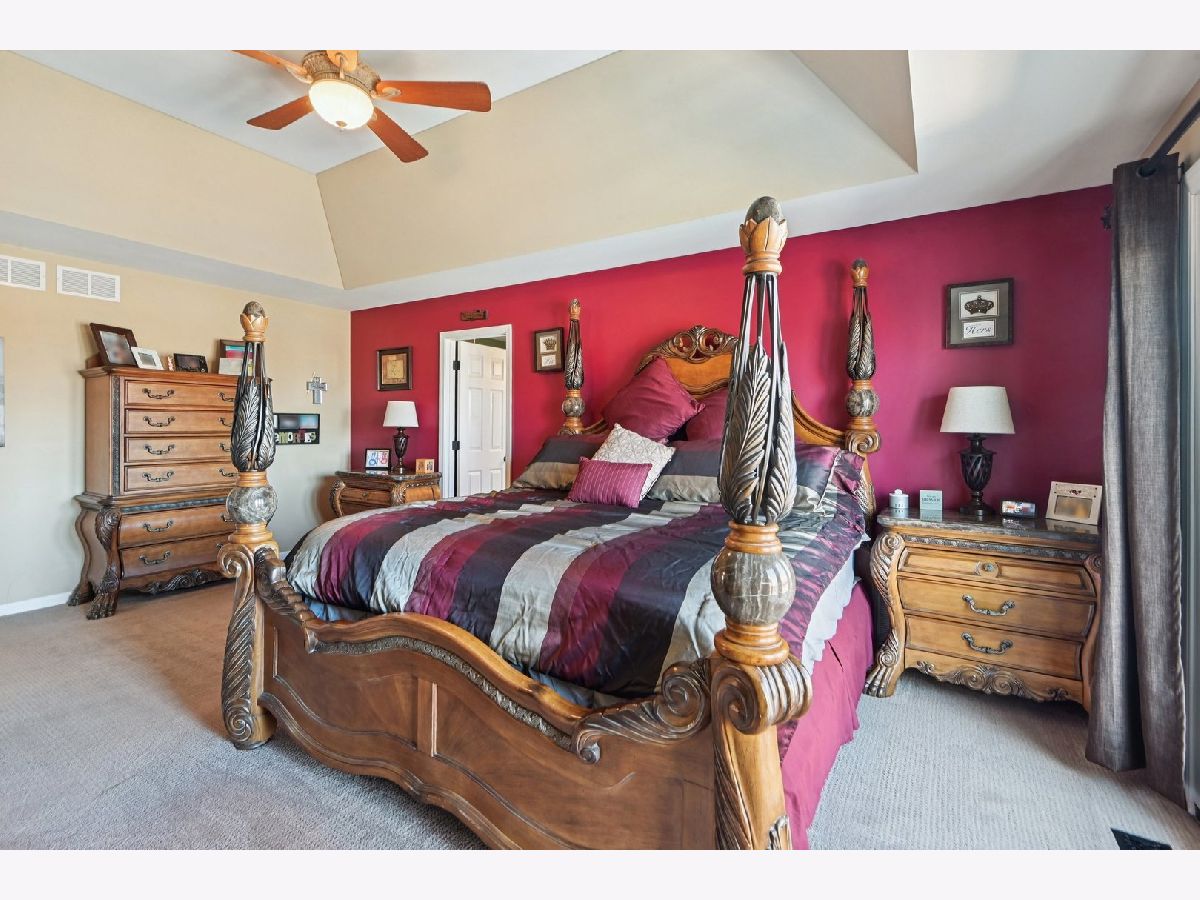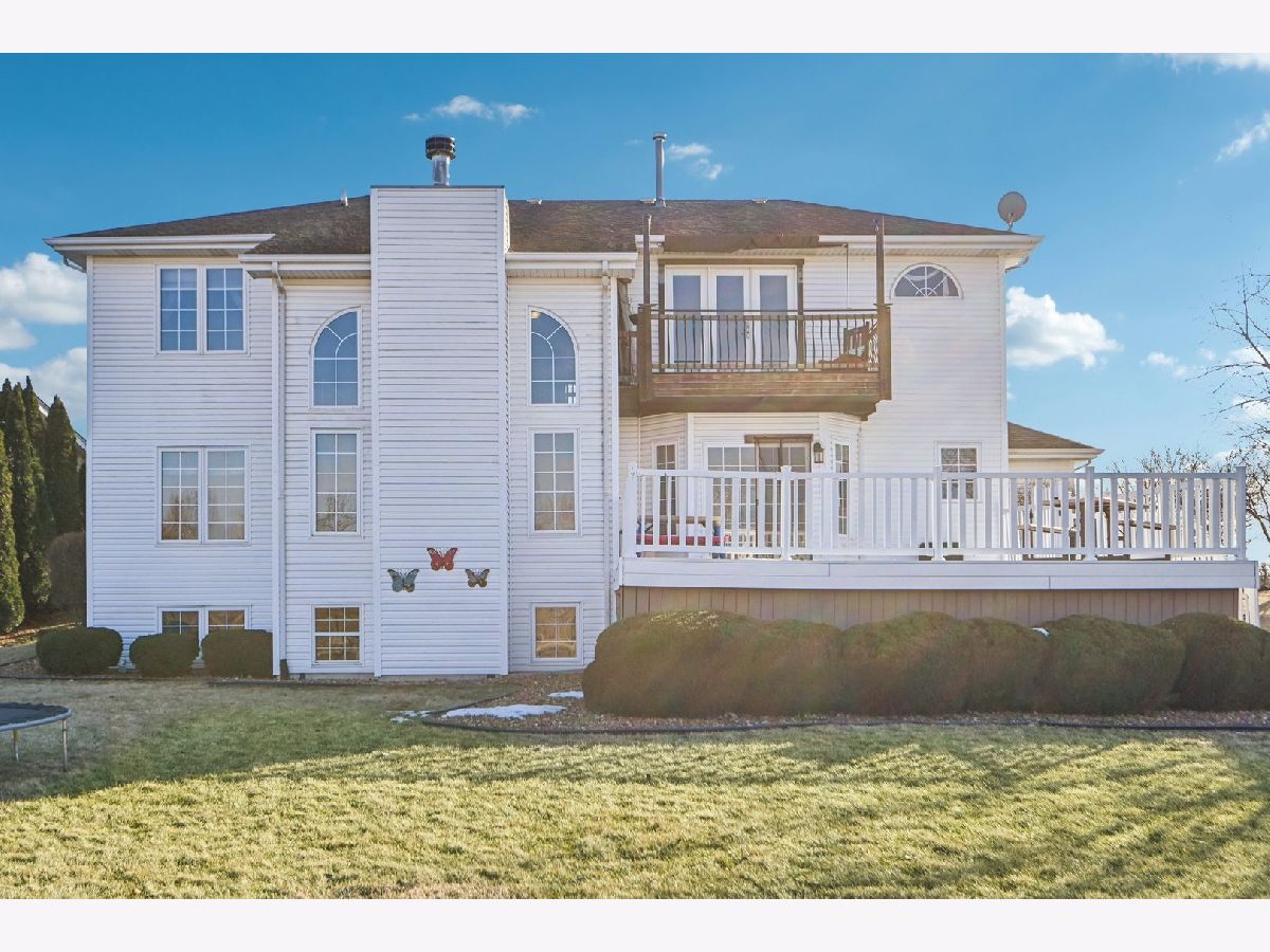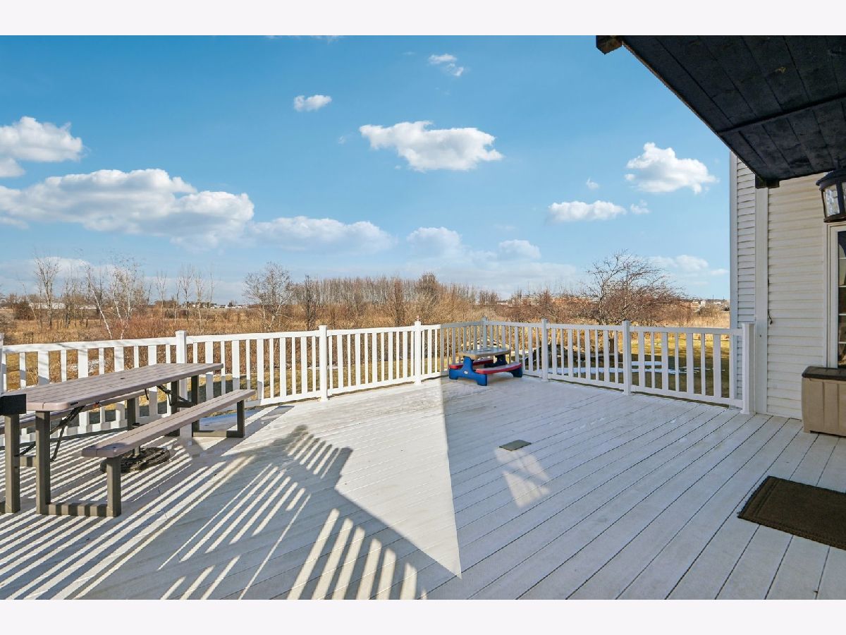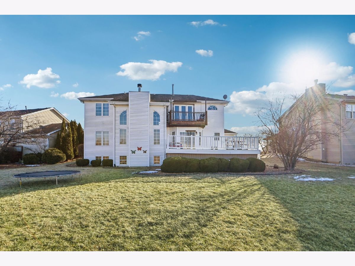 Beautifully maintained 5-bedroom home with 2 full baths, 2 half baths, and a 3-car garage, offering 3,110 sq ft above grade and 3,910 total sq ft including the finished basement. Located on a quiet circle in the desirable Village of Manhattan, known for its small-town charm, parks, community events, and convenient Metra access. The main level features a vaulted entry, formal dining room, and private office near the front entrance, ideal for working from home. The spacious living room with vaulted ceiling flows into the kitchen and eating area, perfect for everyday living and entertaining. A main-level bedroom and half bath offer flexibility for guests or related living. The kitchen includes ample cabinetry, a walk-in pantry, and backyard views. Enjoy the private outdoor space with a large deck, scenic natural tall grass, direct access to a walking path, and a nearby pond. The second floor offers four bedrooms, a full bath, and a primary suite with a walk-in closet and a private bath with a soaking tub and a separate shower. The finished basement features a theater room, a half bath, and a laundry area.
