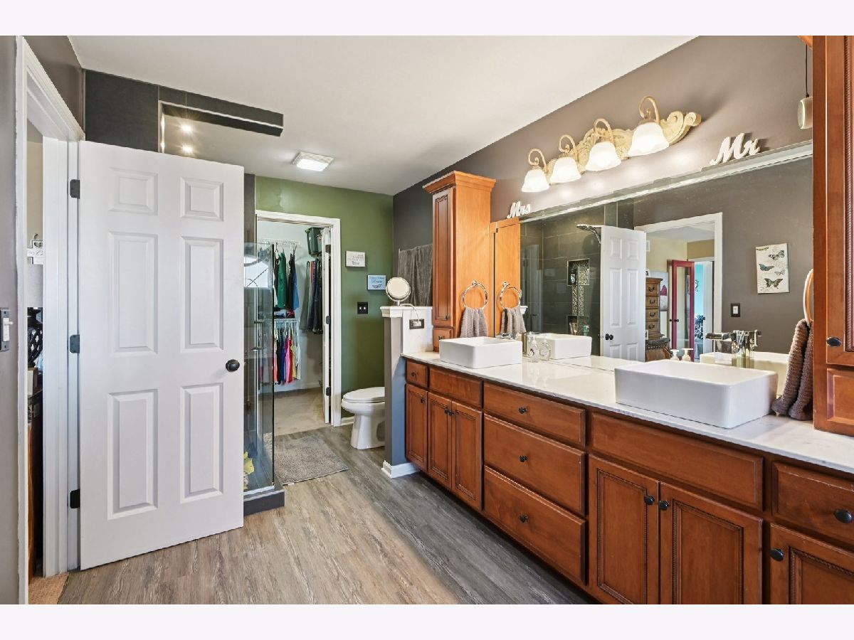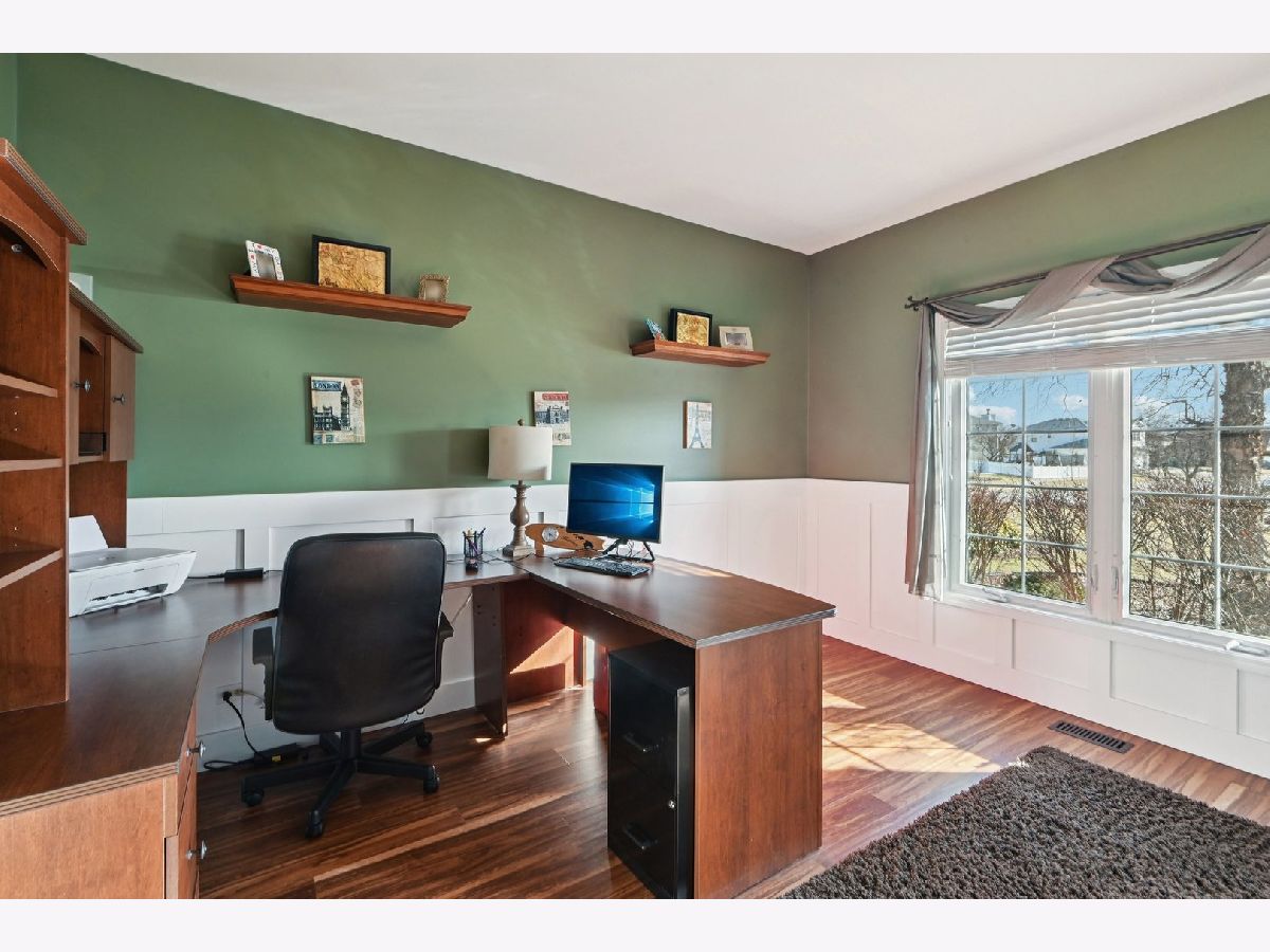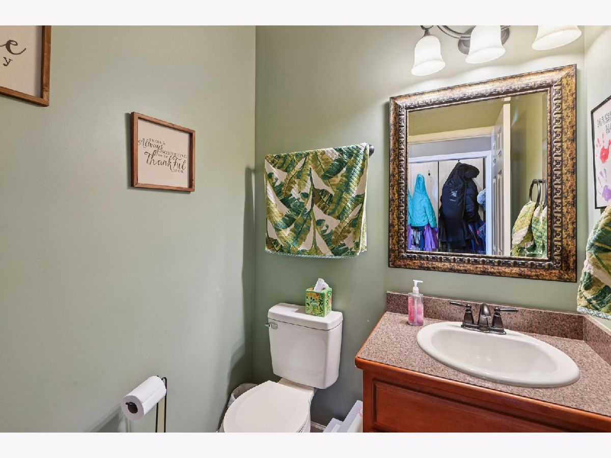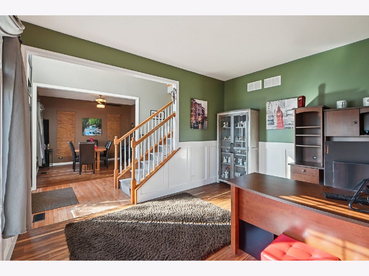Beautifully maintained 5-bedroom home with 2 full baths, 2 half baths, and a 3-car garage, offering 3,110 sq ft above grade and 3,910 total sq ft including the finished basement. Located on a quiet circle in the desirable Village of Manhattan, known for its small-town charm, parks, community events, and convenient Metra access. The main level features a vaulted entry, formal dining room, and private office near the front entrance, ideal for working from home. The spacious living room with vaulted ceiling flows into the kitchen and eating area, perfect for everyday living and entertaining. A main-level bedroom and half bath offer flexibility for guests or related living. The kitchen includes ample cabinetry, a walk-in pantry, and backyard views. Enjoy the private outdoor space with a large deck, scenic natural tall grass, direct access to a walking path, and a nearby pond. The second floor offers four bedrooms, a full bath, and a primary suite with a walk-in closet and a private bath with a soaking tub and a separate shower. The finished basement features a theater room, a half bath, and a laundry area.