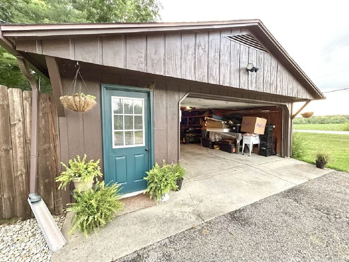 Move right in to this peaceful retreat with views from all sides, nestled into a serene wooded backyard! This well maintained raised ranch offers plenty of space for your hobbies and extra vehicles, with a one car attached garage plus a 2 car detached garage and a shed. Garage is piped for heater. A covered brick patio welcomes you to the versatile walk-out main level including a family room, 1/2 bath and utility room. Walk up to the charming living room with wood burning fireplace and plenty of windows plus a 2nd level deck to showcase the gorgeous front views! Luxury vinyl plank and wood flooring throughout. Vaulted ceilings! Full bath with walk-in shower. An eat-in galley kitchen provides table space, more views, a convenient laundry area and access to the fully fenced and well designed backyard including the exposed aggregate patio, firepit and gorgeous grassy area with mature trees.