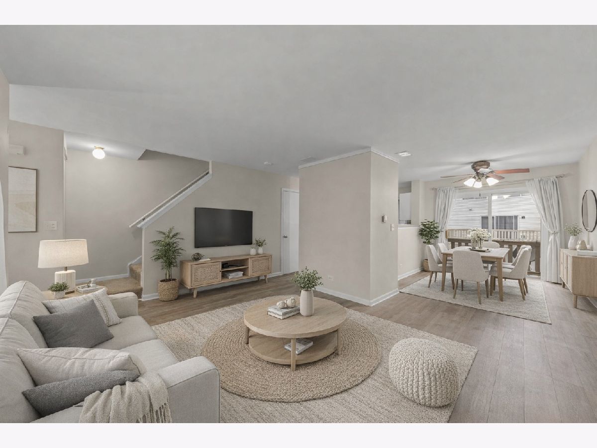 DON'T MISS THIS RARE OPPORTUNITY FOR A MOVE-IN READY TOWNHOME IN A CONVENIENT LOCATION! Step inside to find a functional floor plan paired with stylish brand-new updates including luxury vinyl plank flooring, fresh neutral paint, and carpet throughout. The light-filled main level features a spacious great room with large windows, perfect for entertaining and everyday living. The white kitchen offers stainless steel appliances and an updated backsplash, and opens to the dining room and large balcony - perfect for morning coffee or relaxing evenings. Upstairs you will find two spacious bedrooms, an updated bathroom, and convenient second-floor laundry. The home also features a large two-car garage and plenty of storage. Buy with peace of mind knowing these big-ticket items have been updated in past ten years: HVAC, roof, and water heater. Enjoy the good life in a maintenance free community that is friendly and serene. Fantastic location close to shopping, dining, parks, forest preserves and everyday conveniences. Close to Metra and easy access to nearby highways make for an easy commute.