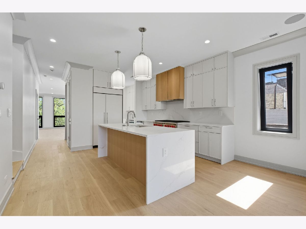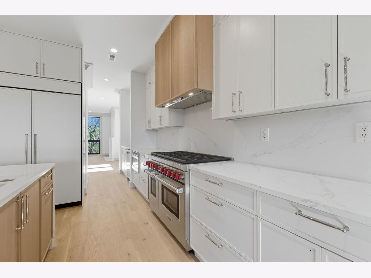 Welcome to to The Orchard Collection! This all masonry luxury NEW CONSTRUCTION 5-unit building is located in the leafy heart of Lincoln Park. Built with luxury, transitional finishes, multiple private outdoor spaces & garage parking. This stunning 3 bed 3.1 bath PENTHOUSE DUPLEX-UP WITH FULLY DECKED PRIVATE ROOF TERRACE has an intelligent spacious floor plan. Featuring dual living spaces - a gracious bright living room with a statement fireplace - plus a great space for formal dining. The center of the home features a beautiful chefs style kitchen with integrated Sub Zero & Wolf appliances & beautiful two tone custom cabinetry, the island with waterfall quartz counters & butlers pantry with a wet bar with wine cooler and additional cabinetry. The kitchen opens to the large family room at the rear. HUGE SLIDING glass doors open up from the family room to a wonderful covered private terrace, fully paved & with an outdoor fireplace, wiring for sound, ceiling fan & recessed lighting. Rounding out the main level is the well placed powder room. Upstairs features the 3 bedrooms- including a luxurious primary suite - with a huge primary bedroom and FULLY DUAL BUILT OUT WALK IN CLOSETS. The bathroom features large format porcelain tilework, Kohler fixtures, oversized steam shower, super spacious double vanity & stand alone soaking tub. Additionally there are 2 other spacious bedrooms and 2 additional bathrooms (1 further en-suite). The unit features internal direct access to the fully built out roof deck - with the most stunning City skyline views you will see! Other highlights include: Concrete between units for additional sound insulation, European Windows, Professionally built out closets, custom trim & moldings, 8' doors throughout, Extra wide engineered white oak flooring, lightweight concrete between units for additional soundproofing, custom porcelain tile work.