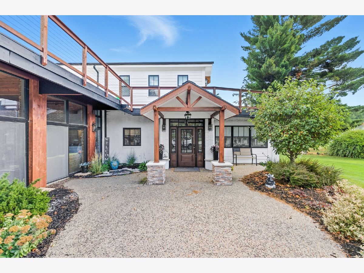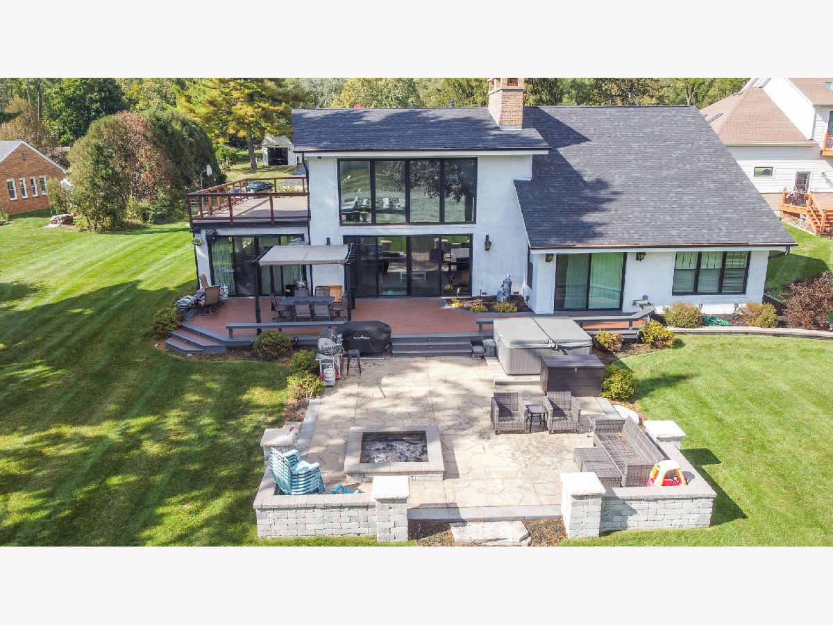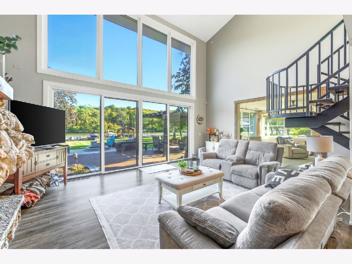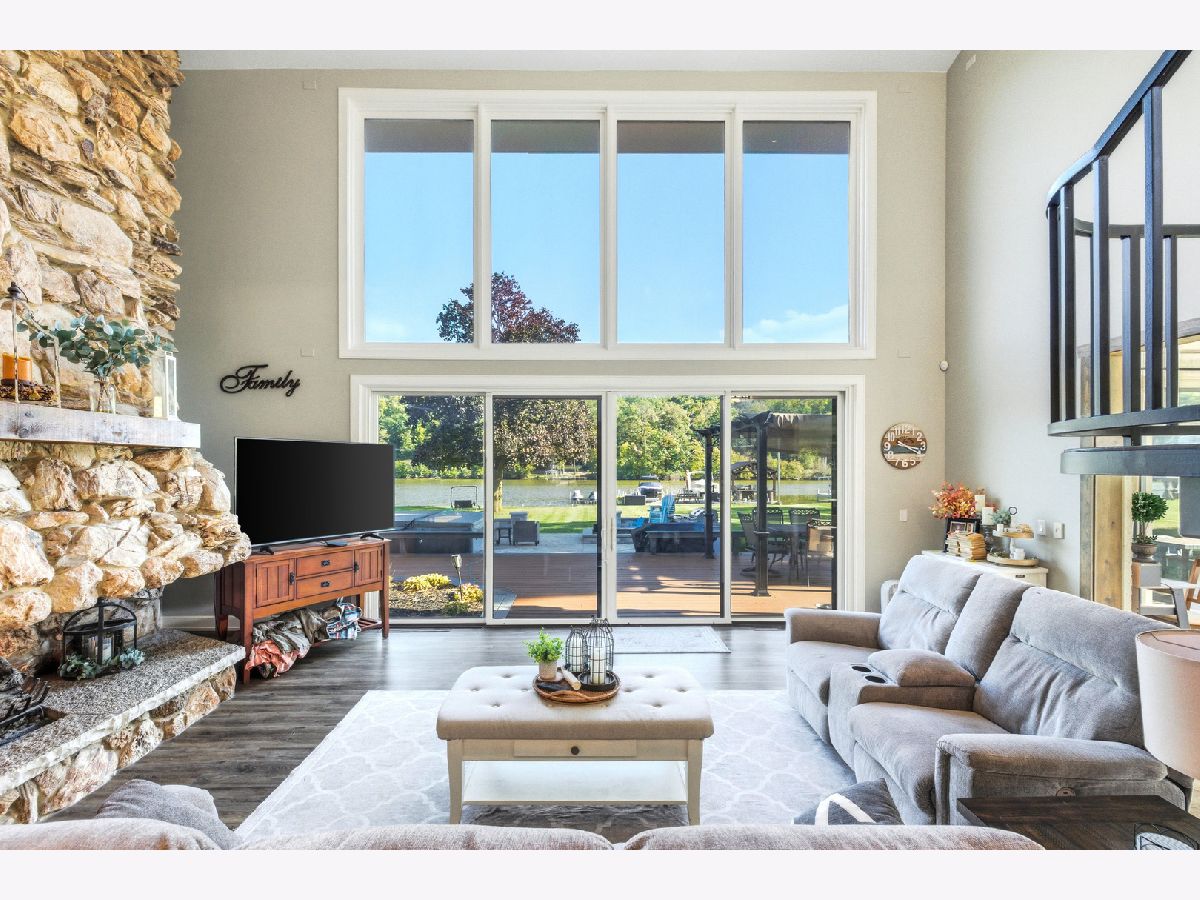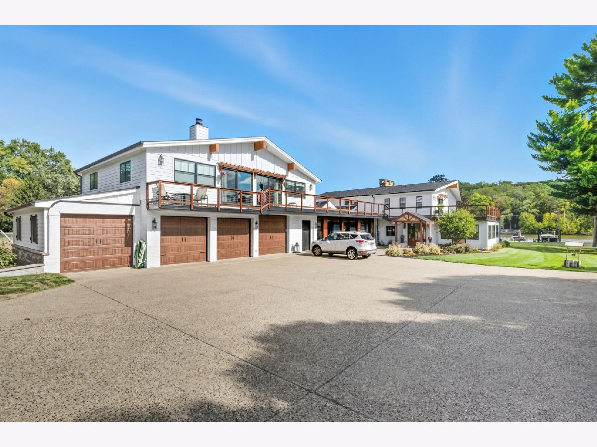 Amazing Fox River home on 1.56 acres awaits you! This custom-built residence, constructed in 1986, features a spacious layout with 4 bedrooms, 2.5 baths, and a 4-car garage. Enjoy incredible views of the Fox River, a natural sand beach, and a private boat dock. Plus, the entire home was completely updated in 2020. The main house offers two separate living spaces. The open-concept main level boasts a huge kitchen with abundant cabinets, quartz countertops, a subway tile backsplash, an in-countertop stove, a wall oven, and an extra-large pantry. The two-story family room features a stunning stone gas fireplace and floor-to-ceiling windows that bring in natural light. The four-season room provides ample space and light, with sliders that open to the deck. The first-floor primary ensuite includes its own gas fireplace, two walk-in closets, and a spa-like bathroom with sliders to the deck. All flooring on the first floor is heated for added comfort. Upstairs, you'll find a large loft area and 3 spacious bedrooms, along with a full bathroom. There's also an apartment above the garage, featuring 2 bedrooms and 1.5 bathrooms, offering potential rental income or a private area for family or an in-law suite. This apartment boasts vaulted ceilings, a stone gas fireplace, and sliders to a deck. For your entertaining needs, the indoor pool area is heated and spacious, ensuring year-round enjoyment. The impressive four-car garage features heated bays and epoxy flooring. Outside, the property provides plenty of entertaining space with a large deck, expansive patio with a built-in fire pit, hot tub, and ample lawn for your pets. Down by the river, enjoy a picnic area and a covered space with room for a table and bar. Don't miss out on this resort-style home waiting for you! 400amp electrical service and large storage shed
