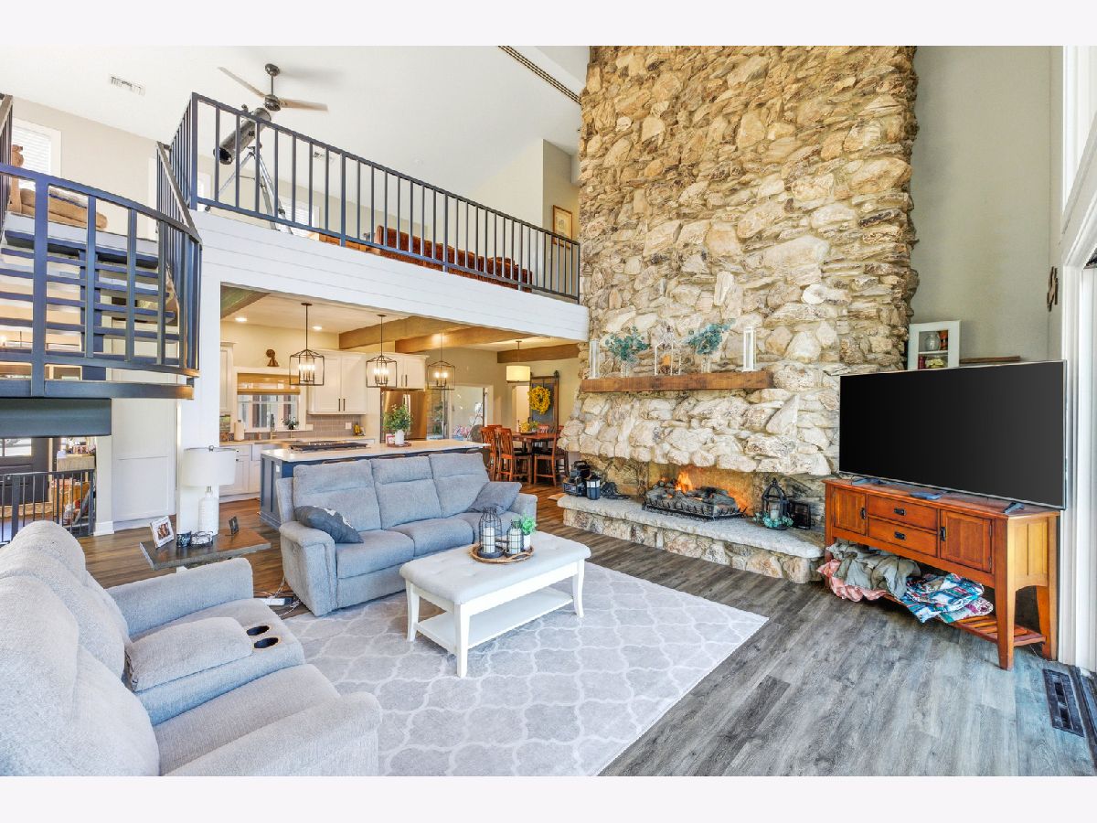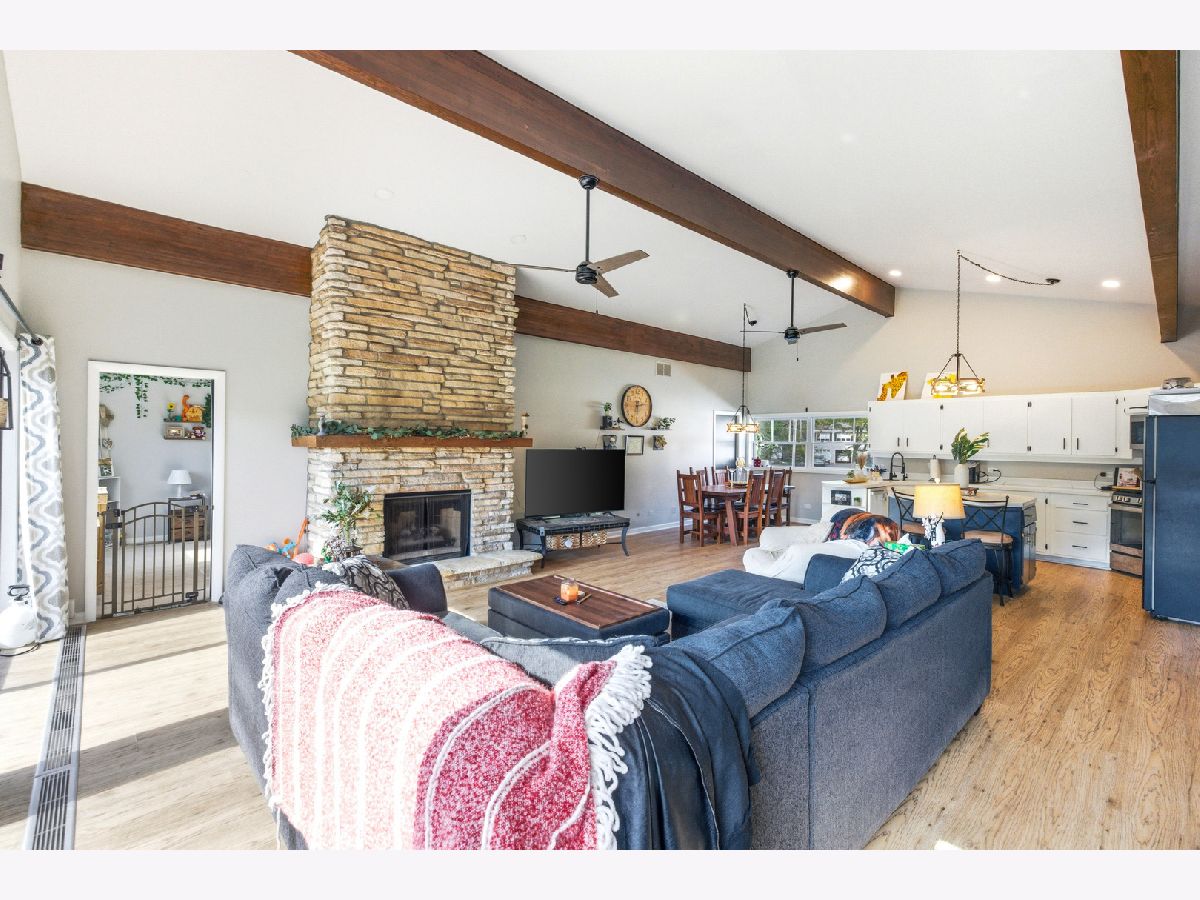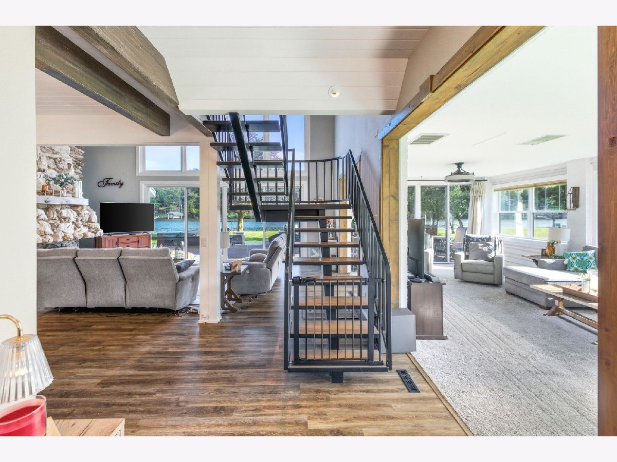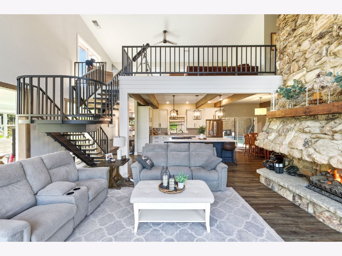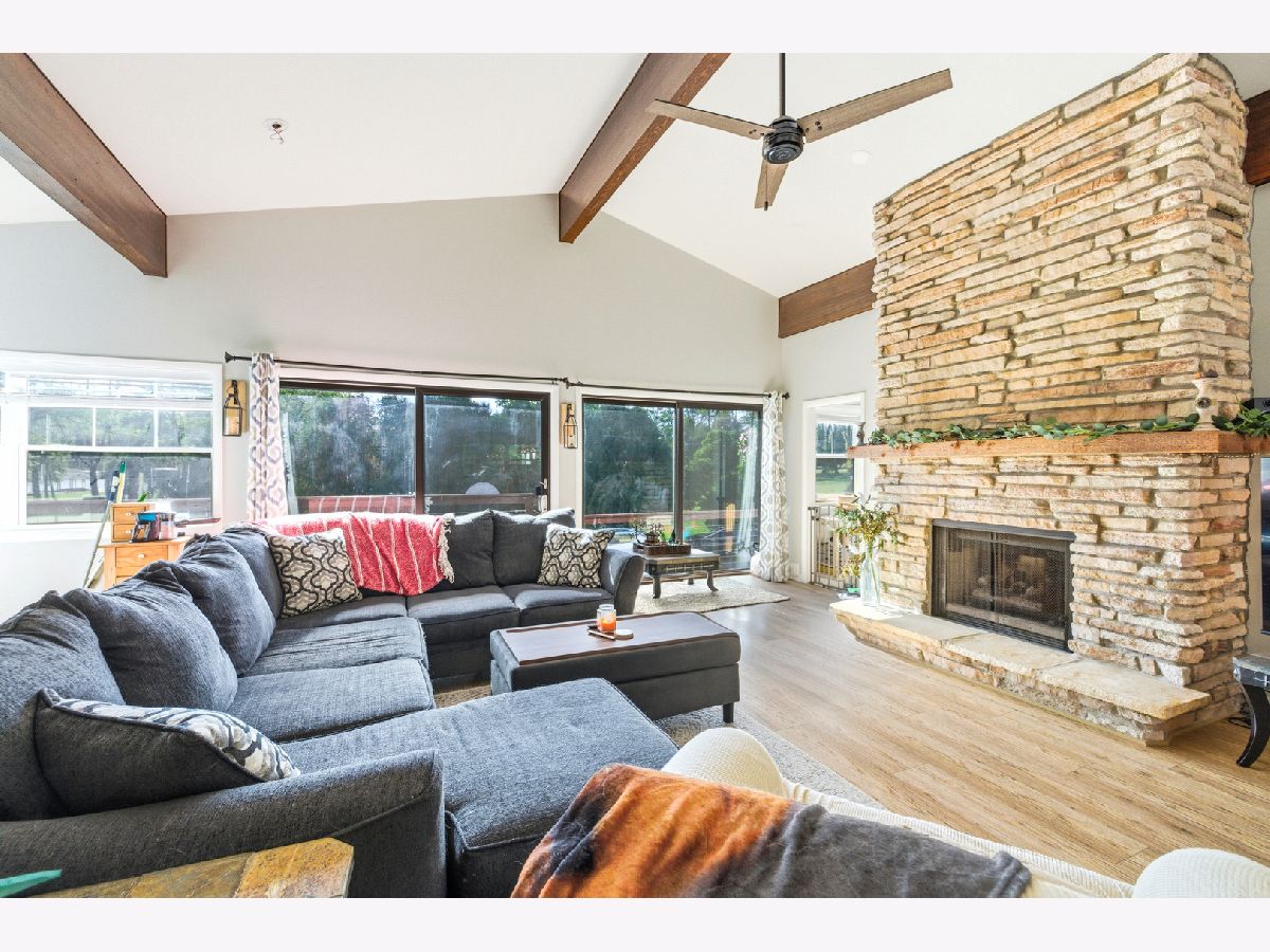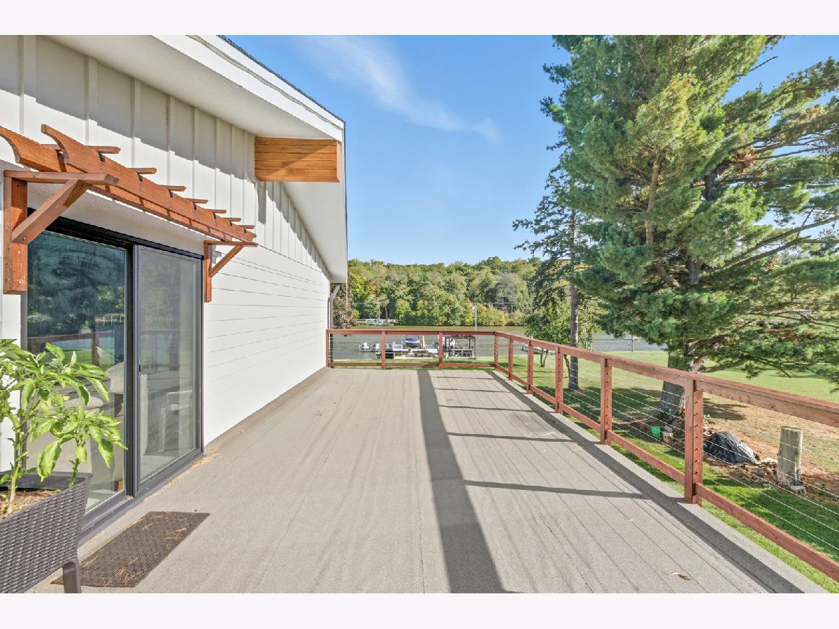 Amazing Fox River home on 1.56 acres awaits you! This custom-built residence, constructed in 1986, features a spacious layout with 4 bedrooms, 2.5 baths, and a 4-car garage. Enjoy incredible views of the Fox River, a natural sand beach, and a private boat dock. Plus, the entire home was completely updated in 2020. The main house offers two separate living spaces. The open-concept main level boasts a huge kitchen with abundant cabinets, quartz countertops, a subway tile backsplash, an in-countertop stove, a wall oven, and an extra-large pantry. The two-story family room features a stunning stone gas fireplace and floor-to-ceiling windows that bring in natural light. The four-season room provides ample space and light, with sliders that open to the deck. The first-floor primary ensuite includes its own gas fireplace, two walk-in closets, and a spa-like bathroom with sliders to the deck. All flooring on the first floor is heated for added comfort. Upstairs, you'll find a large loft area and 3 spacious bedrooms, along with a full bathroom. There's also an apartment above the garage, featuring 2 bedrooms and 1.5 bathrooms, offering potential rental income or a private area for family or an in-law suite. This apartment boasts vaulted ceilings, a stone gas fireplace, and sliders to a deck. For your entertaining needs, the indoor pool area is heated and spacious, ensuring year-round enjoyment. The impressive four-car garage features heated bays and epoxy flooring. Outside, the property provides plenty of entertaining space with a large deck, expansive patio with a built-in fire pit, hot tub, and ample lawn for your pets. Down by the river, enjoy a picnic area and a covered space with room for a table and bar. Don't miss out on this resort-style home waiting for you! 400amp electrical service and large storage shed