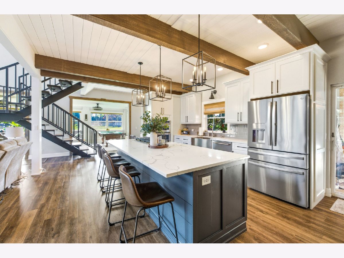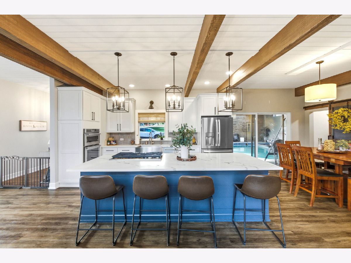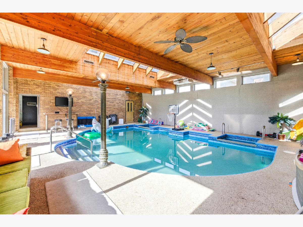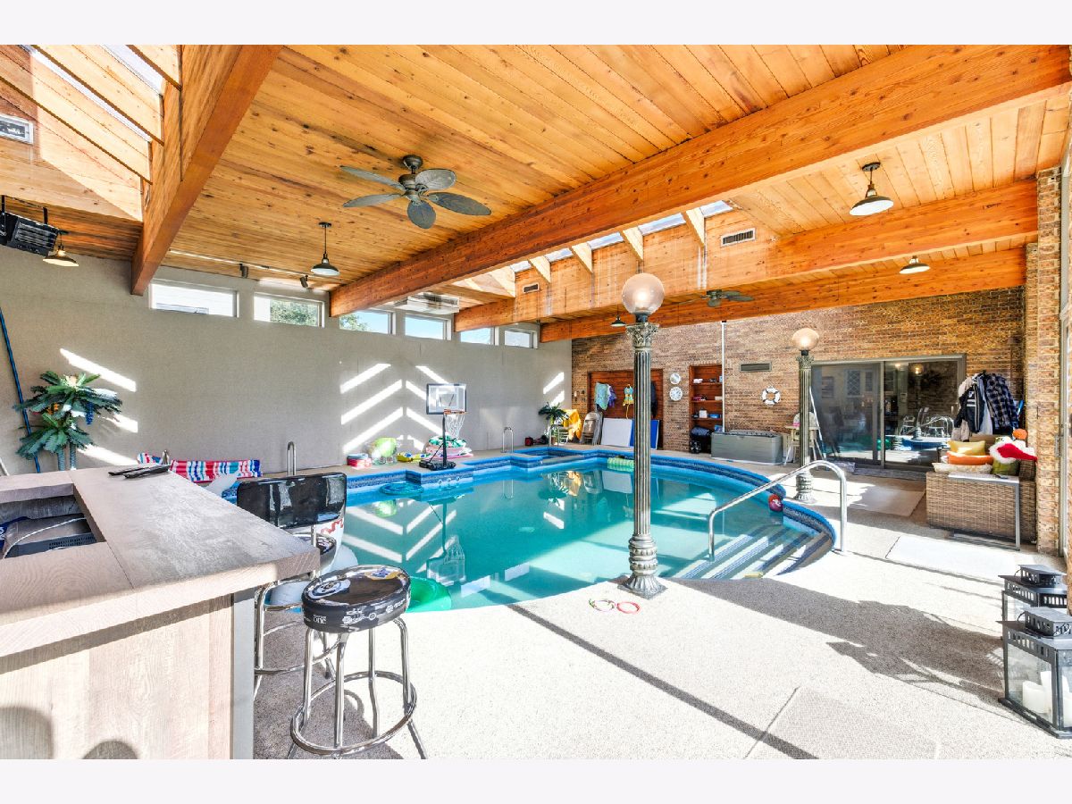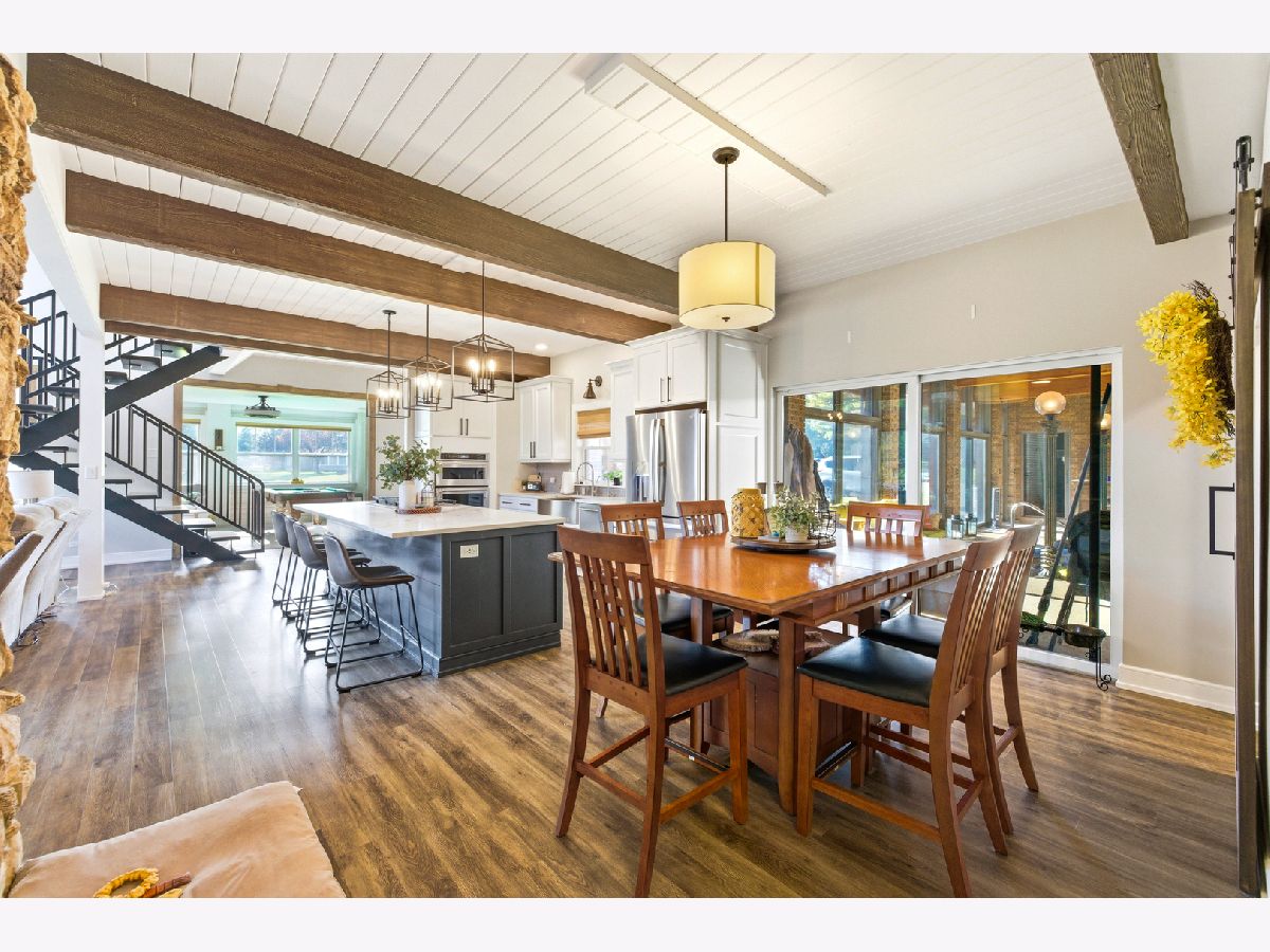 Amazing Fox River home on 1.56 acres awaits you! This custom-built residence, constructed in 1986, features a spacious layout with 4 bedrooms, 2.5 baths, and a 4-car garage. Enjoy incredible views of the Fox River, a natural sand beach, and a private boat dock. Plus, the entire home was completely updated in 2020. The main house offers two separate living spaces. The open-concept main level boasts a huge kitchen with abundant cabinets, quartz countertops, a subway tile backsplash, an in-countertop stove, a wall oven, and an extra-large pantry. The two-story family room features a stunning stone gas fireplace and floor-to-ceiling windows that bring in natural light. The four-season room provides ample space and light, with sliders that open to the deck. The first-floor primary ensuite includes its own gas fireplace, two walk-in closets, and a spa-like bathroom with sliders to the deck. All flooring on the first floor is heated for added comfort. Upstairs, you'll find a large loft area and 3 spacious bedrooms, along with a full bathroom. There's also an apartment above the garage, featuring 2 bedrooms and 1.5 bathrooms, offering potential rental income or a private area for family or an in-law suite. This apartment boasts vaulted ceilings, a stone gas fireplace, and sliders to a deck. For your entertaining needs, the indoor pool area is heated and spacious, ensuring year-round enjoyment. The impressive four-car garage features heated bays and epoxy flooring. Outside, the property provides plenty of entertaining space with a large deck, expansive patio with a built-in fire pit, hot tub, and ample lawn for your pets. Down by the river, enjoy a picnic area and a covered space with room for a table and bar. Don't miss out on this resort-style home waiting for you! 400amp electrical service and large storage shed