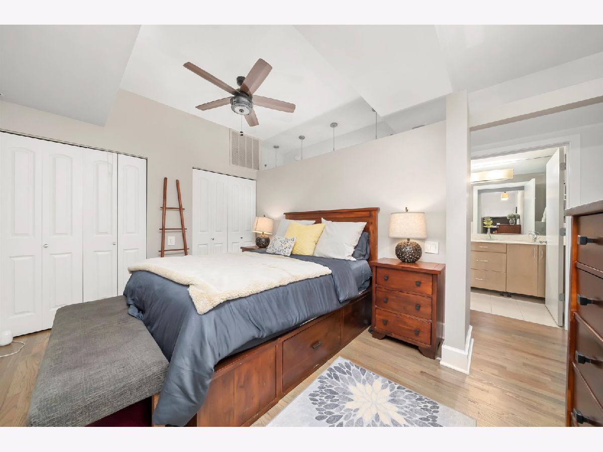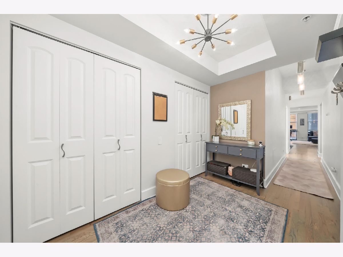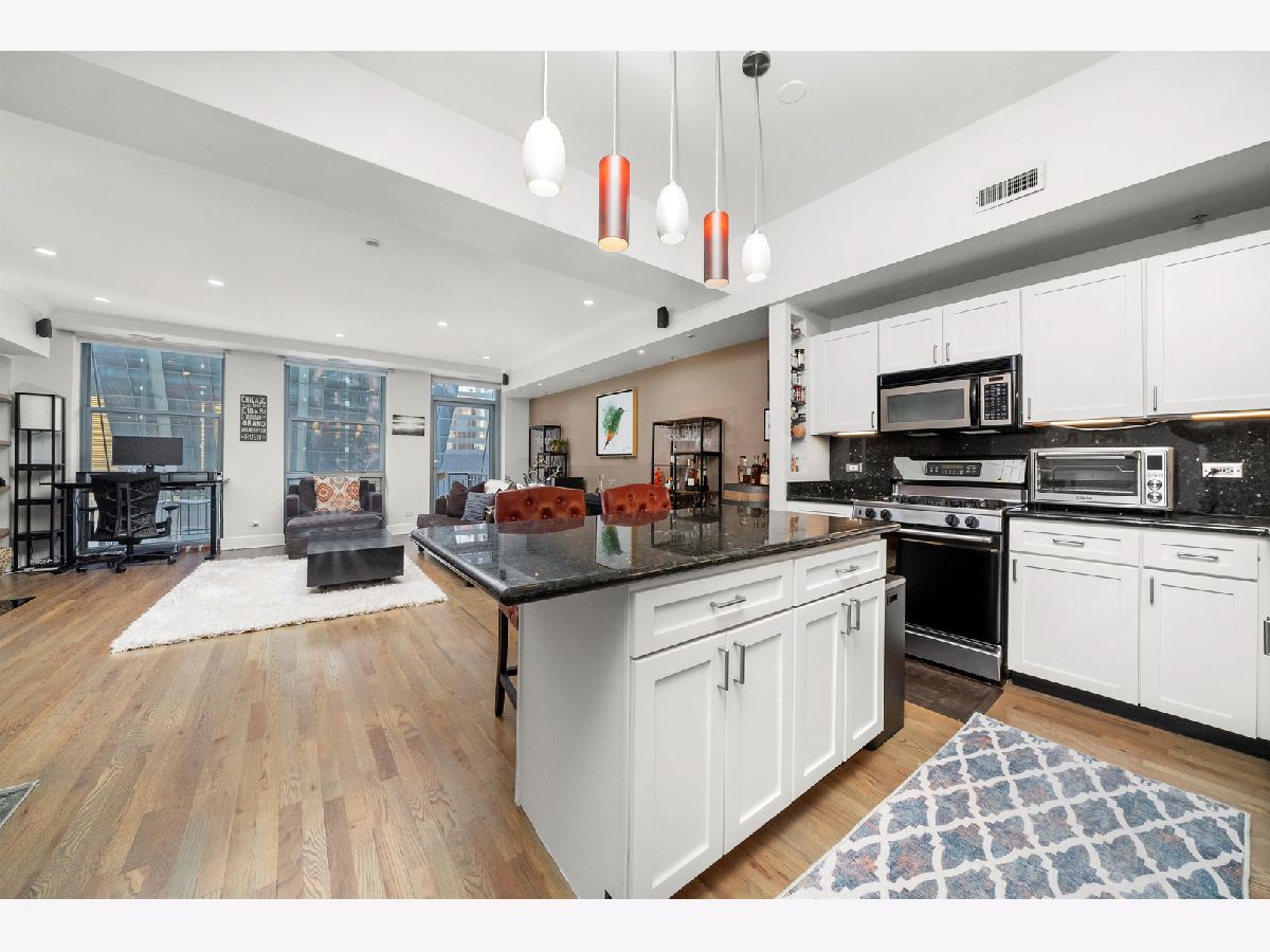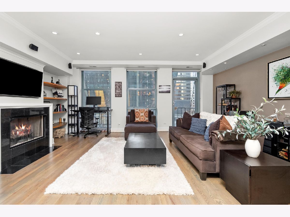 Stunning 2-bedroom, 1-bath residence in the West Loop/Fulton River District's sought-after Randolph Place. Step inside and be instantly impressed by this expansive, east-facing home featuring a private balcony and breathtaking sunset views. The spacious living room offers floor-to-ceiling windows and a gas fireplace, perfect for cozy nights in-and flows seamlessly into the open kitchen with granite countertops, stainless steel appliances, and an island ideal for entertaining. A flexible bonus space off the kitchen provides the perfect setting for a dining area, home office, or additional lounge space. The king-sized primary bedroom is a true retreat, complemented by ensuite bathroom featuring double vanities and a separate high pressure shower and soaking tub. The second bedroom is ideal for guests or a home office and includes a Murphy bed. Hardwood floors, central air and heat, and ample storage complete the home. An oversized, deeded parking space that accommodates two large sedans is available for an additional 35k. Randolph Place is a pet-friendly, professionally managed elevator building offering 24-hour door staff, on-site management, and a fitness center. Monthly assessments include cable TV with HBO and Showtime, as well as high-speed internet. Enjoy an unbeatable location near CTA and Metra, expressways, West Loop dining, the Chicago Riverwalk, and the nightlife of River North and Downtown. See broker private remarks for additional details. Explore the property in 3D-click the virtual tour to walk through every detail. Come home!