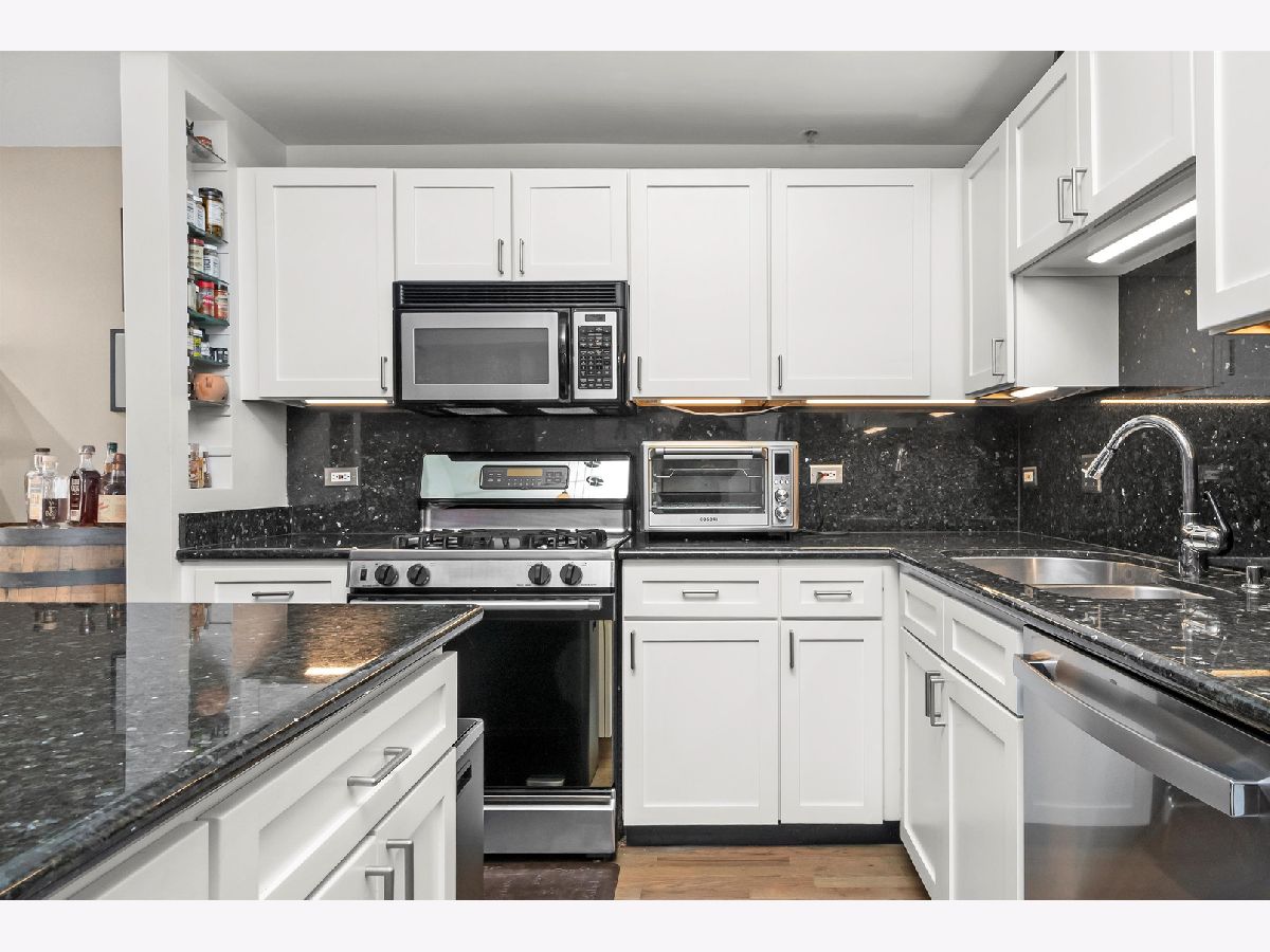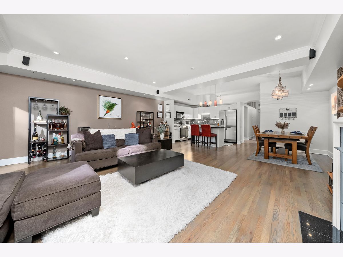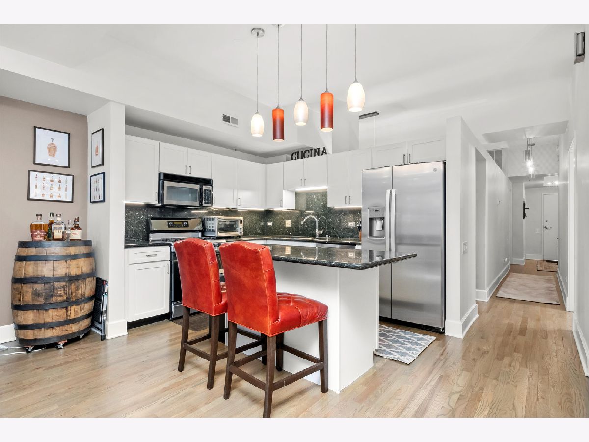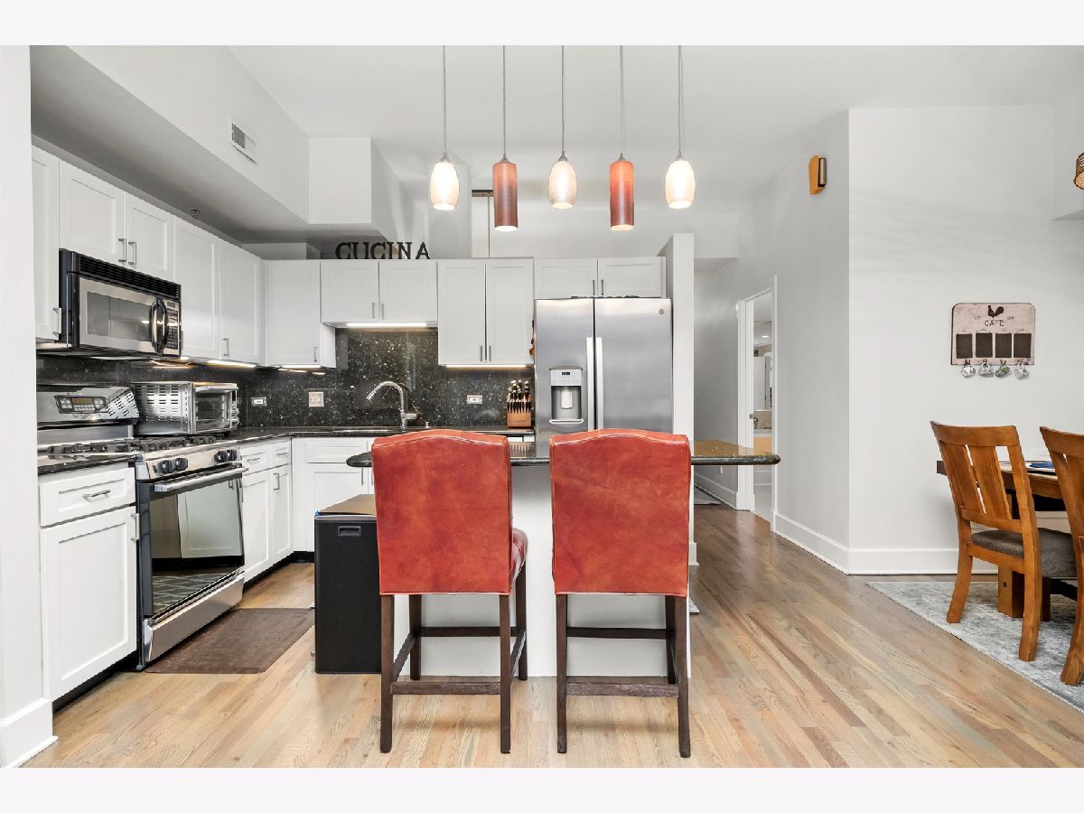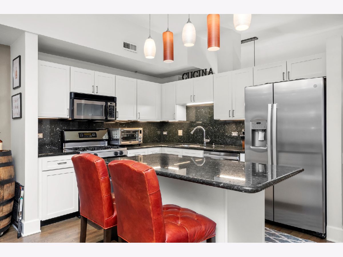 Stunning 2-bedroom, 1-bath residence in the West Loop/Fulton River District's sought-after Randolph Place. Step inside and be instantly impressed by this expansive, east-facing home featuring a private balcony and breathtaking sunset views. The spacious living room offers floor-to-ceiling windows and a gas fireplace, perfect for cozy nights in-and flows seamlessly into the open kitchen with granite countertops, stainless steel appliances, and an island ideal for entertaining. A flexible bonus space off the kitchen provides the perfect setting for a dining area, home office, or additional lounge space. The king-sized primary bedroom is a true retreat, complemented by ensuite bathroom featuring double vanities and a separate high pressure shower and soaking tub. The second bedroom is ideal for guests or a home office and includes a Murphy bed. Hardwood floors, central air and heat, and ample storage complete the home. An oversized, deeded parking space that accommodates two large sedans is available for an additional 35k. Randolph Place is a pet-friendly, professionally managed elevator building offering 24-hour door staff, on-site management, and a fitness center. Monthly assessments include cable TV with HBO and Showtime, as well as high-speed internet. Enjoy an unbeatable location near CTA and Metra, expressways, West Loop dining, the Chicago Riverwalk, and the nightlife of River North and Downtown. See broker private remarks for additional details. Explore the property in 3D-click the virtual tour to walk through every detail. Come home!
