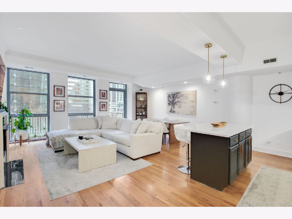 Rarely available east facing loft style home located at Randolph Place Residences in the sought after Fulton River District/West Loop! This building tier rarely comes to market. Stepping into the gorgeous entry foyer, you are greeted by tray ceilings setting the tone for sophistication. A long hallway leads you into the expansive living space, ideal for entertaining with its open layout. The designer kitchen has undergone a beautiful renovation featuring custom cabinetry, quartz countertops, subway tile backsplash, under cabinet lighting and stainless steel appliances. Other unit features include 10-foot ceilings, gas fireplace, an in-unit washer/dryer, central heat/air and a large balcony offering stunning east views of the Chicago River and surrounding green spaces. Floor to ceiling windows flood the unit with an abundance of natural light. The fully enclosed primary suite includes a wall of closets and leads into the updated bath with a mid-century modern style double vanity, custom tile and beautiful tub/shower. The attached bonus room is perfect for additional bedroom space with a built-in murphy bed and additional closet/storage or can be used as a home office/extra den space. Recent renovations to the building's hallways, lobby and fitness center, along with the addition of an electric charging stations and an Amazon Hub package delivery system to complement the large building receiving room enhance convenience to offer an unparalleled lifestyle experience. Assessments cover cable TV with HBO/Showtime, high-speed internet, 24-hour doorperson and on-site management/engineer. Randolph Place is ideally situated within walking distance to the plethora of restaurants on Randolph/Fulton St., the Loop, Metra/public transportation, expressways, several grocery stores, shopping destinations and the expanded Chicago Riverwalk entrance is just across the street. Heated garage parking space additional 35,000.
