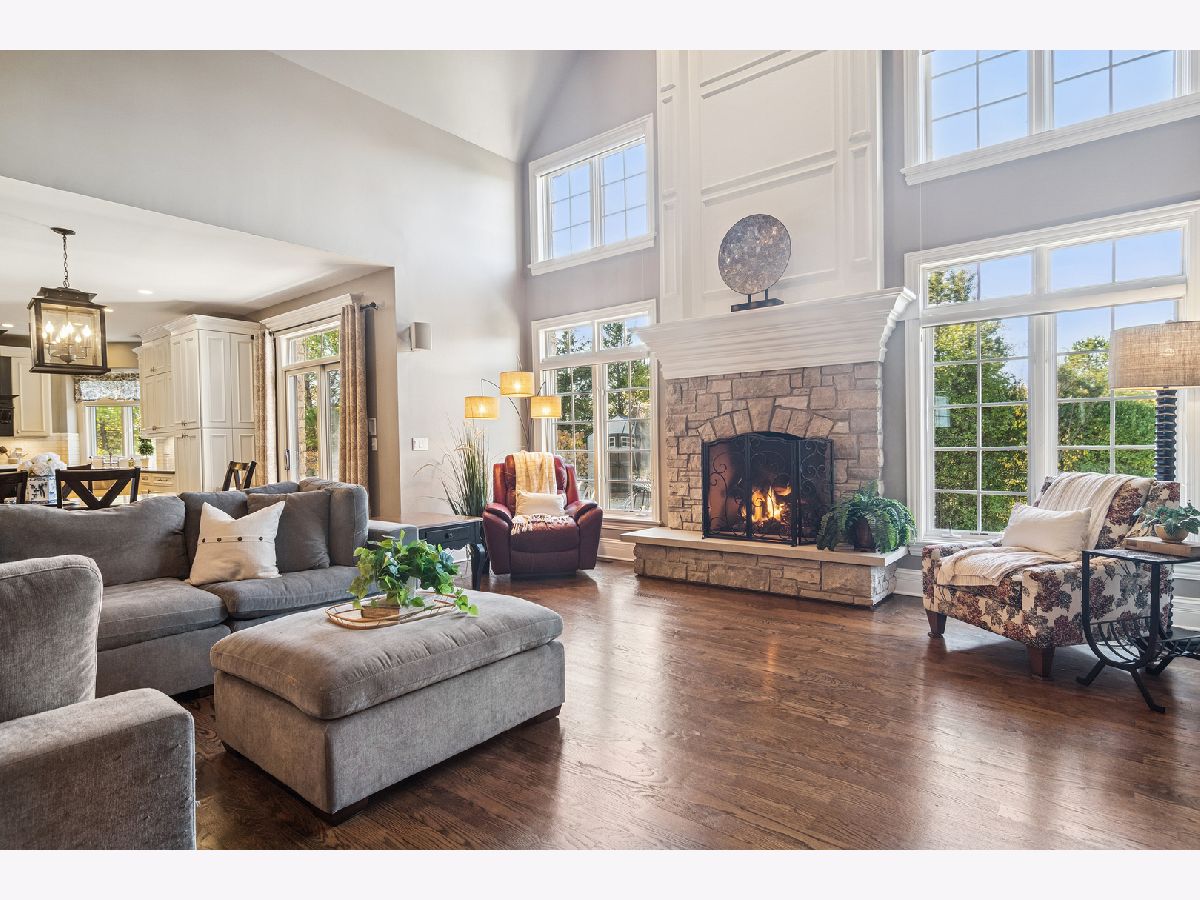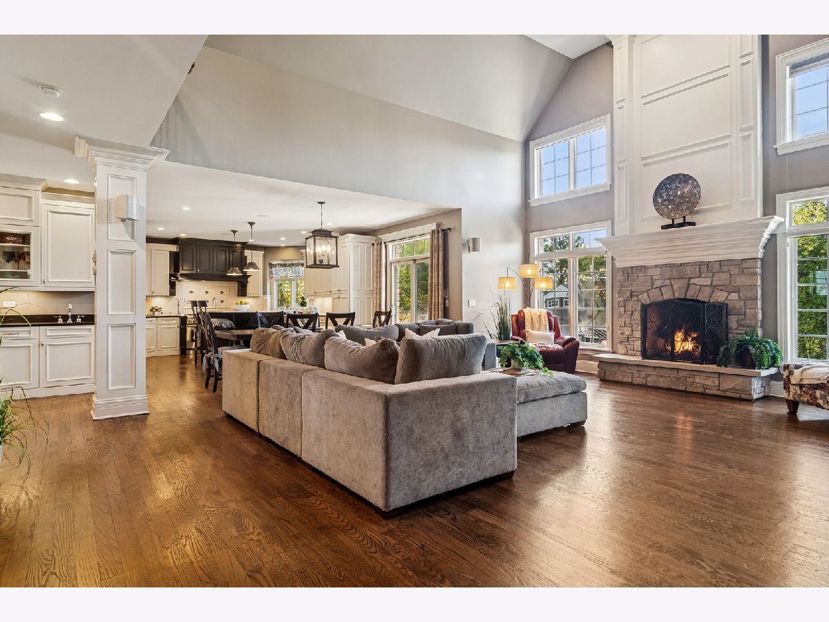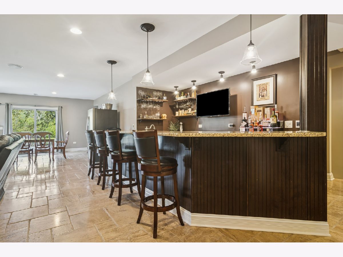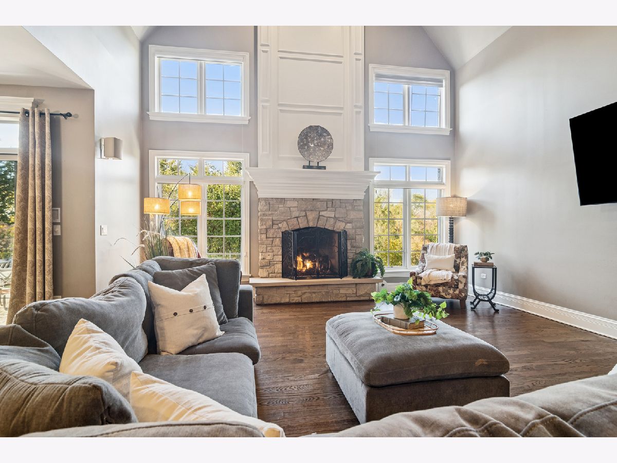 Experience timeless sophistication and contemporary convenience in this stunning 6,577-square-foot residence on 1.29 acres, ideally located in the serene North Barrington community, Haverton on the Pond. Meticulously maintained, this fully brick home offers five bedrooms, four full bathrooms, and two half-bathrooms, seamlessly blending refined design with everyday functionality. Step inside the grand foyer, where a grand staircase with wrought iron spindles, soaring two-story ceilings, and stunning dark hardwood throughout the main and second levels set the tone for the home's elegance. The gourmet kitchen impresses with a large marble island and slick black granite countertops, custom soft-close cabinetry, reverse osmosis water filtration, and high-end appliances including a Sub-Zero refrigerator and Thermador Professional gas range with 6 burners and a griddle-perfect for the passionate home chef. Around the corner, the butler's pantry features matching cabinetry and countertops to the kitchen, a wet bar, and beverage fridge. The eat-in kitchen and breakfast room with access to the patio seamlessly combine into the expansive two-story living room, centered around a stone gas fireplace, creating an inviting space for both relaxation and entertaining. The dining room and living room showcase stunning crown moldings and wainscoting, and the library/office features french doors, built-in bookshelves, wainscoting and coffered ceilings. Convenience abounds with a main-level laundry/mudroom-doubling as a half bath-equipped with Whirlpool washer/dryer, stone counters and floors, custom cabinetry, sink, built-in cubbies, and direct garage access. The primary suite offers a private sanctuary, featuring a gas fireplace with a granite hearth and built-ins, wet bar with travertine countertops, a luxurious spa bathroom with a jetted Whirlpool tub, large steam shower, heated stone floors, separate vanities with custom cabinetry and travertine countertops, and enormous walk-in closet with an adjacent private workout room for ultimate convenience. Upstairs, three additional bedrooms with vaulted ceilings and walk-in closets include one ensuite with limestone vanity and shower/tub combo, plus two sharing a thoughtfully designed Jack-and-Jill bath with marble countertops, shower/tub, and a separate toilet room behind a pocket door; one of these bedrooms also enjoys a charming third-story loft with hardwood floors. The fifth bedroom is located in the fully finished walkout basement. The walkout basement also features a full bathroom, stylish full bar with granite countertops, a wine cooler, microwave, and heated stone floors, a living area with a gas fireplace, wine cellar, and a dedicated media/theatre room. The four-car garage, professionally epoxy sealed and gas heated, offers ample space for vehicles and storage. Outdoors, the beautiful professionally landscaped yard features irrigation and landscape lighting systems, and a brand-new asphalt driveway with concrete ribbon enhancing the overall curb appeal. Enjoy breathtaking sunset views over the pond from the two brick paver patios connecting the main and lower levels with gorgeous brick and stone steps. Additional exterior features include a gas grill hookup, invisible fence, spring-free trampoline, and she-shed-all included in the sale. Located just 35 miles from Chicago, minutes from shopping, dining, and everyday conveniences, less than a 10-minute drive to Downtown Barrington and the Metra station, and in the highly awarded Barrington School District 220, 165 Haverton Way offers an extraordinary combination of luxury and practicality. Schedule your private tour today-this North Barrington masterpiece won't last long.