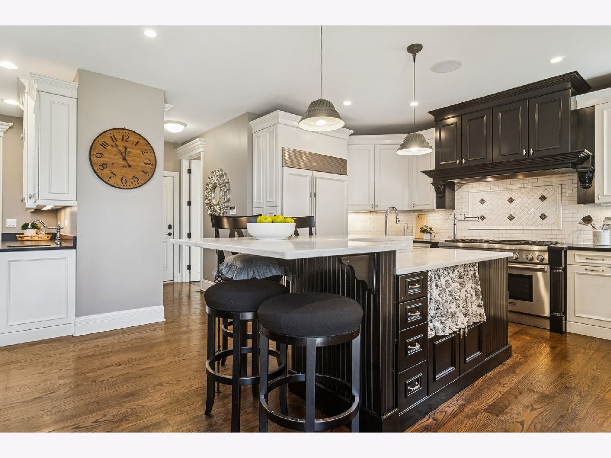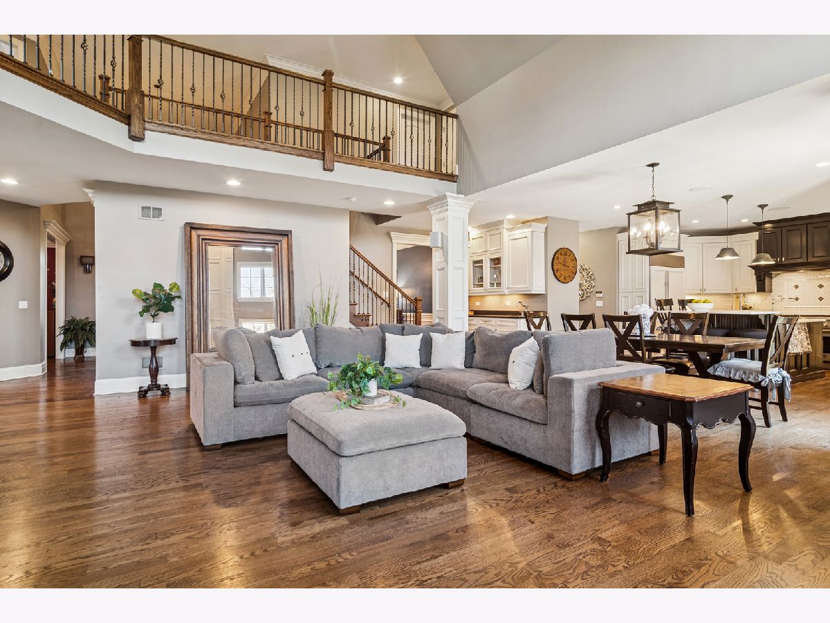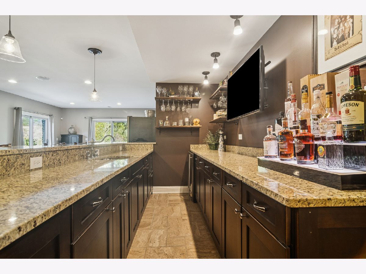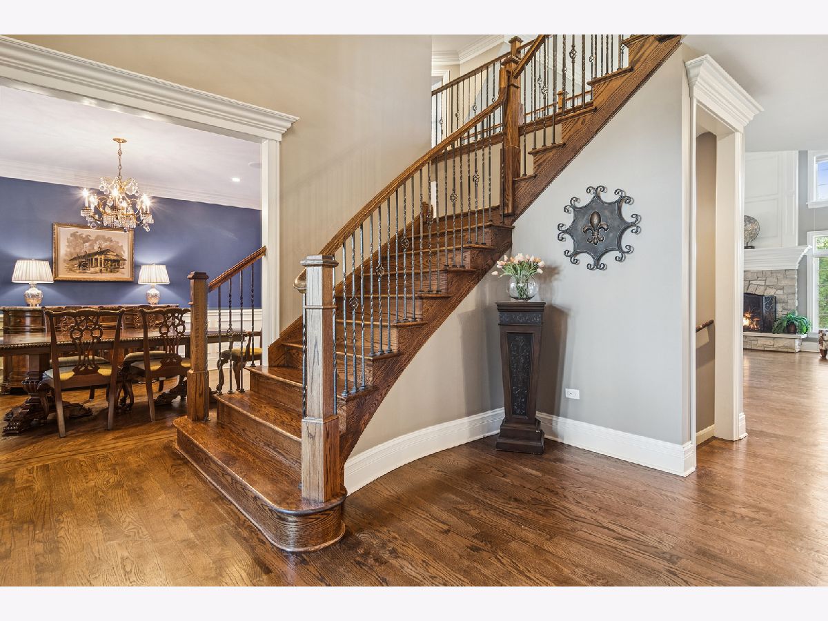 Experience timeless sophistication and contemporary convenience in this stunning 6,577-square-foot residence on 1.29 acres, ideally located in the serene North Barrington community, Haverton on the Pond. Meticulously maintained, this fully brick home offers five bedrooms, four full bathrooms, and two half-bathrooms, seamlessly blending refined design with everyday functionality. Step inside the grand foyer, where a grand staircase with wrought iron spindles, soaring two-story ceilings, and stunning dark hardwood throughout the main and second levels set the tone for the home's elegance. The gourmet kitchen impresses with a large marble island and slick black granite countertops, custom soft-close cabinetry, reverse osmosis water filtration, and high-end appliances including a Sub-Zero refrigerator and Thermador Professional gas range with 6 burners and a griddle-perfect for the passionate home chef. Around the corner, the butler's pantry features matching cabinetry and countertops to the kitchen, a wet bar, and beverage fridge. The eat-in kitchen and breakfast room with access to the patio seamlessly combine into the expansive two-story living room, centered around a stone gas fireplace, creating an inviting space for both relaxation and entertaining. The dining room and living room showcase stunning crown moldings and wainscoting, and the library/office features french doors, built-in bookshelves, wainscoting and coffered ceilings. Convenience abounds with a main-level laundry/mudroom-doubling as a half bath-equipped with Whirlpool washer/dryer, stone counters and floors, custom cabinetry, sink, built-in cubbies, and direct garage access. The primary suite offers a private sanctuary, featuring a gas fireplace with a granite hearth and built-ins, wet bar with travertine countertops, a luxurious spa bathroom with a jetted Whirlpool tub, large steam shower, heated stone floors, separate vanities with custom cabinetry and travertine countertops, and enormous walk-in closet with an adjacent private workout room for ultimate convenience. Upstairs, three additional bedrooms with vaulted ceilings and walk-in closets include one ensuite with limestone vanity and shower/tub combo, plus two sharing a thoughtfully designed Jack-and-Jill bath with marble countertops, shower/tub, and a separate toilet room behind a pocket door; one of these bedrooms also enjoys a charming third-story loft with hardwood floors. The fifth bedroom is located in the fully finished walkout basement. The walkout basement also features a full bathroom, stylish full bar with granite countertops, a wine cooler, microwave, and heated stone floors, a living area with a gas fireplace, wine cellar, and a dedicated media/theatre room. The four-car garage, professionally epoxy sealed and gas heated, offers ample space for vehicles and storage. Outdoors, the beautiful professionally landscaped yard features irrigation and landscape lighting systems, and a brand-new asphalt driveway with concrete ribbon enhancing the overall curb appeal. Enjoy breathtaking sunset views over the pond from the two brick paver patios connecting the main and lower levels with gorgeous brick and stone steps. Additional exterior features include a gas grill hookup, invisible fence, spring-free trampoline, and she-shed-all included in the sale. Located just 35 miles from Chicago, minutes from shopping, dining, and everyday conveniences, less than a 10-minute drive to Downtown Barrington and the Metra station, and in the highly awarded Barrington School District 220, 165 Haverton Way offers an extraordinary combination of luxury and practicality. Schedule your private tour today-this North Barrington masterpiece won't last long.