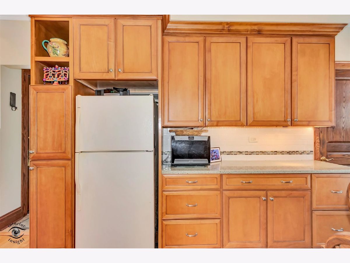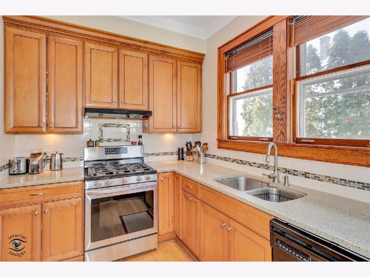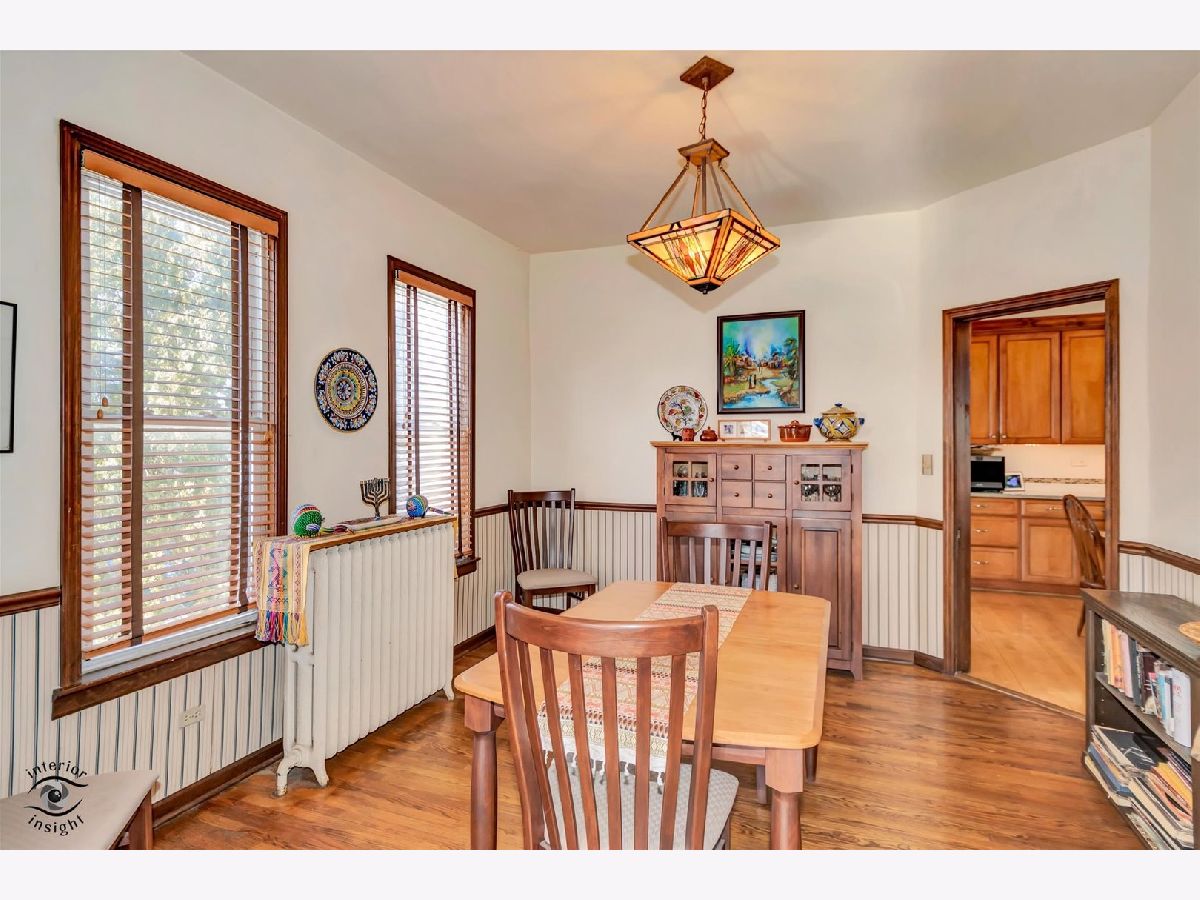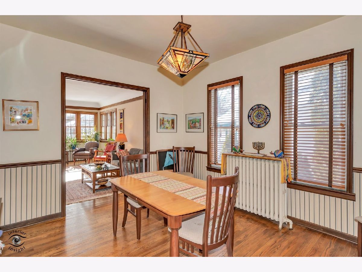 Passing on a well-loved family home rich in classic, traditional charm, this beautifully maintained residence showcases natural wood trim and molding throughout, cove ceilings, rich hardwood floors, and stunning stained-glass details. Thoughtfully updated over the years, the freshly painted interior features custom molding, a Frank Lloyd Wright-inspired chandelier, and a renovated kitchen with custom maple cabinetry, granite countertops, and a custom tile backsplash with stone accents. An open eating area is complemented by an oversized walk-in pantry and a door leading to the deck overlooking the lush, private yard. The flexible main-floor den also serves perfectly as a convenient 4th bedroom. An open staircase leads to the second level offering three bedrooms and a fully renovated bath with a custom arched ceiling, subway tile surround, custom wood vanity, and tile flooring. Set on an oversized 75 x 175 lot, the peaceful, private yard provides a fabulous outdoor retreat. Excellent condition/ As-Is Sale.