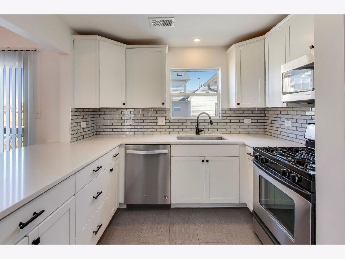 Beautifully updated 2 bedroom, 1.5-bath townhome in the Broken Arrow Navaho Subdivision offers modern finishes and a bright, welcoming layout. A sun filled living room flows seamlessly into a spacious dining area. The updated kitchen features quartz countertops, classic shaker cabinetry, a convenient breakfast bar, and stainless steel appliances, including a new refrigerator. A main-level half bath just off the kitchen and sliding glass doors off the dining room lead to a deck with views of Broken Arrow Golf Course. Newer carpeting runs throughout the second level with two generously sized bedrooms and a full bathroom. The sundrenched primary bedroom boasts cathedral ceilings and two closets. The refreshed laundry room includes a new washer and dryer, along with additional storage space under the stairs. Enjoy the convenience of an attached two-car garage and a quiet setting near the end of a cul-de-sac. Located within Lockport Township High School District and just minutes from charming downtown Lockport's restaurants and shopping, as well as easy access to I-355. A charming, move-in-ready home in a peaceful location.
