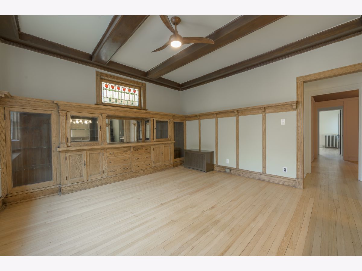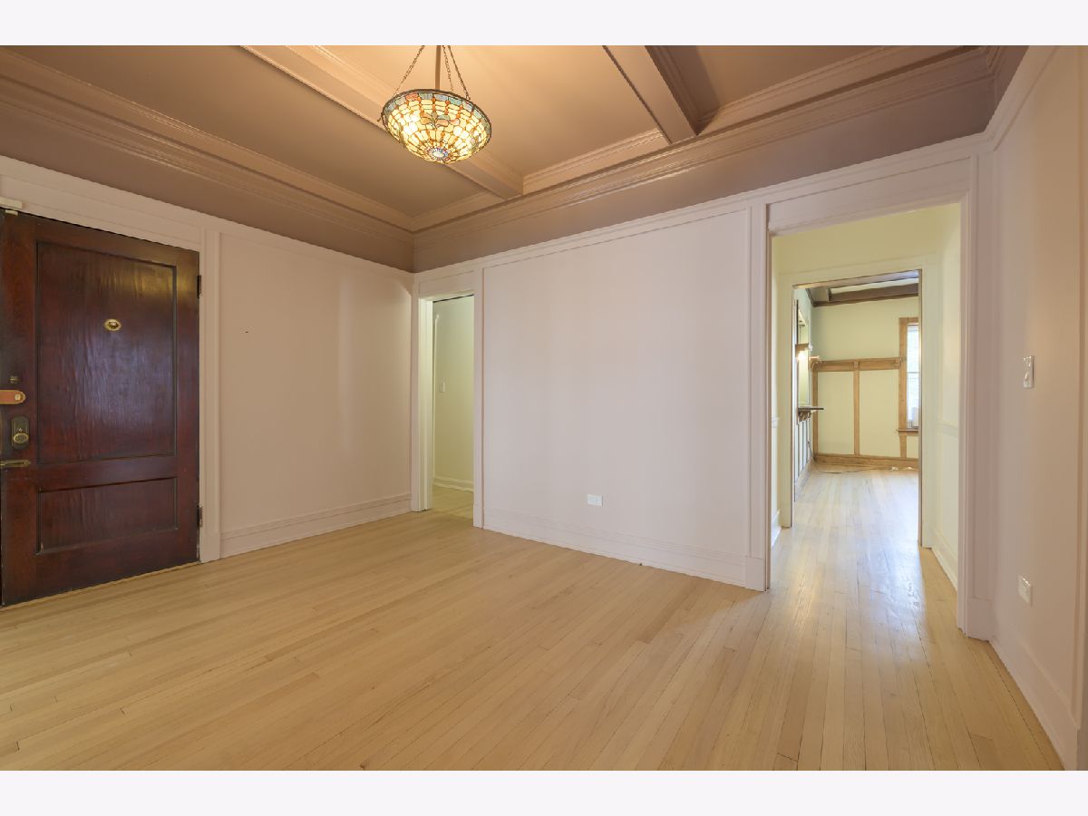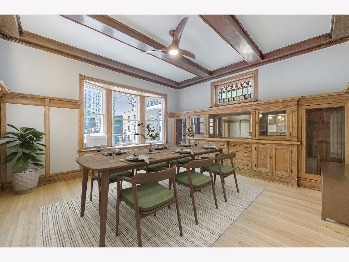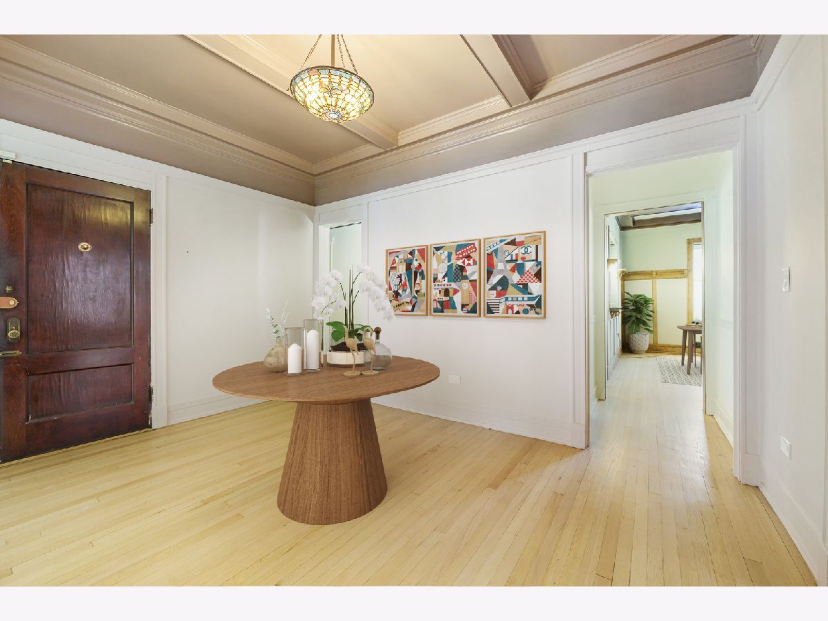 **HIGHEST AND BEST OFFERS DUE 3/30/2026 @ 5pm** | This gorgeous vintage unit has seen tons of updates since 2023! The home features 2 BEDROOMS + a DEN. The third room could easily serve as an office, guest room, or additional living space to suit your needs. The moment you enter and see the beautiful marble stairs and mahogany trim in the building's entryway, you know something special awaits. The spacious foyer in the unit leads to an oversized living room with built-in shelves. The dining room is a true gem, featuring an original buffet, which has recently been restored to its original wood finishes, spans the length of the room, and is topped by a stunning stained glass window. Beamed ceilings and a plate rail add to the room's historic charm. The kitchen has been updated with new wood cabinets, quartz backsplash, and countertops, and it opens to the dining room with a pass-through/breakfast bar. You will find refinished oak hardwood floors run throughout the home. The walls were sanded and repainted for a clean and modern finish. Recent updates include a new washer, dryer, dishwasher, new windows, and a riser project and balcony project were recently completed for the building. In the basement you will find another washer and dryer designated specifically for unit 2. Enjoy a covered and screened porch just off the kitchen. The building has parking which they rotate bi-annually based on demand, owners have successfully maintained parking as needed for a small monthly fee (~$50). Just steps from the lake, parks, shopping, the Museum of Science and Industry, and public transportation, with easy access to the University of Chicago schools and hospitals.