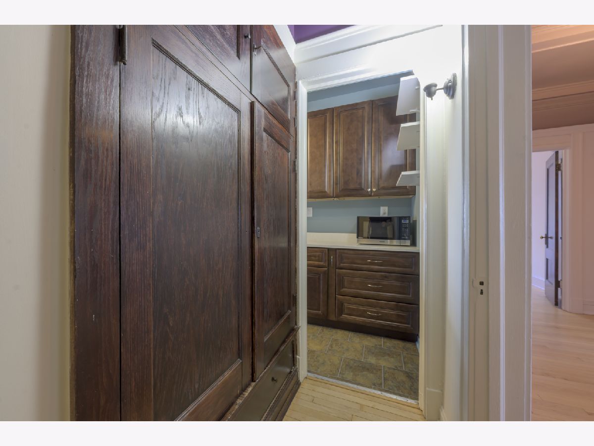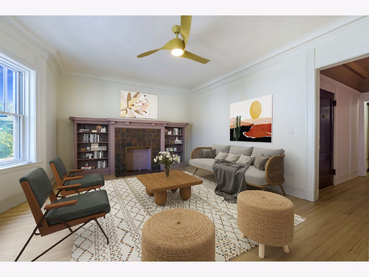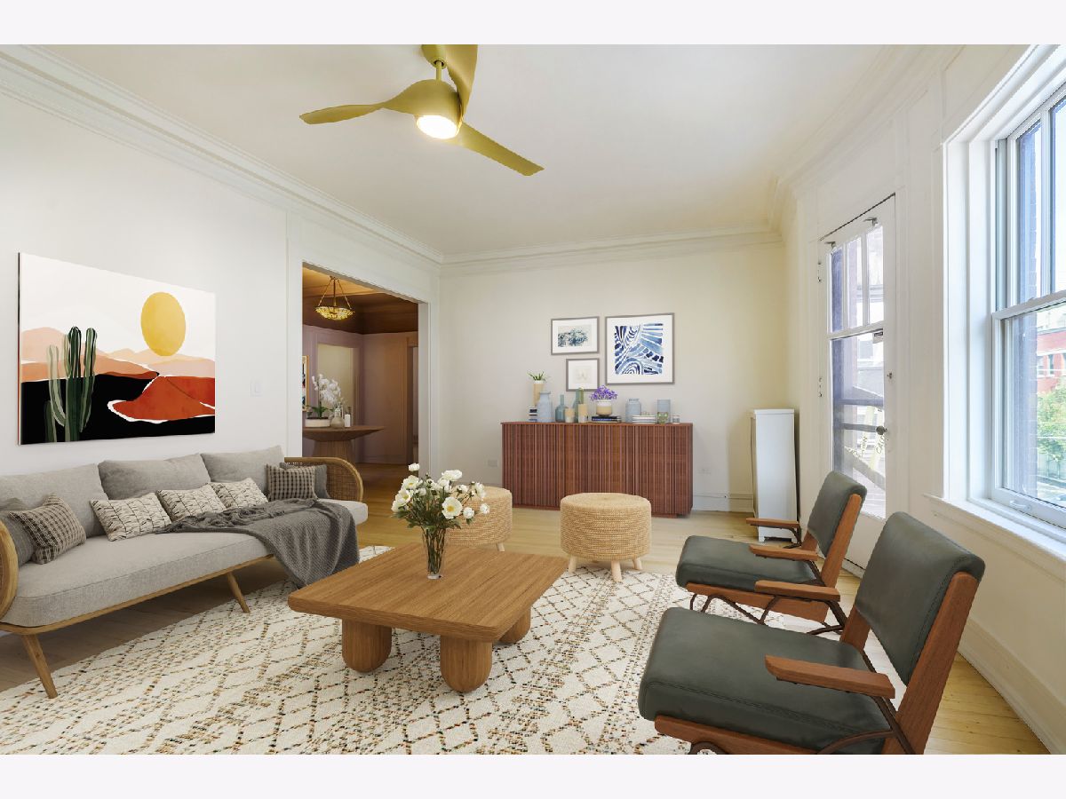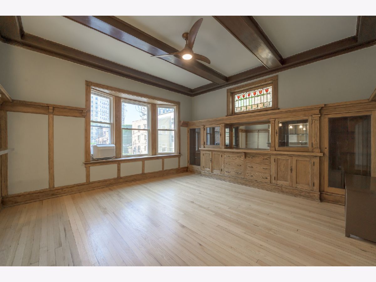 **HIGHEST AND BEST OFFERS DUE 3/30/2026 @ 5pm** | This gorgeous vintage unit has seen tons of updates since 2023! The home features 2 BEDROOMS + a DEN. The third room could easily serve as an office, guest room, or additional living space to suit your needs. The moment you enter and see the beautiful marble stairs and mahogany trim in the building's entryway, you know something special awaits. The spacious foyer in the unit leads to an oversized living room with built-in shelves. The dining room is a true gem, featuring an original buffet, which has recently been restored to its original wood finishes, spans the length of the room, and is topped by a stunning stained glass window. Beamed ceilings and a plate rail add to the room's historic charm. The kitchen has been updated with new wood cabinets, quartz backsplash, and countertops, and it opens to the dining room with a pass-through/breakfast bar. You will find refinished oak hardwood floors run throughout the home. The walls were sanded and repainted for a clean and modern finish. Recent updates include a new washer, dryer, dishwasher, new windows, and a riser project and balcony project were recently completed for the building. In the basement you will find another washer and dryer designated specifically for unit 2. Enjoy a covered and screened porch just off the kitchen. The building has parking which they rotate bi-annually based on demand, owners have successfully maintained parking as needed for a small monthly fee (~$50). Just steps from the lake, parks, shopping, the Museum of Science and Industry, and public transportation, with easy access to the University of Chicago schools and hospitals.