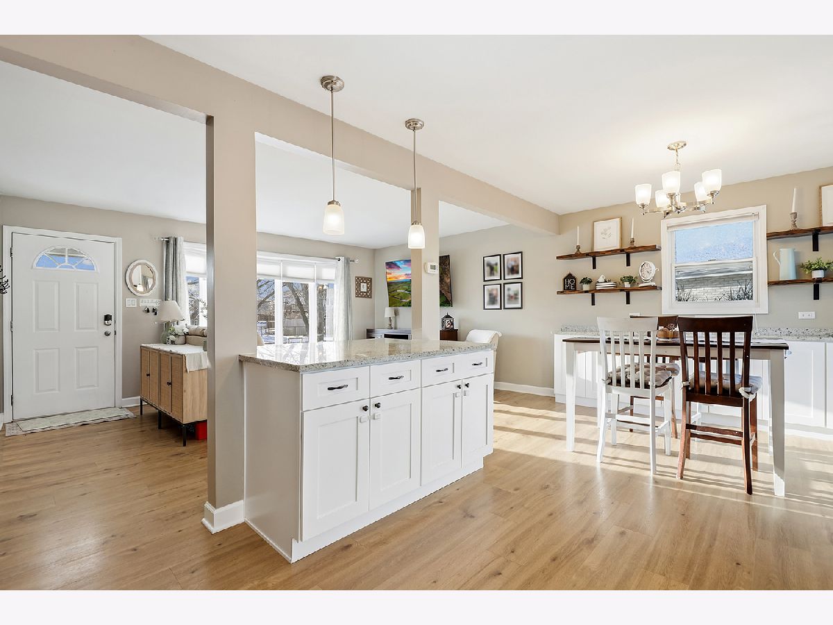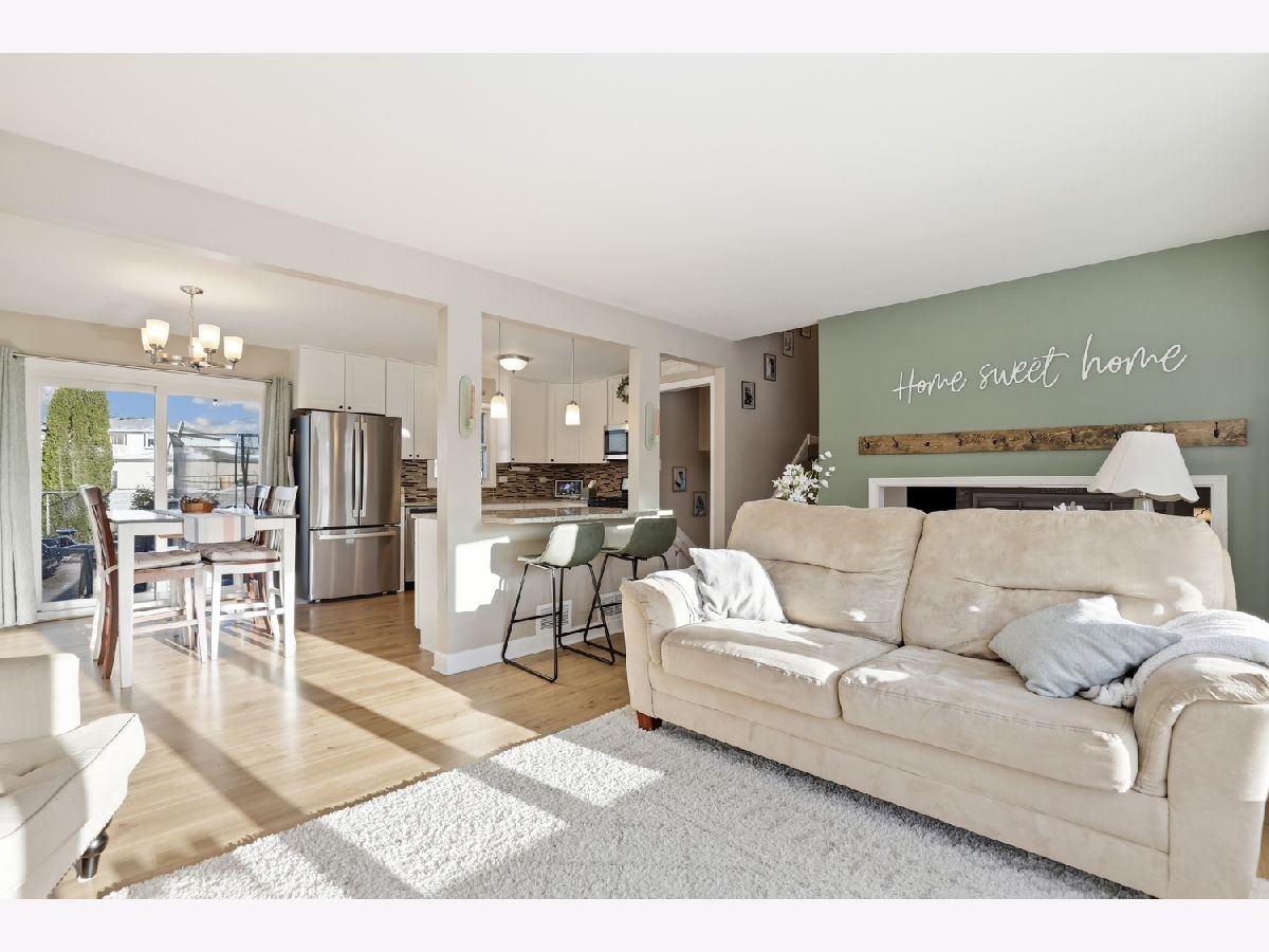 Adorably updated tri-level home in the highly sought-after Andrew High School district, offering a clean, modern feel with just the right amount of warmth. The main level welcomes you with durable laminate flooring and an open layout that feels both functional and inviting. The eat-in kitchen, updated in 2023, features stainless steel appliances, granite countertops, a custom backsplash, and plenty of cabinet space, along with a breakfast bar for everyday convenience. A brand-new sliding glass door (May 2025) brings in natural light and opens to a backyard with no immediate rear neighbors-just an open field that adds a sense of space and privacy. The walkout lower level provides a comfortable second living area, anchored by a custom stone gas fireplace. It's a great spot to unwind or entertain, with the added benefit of a full bathroom and laundry room nearby. Upstairs, you'll find three generously-sized bedrooms and another full bathroom, offering a practical and private layout. Recent updates include a new sump pump (2026), roof and gutters, water heater (2024), and refrigerator (2025), making this home truly move-in ready. Conveniently located near shopping, restaurants, Metra access, and I-80, this home offers a balanced mix of updates, space, and location. Schedule your private showing today; this one won't last long!!