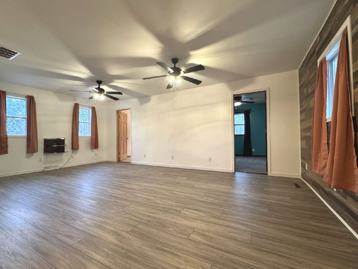Quiet rural community with mature trees! Here's where you'll find this move in ready Ranch offering up to 3 Bedrooms, 1 Bathroom, and many updates including new front door and screen door, new back screen door, new luxury plank flooring in Living Room, Dining Room and 3rd Bedroom. The Living Room has a rustic accent wall that incorporates the nature setting of this property. All new ceiling fans and light fixtures. Enclosed back porch is ideal for enjoying your morning coffee. Garage measures 32x24 and is heated with its own fuel tank behind the garage, work bench, pull down stairs to partially floored attic. Roof 2011, Furnace & Central air 2015, Water Heater 2011, Well pump 2022. Chicken house.