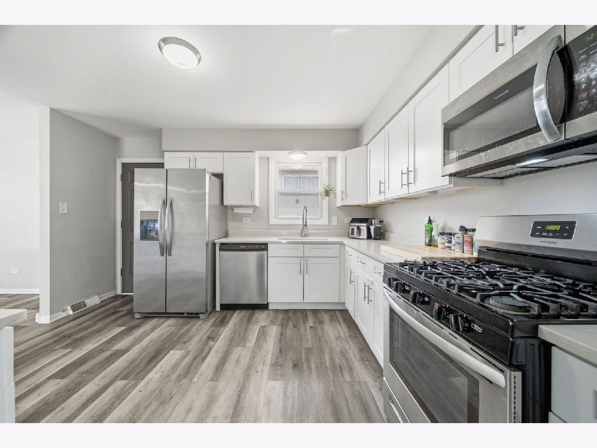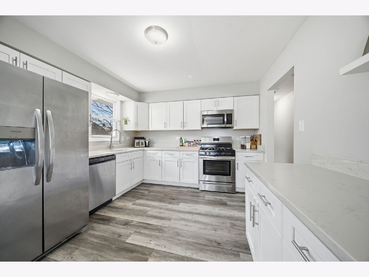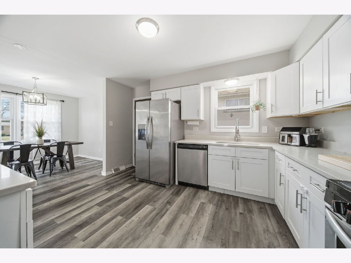 Beautifully updated and move-in ready, this exceptional 3-bedroom, 2 full bath bi-level (Raised Ranch) on a large corner lot offers the perfect blend of modern updates, functional living, and everyday comfort, all set in a quiet, desirable Oak Forest neighborhood. The home welcomes you with spacious, light-filled living areas and a versatile lower-level family room anchored by a cozy wood-burning fireplace, ideal for relaxing or entertaining. Throughout the home, recent fresh paint and newer luxury vinyl plank flooring create a clean, cohesive, and contemporary feel. At the heart of the home is a stunning, fully updated kitchen featuring white shaker-style cabinetry, sleek stone countertops, and stainless steel appliances. A conveniently located rear exterior Kitchen door provides a seamless flow to the generous sized backyard, which adds to the home's appeal, providing a great space for entertaining, recreation, or simply enjoying outdoor living. Both full bathrooms have been tastefully updated recently with new vanities and modern fixtures, offering a fresh look. This home stands out not only for its design, but for the recent upgrades, including: a brand new roof with complete tear-off (2025), a newer central air conditioning system (2022), a newer (2022) water heater, a brand new (2025) 100-amp electrical panel, and a recent, full cosmetic update! Ideally located near parks, shopping, and major highways, this property offers both convenience and a peaceful residential setting. A truly turnkey opportunity combining quality updates, thoughtful improvements, and lasting value. Taxes do not reflect Homeowners exemption, which has since been applied, and the new buyer should see a significant decrease in property taxes once the exemption is active. Schedule your private showing today to experience everything this home has to offer.