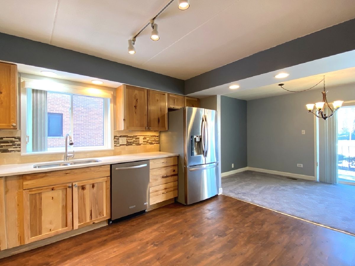 IT DOESN'T GET ANY BETTER! We proudly present this beautifully updated 2 bedroom, 1 1/2 bath 1st level condo with private patio, 1 car detached garage + 1 assigned parking space and located in a quiet flexicore building!!! Upon entering you will experience pleasant "clean and fresh" upgrades throughout! NEW plush carpet/padding in 2025, calming neutral paint colors and white door/trim package! This home has an open concept living room/dining room arrangement that freely flows into the fabulous kitchen (updated in 2021) offering Shaker style Rustic Hickory cabinets, Satin Nickel pulls, Quartz countertops, Travertine tile w/glass border backsplash, undermount sink, pull out sprayer faucet, stainless steel appliances (fridge, oven, microwave and dishwasher) and deluxe vinyl plank flooring! Large sliding glass door accesses the private 17x5 patio which is perfect for unwinding at the end of a busy day! The 12x11 primary bedroom with ceiling fan is nicely accentuated with its tasteful private bath (2021 renovations include: new tile flooring, vanity, Moen faucet, tub enclosure w/niches on both sides, wainscot paneling, tri-view mirrored medicine cabinet, custom box shelving system for added storage and also allows access to the AC lines in the floor behind the box if needed). 2nd bedroom, updated 1/2 bath and convenient in-unit laundry/mud room w/cabinets (washer/dryer included) round out this stunning home! Appreciate the highly-rated schools and excellent location (close to the train, shopping, schools, Tinley Park Park District facility, Tinley Park White Water Canyon Water Park, restaurants and so much more!) Get here before it's gone! OTHER features include: All windows (including the sliding door) were replaced within the last 10 years; AC (2014); Washer/Gas Dryer (2020); Hot Water Heater (2021); Furnace (2022).