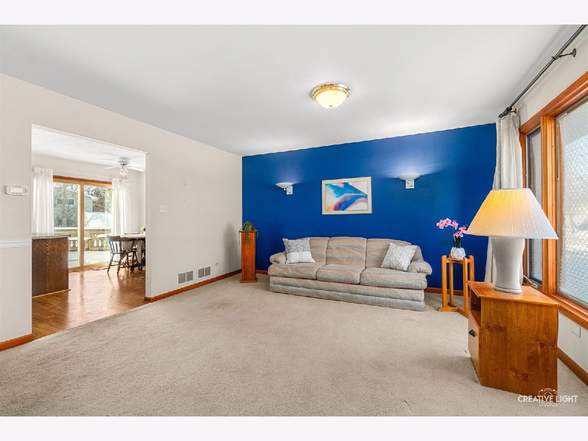 Welcome home! The main floor features a bright eat-in kitchen with a sliding glass door that opens to the deck and flows easily into the living room, making everyday living and entertaining feel effortless. Just off the kitchen is access to the attached garage, where you'll also find a bonus room that is perfect for a work-out room, office or extra storage. A few steps up leads to three comfortable bedrooms, including the primary bedroom with charming French doors and en suite access to the updated full bath. The English basement offers a cozy family room with a wood burning fireplace, a fourth bedroom, an additional full bath, and a convenient laundry room. Outside, enjoy summer BBQs and relaxing evenings on the deck, overlooking an almost fully fenced yard complete with a shed. This home has seen many updates over the years, including a tear off roof (2009), siding (2010), HVAC (2017), gutters (2023), windows, and more. All of this in a great location close to Don Burns Park, schools, and nearby forest preserves.
