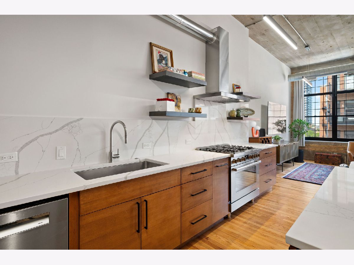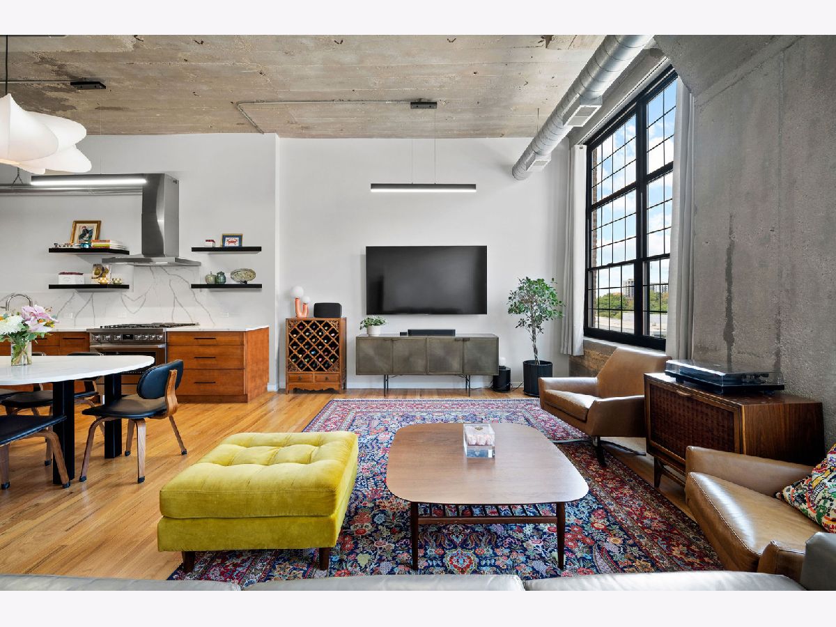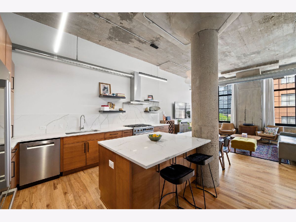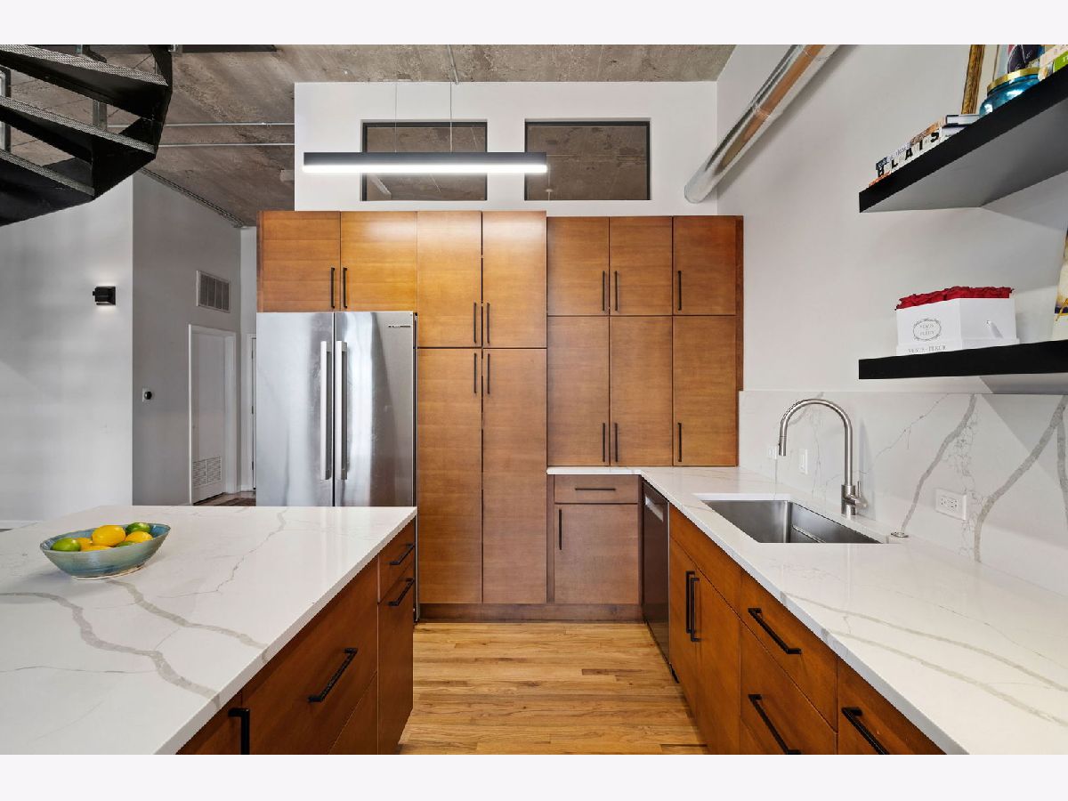 Welcome to Heartbreak Lofts in the West Loop. This modern 1,850 sq ft home features 3 bedrooms and 2.1 bathrooms with a chic and industrial aesthetic. Upon entry, you're greeted by soaring 13-foot ceilings and oversized north-facing windows that allow for exceptional natural light throughout. The recently renovated kitchen features stainless steel Bosch appliances, sleek Calcutta countertops, an oversized island, and custom dark wood cabinetry. The island is large for cooking and has table seating for 5. Head upstairs to find the expansive primary suite, which includes a walk-in closet, a renovated en-suite bathroom, and a private balcony-perfect for al fresco dining or enjoying the sunshine. The second bedroom is located back on the main level with a full bathroom and a closet, creating a comfortable and private setup for guests. The third bedroom is ideal for a home office or additional guest space. Heated garage parking for an additional cost. The building offers a shared rooftop deck with grills and east-facing skyline views. This location puts you just blocks from Skinner Park and Elementary School, public transit, and some of the city's best dining, shopping, and entertainment.