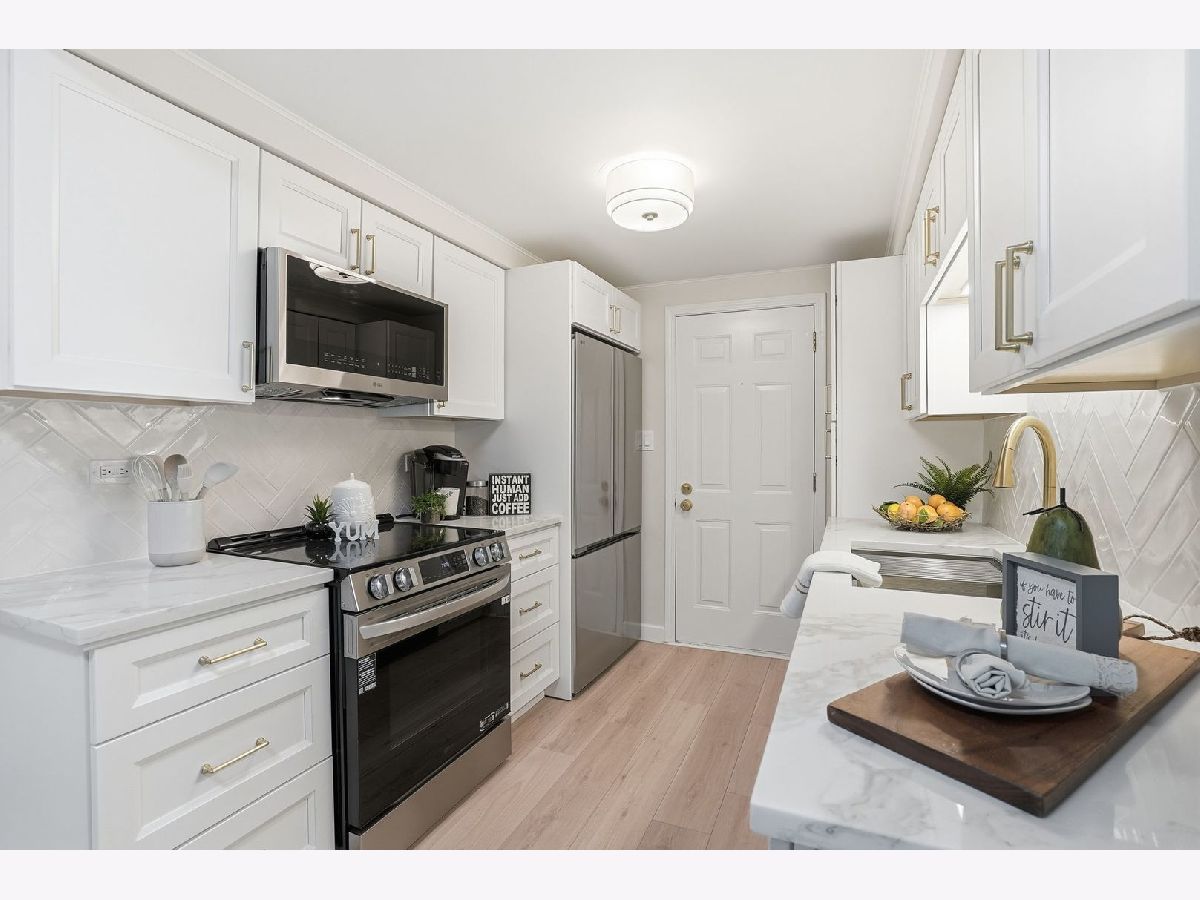 Perfect location to everything in downtown La Grange. Steps to Metra's BNSF line, a short few blocks to renown restaurants, boutique shopping, upgraded movie theater, and more! This first floor 2 bedroom, 2 bathroom unit has been completely updated, including brand new luxury vinyl plank flooring, new kitchen, including LG appliances, gorgeous built-ins at every turn. New electrical, new light fixtures, nearly new everything. Large 5x5 walk-in closet features even more built-ins. Living room offers easy access to the front patio. Primary bedroom features more built-ins in the large closet, wooden blinds with all new en suite bathroom with floating vanity, new light fixtures, new everything. Second bedroom features side-by-side closets. In-unit laundry and 2 parking spaces. Ogden Elementary, Park Jr. High, and Lyons Township HS - all top rated schools. So much to love! Taxes do not reflect homeowner exemption.