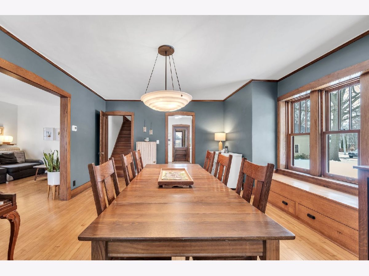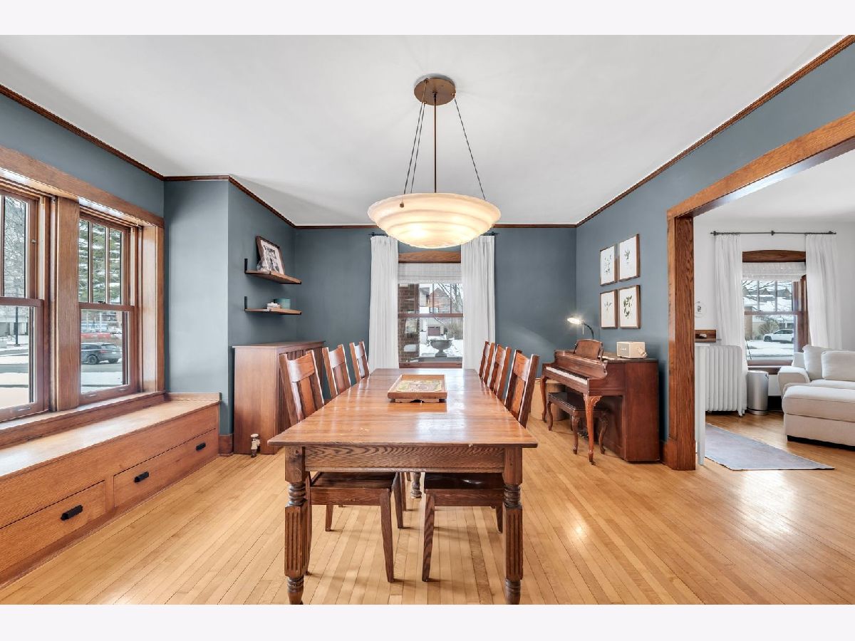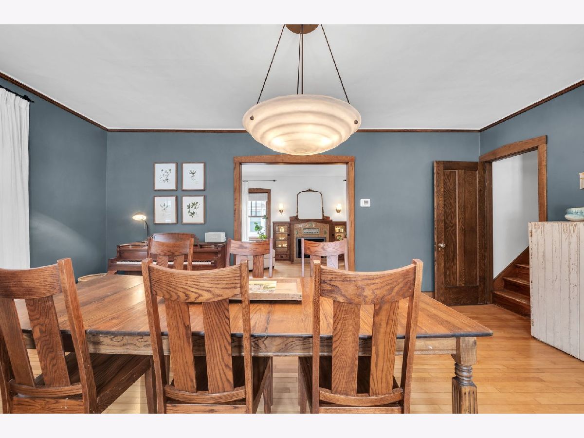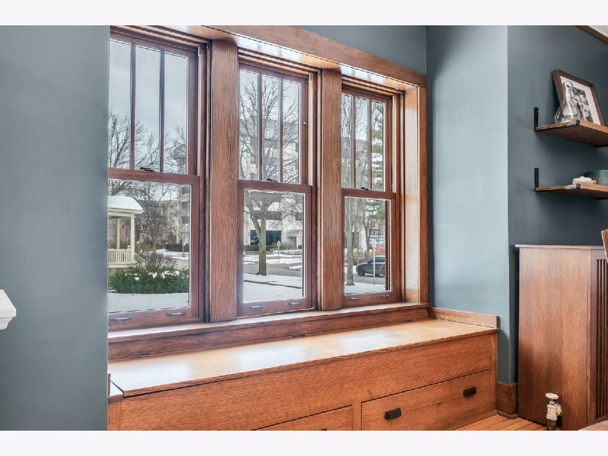 Homes of this caliber rarely come to market, especially one being publicly offered for the first time! Set on a historic block in downtown Mount Prospect's coveted Triangle district, this meticulously maintained 1923 full-brick Craftsman bungalow combines architectural integrity with meaningful modern upgrades and a truly walkable lifestyle. This 4-bedroom, 2-bath residence showcases original and refinished maple hardwood floors, plaster walls, period doors with vintage hardware, and beautifully preserved woodwork throughout. Spacious bedrooms, large closets including a walk-in, custom built-ins, and a lofted library create flexible living spaces that feel both timeless and functional. The main living area is anchored by a gas fireplace with custom cabinetry. A fully rebuilt front porch extends the living experience outdoors and overlooks the historic streetscape. The refreshed kitchen is complemented by a butler pantry, updated appliances, and a reverse osmosis drinking water system. Upstairs, the remodeled bath offers a Bain Ultra therapeutic soaking tub and separate shower, creating a spa-like retreat. Major capital improvements reflect long-term stewardship and confidence: architectural-shingle roof, premium double-pane custom Marvin wood windows, copper gutters, upgraded electrical panel, new insulation, and updated mechanical infrastructure. The approximately 1,400 square foot English walkout basement features brand-new windows, entry and screen door system and provides exceptional storage, recreation, or future finishing potential. Newer chest freezer, washer and dryer. Outdoor living is equally intentional with landscaped open yard areas, patio and garden beds, an electric fence system, and a dedicated hammock retreat. A brick 2+ car garage is complemented by a remodeled 200 square foot art studio or office space. Southwest exposure fills the home with natural light throughout the day. All of this is just steps from the Metra, library, parks, restaurants, farmers markets, and year-round downtown community events. Located within highly regarded District 57 and Prospect High School boundaries. Originally owned by one family and never before listed on the MLS, this is a rare opportunity to acquire a true legacy property in one of Mount Prospect's most desirable neighborhoods.
