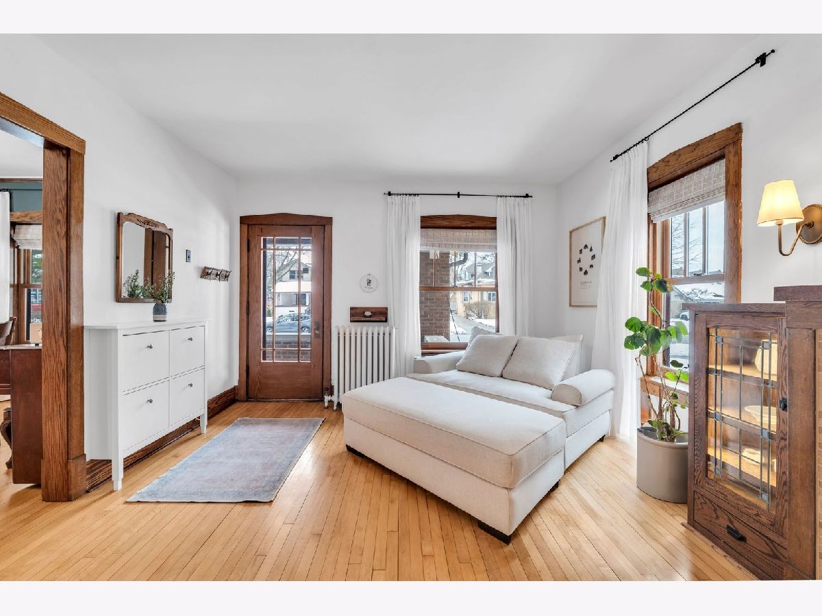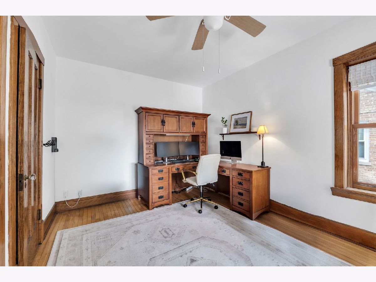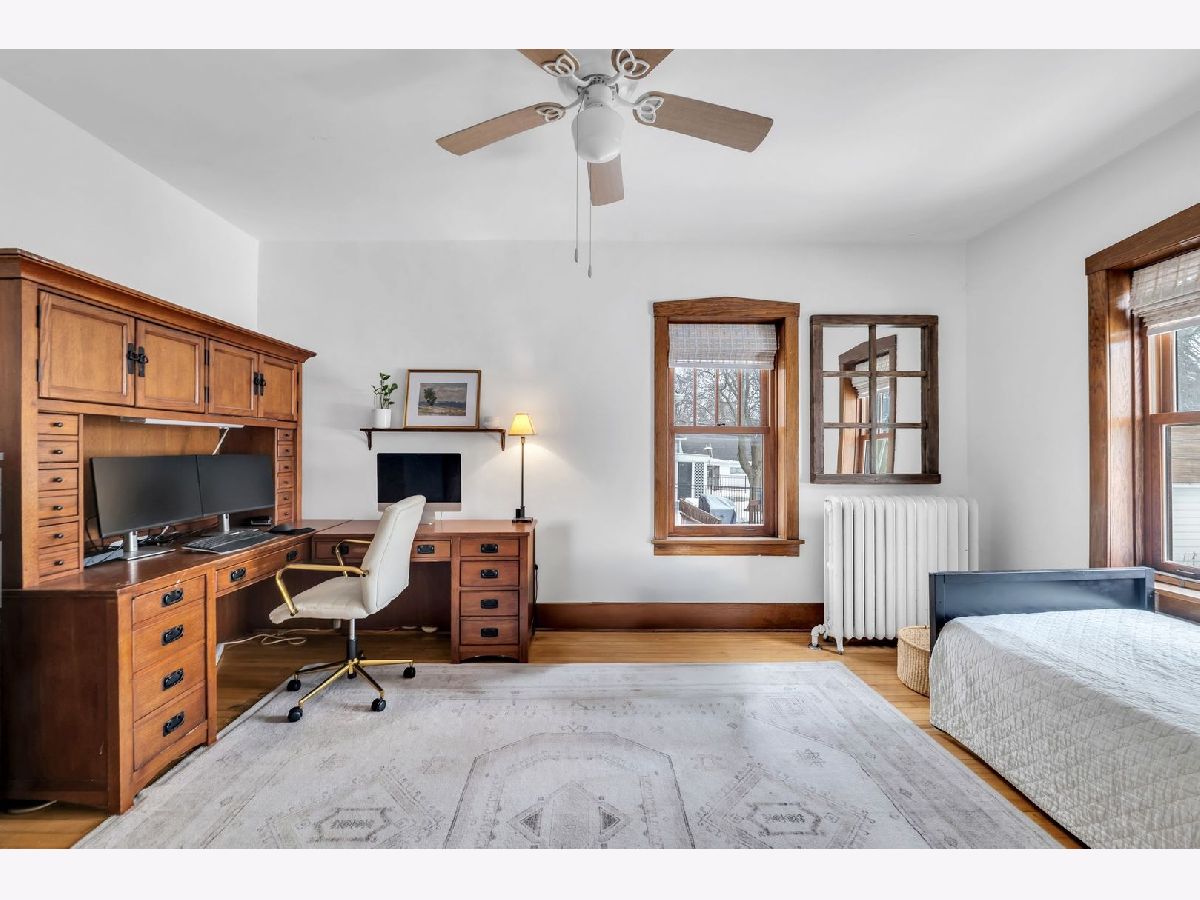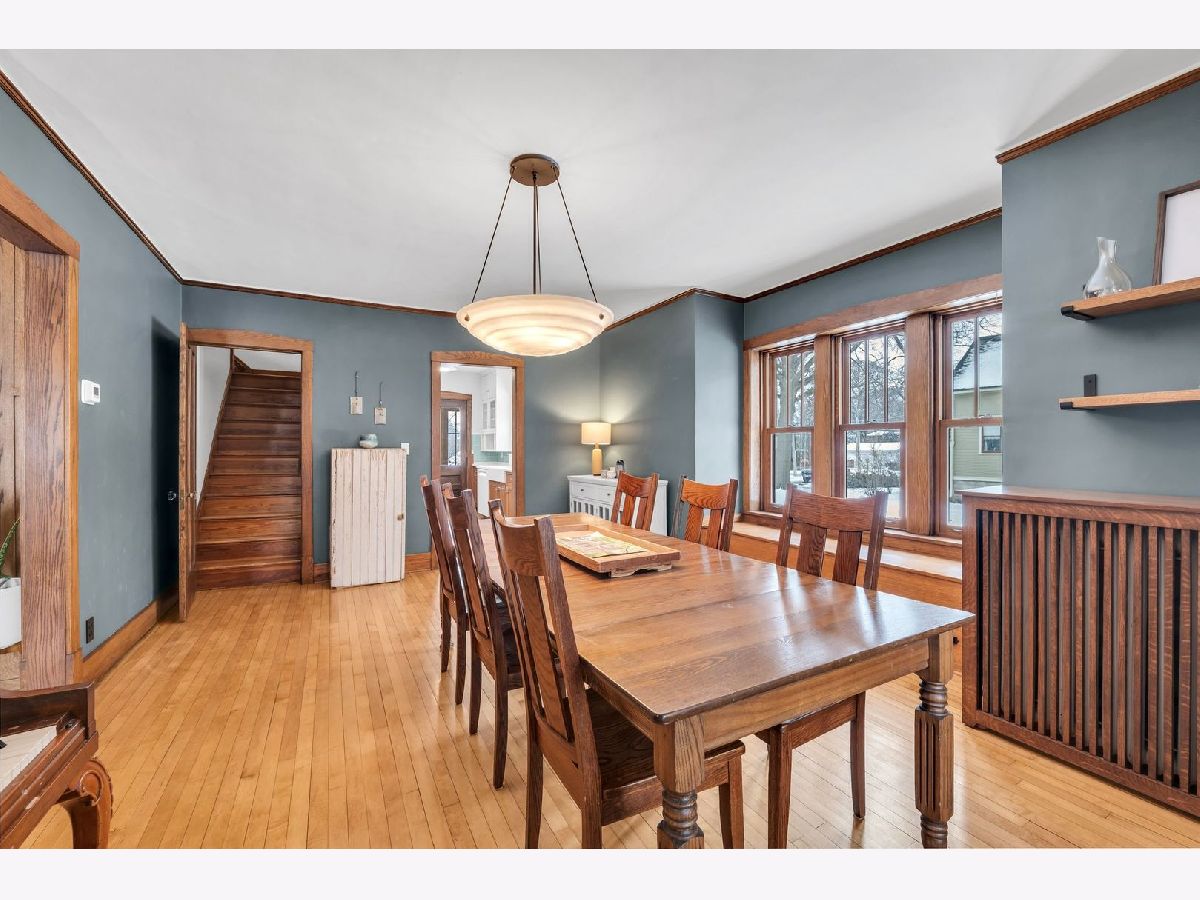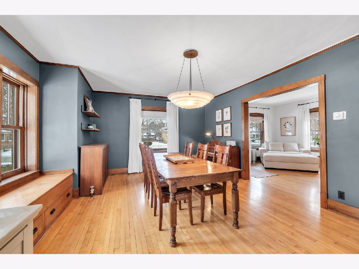 Homes of this caliber rarely come to market, especially one being publicly offered for the first time! Set on a historic block in downtown Mount Prospect's coveted Triangle district, this meticulously maintained 1923 full-brick Craftsman bungalow combines architectural integrity with meaningful modern upgrades and a truly walkable lifestyle. This 4-bedroom, 2-bath residence showcases original and refinished maple hardwood floors, plaster walls, period doors with vintage hardware, and beautifully preserved woodwork throughout. Spacious bedrooms, large closets including a walk-in, custom built-ins, and a lofted library create flexible living spaces that feel both timeless and functional. The main living area is anchored by a gas fireplace with custom cabinetry. A fully rebuilt front porch extends the living experience outdoors and overlooks the historic streetscape. The refreshed kitchen is complemented by a butler pantry, updated appliances, and a reverse osmosis drinking water system. Upstairs, the remodeled bath offers a Bain Ultra therapeutic soaking tub and separate shower, creating a spa-like retreat. Major capital improvements reflect long-term stewardship and confidence: architectural-shingle roof, premium double-pane custom Marvin wood windows, copper gutters, upgraded electrical panel, new insulation, and updated mechanical infrastructure. The approximately 1,400 square foot English walkout basement features brand-new windows, entry and screen door system and provides exceptional storage, recreation, or future finishing potential. Newer chest freezer, washer and dryer. Outdoor living is equally intentional with landscaped open yard areas, patio and garden beds, an electric fence system, and a dedicated hammock retreat. A brick 2+ car garage is complemented by a remodeled 200 square foot art studio or office space. Southwest exposure fills the home with natural light throughout the day. All of this is just steps from the Metra, library, parks, restaurants, farmers markets, and year-round downtown community events. Located within highly regarded District 57 and Prospect High School boundaries. Originally owned by one family and never before listed on the MLS, this is a rare opportunity to acquire a true legacy property in one of Mount Prospect's most desirable neighborhoods.