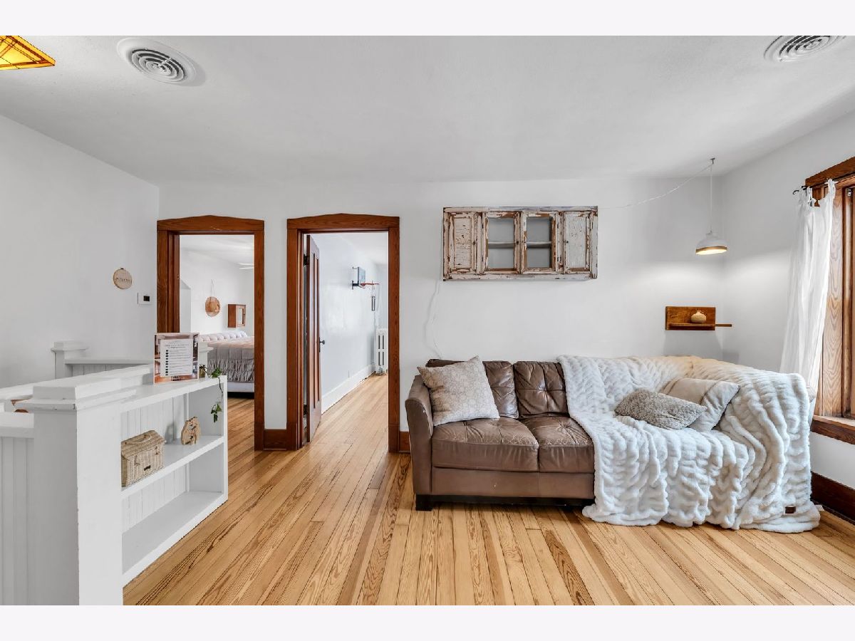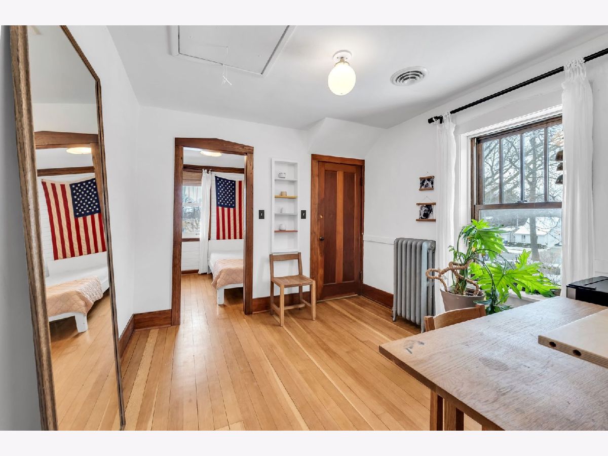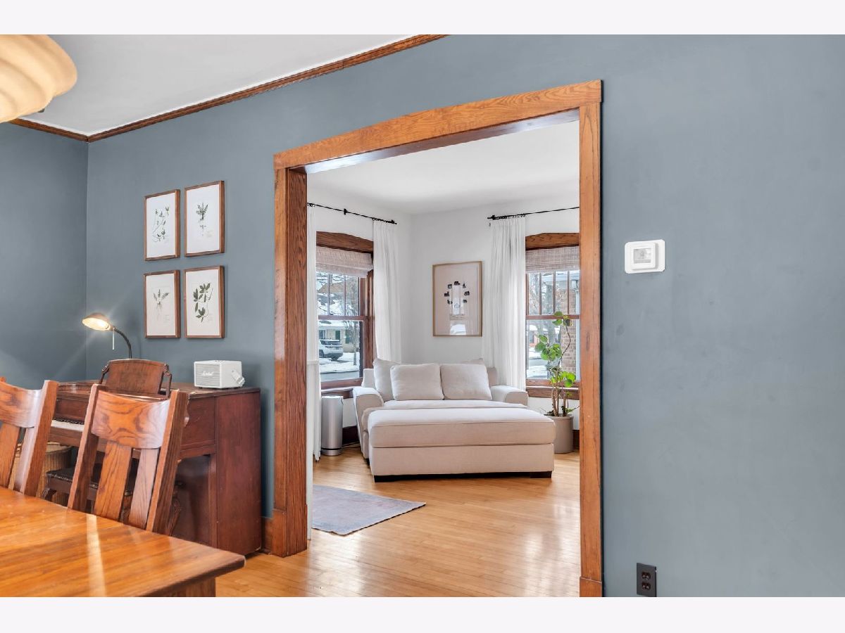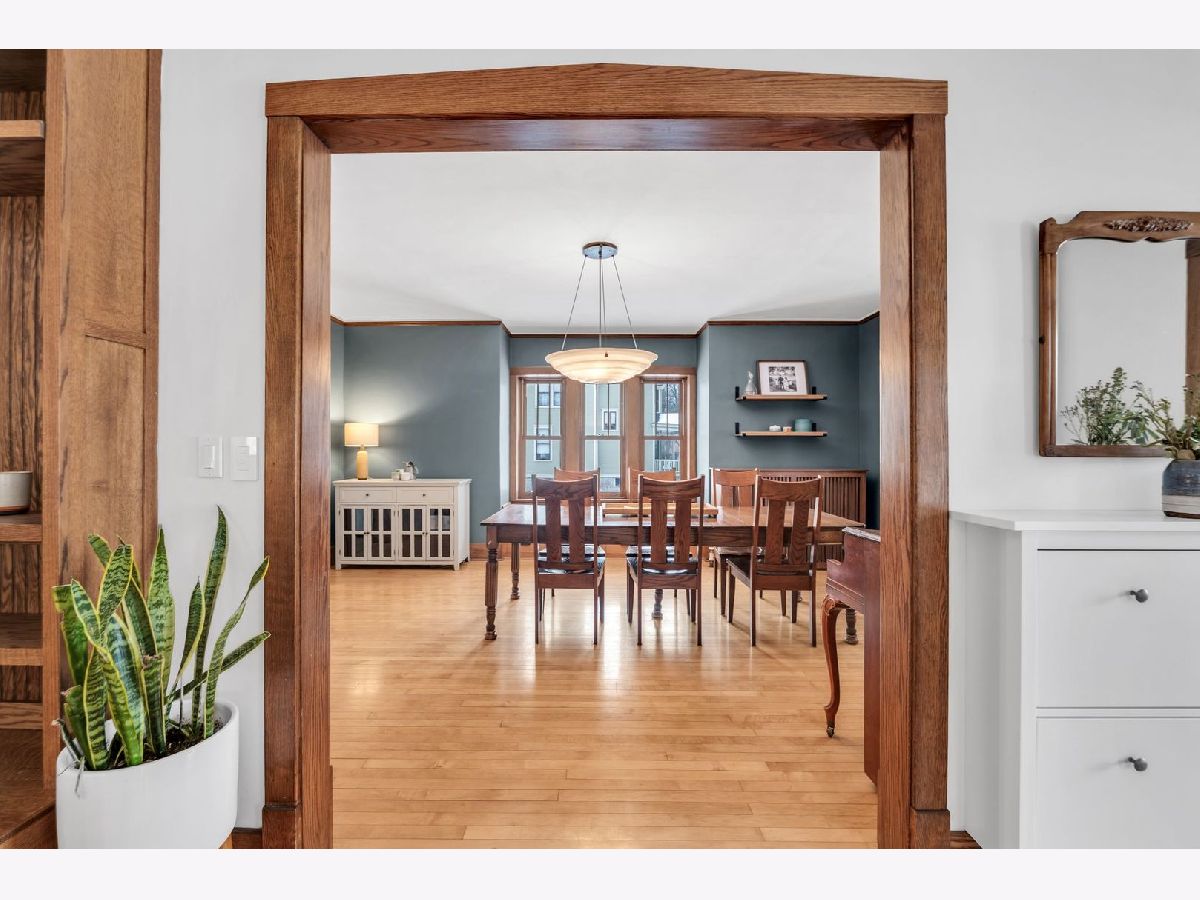 Homes of this caliber rarely come to market, especially one being publicly offered for the first time! Set on a historic block in downtown Mount Prospect's coveted Triangle district, this meticulously maintained 1923 full-brick Craftsman bungalow combines architectural integrity with meaningful modern upgrades and a truly walkable lifestyle. This 4-bedroom, 2-bath residence showcases original and refinished maple hardwood floors, plaster walls, period doors with vintage hardware, and beautifully preserved woodwork throughout. Spacious bedrooms, large closets including a walk-in, custom built-ins, and a lofted library create flexible living spaces that feel both timeless and functional. The main living area is anchored by a gas fireplace with custom cabinetry. A fully rebuilt front porch extends the living experience outdoors and overlooks the historic streetscape. The refreshed kitchen is complemented by a butler pantry, updated appliances, and a reverse osmosis drinking water system. Upstairs, the remodeled bath offers a Bain Ultra therapeutic soaking tub and separate shower, creating a spa-like retreat. Major capital improvements reflect long-term stewardship and confidence: architectural-shingle roof, premium double-pane custom Marvin wood windows, copper gutters, upgraded electrical panel, new insulation, and updated mechanical infrastructure. The approximately 1,400 square foot English walkout basement features brand-new windows, entry and screen door system and provides exceptional storage, recreation, or future finishing potential. Newer chest freezer, washer and dryer. Outdoor living is equally intentional with landscaped open yard areas, patio and garden beds, an electric fence system, and a dedicated hammock retreat. A brick 2+ car garage is complemented by a remodeled 200 square foot art studio or office space. Southwest exposure fills the home with natural light throughout the day. All of this is just steps from the Metra, library, parks, restaurants, farmers markets, and year-round downtown community events. Located within highly regarded District 57 and Prospect High School boundaries. Originally owned by one family and never before listed on the MLS, this is a rare opportunity to acquire a true legacy property in one of Mount Prospect's most desirable neighborhoods.