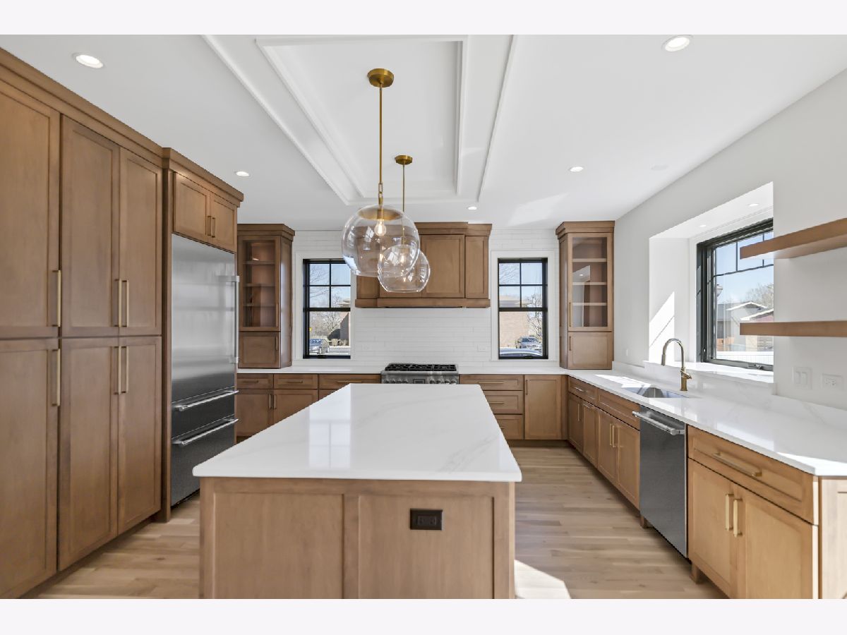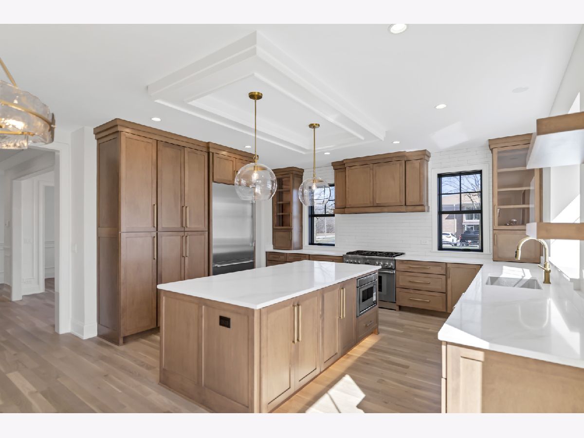 This is the one! New construction Berens Park subdivision Featuring 4 + bedrooms each bedroom has private bath, fully finished lower level, bedroom, full bath, wet bar. 9ft 1st & 2nd floor, 9ft basement ceilings, 8 ft doors throughout. private office main level, gourmet kitchen showcases custom maple cabinetry, quartz countertops, and top-of-the-line Thermador appliances. Beautiful white oak flooring runs throughout the first floor and continues through the upstairs hallway, complemented by a custom-built white oak staircase The luxurious Master suite features a spa-like bathroom and an incredible walk-in closet. Marvin windows, designer lighting fixtures. Additional highlights include a 3-car side-load garage with an epoxy-coated floor, fully fenced yard, professionally landscaped grounds, oversized paver patio, gas lines to both the garage and patio. Walking distance to train This home truly has it all