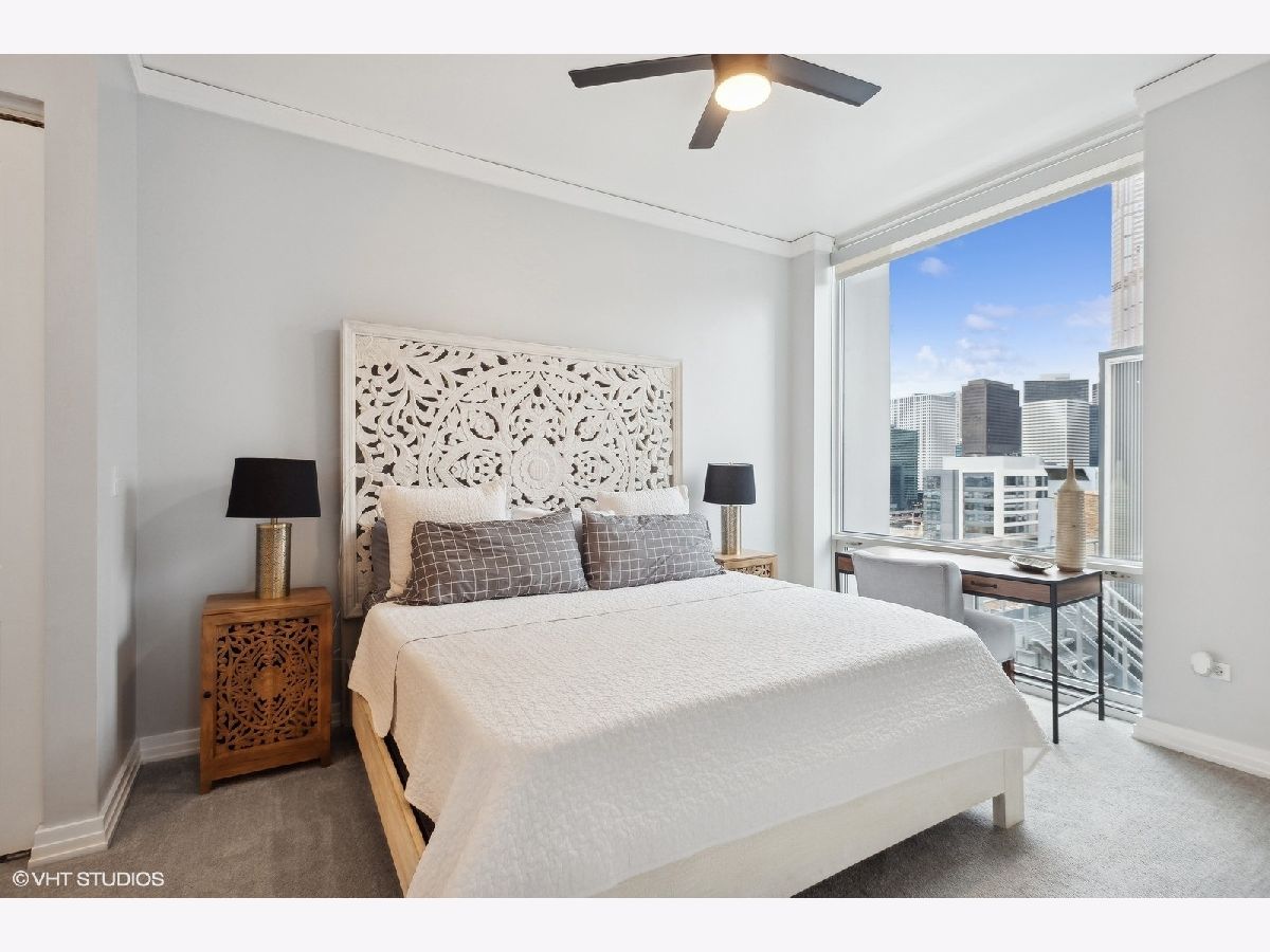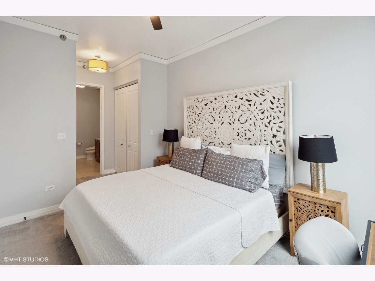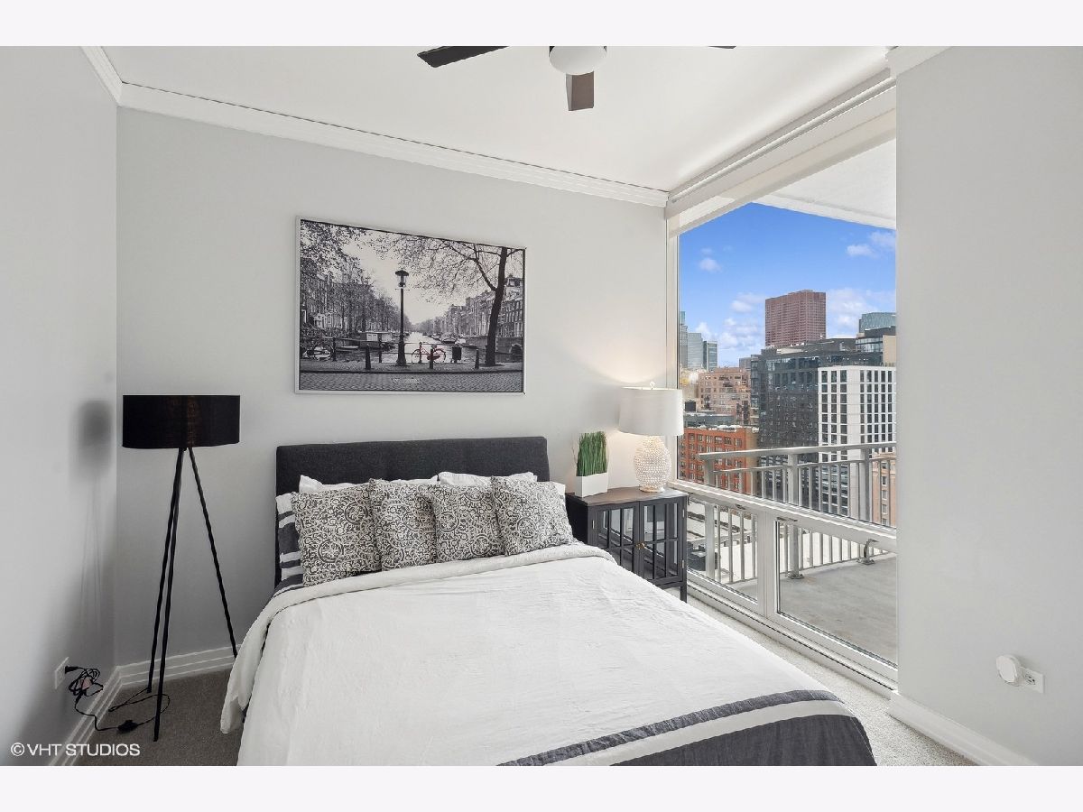 Welcome to Printer's Corner! This modern, mid-rise building is located in the exclusive far corner block of Chicago's coveted Printers Row neighborhood. Unit itself faces the NE corner of the building, making it one of the top 5 most desirable units in the building. The floor to ceiling window views overlook the unimpaired cityscape. Family room boasts 11ft. floor to ceiling windows, recently refinished hardwood flooring and access to your own private outdoor patio space. The entire condo has been repainted including all walls, ceilings, doors, and trim work. Kitchen features a breakfast bar w/seating, granite countertops, stainless steel appliances, new top grade Samsung refrigerator w/Bluetooth compatibility. Brand new light fixtures, recently painted cabinets w/brand new hardware, new garbage disposal and additional shelving for extra and ample kitchen storage. The oversized primary bedroom features a beautiful view of the Sears Tower. Walk your way through two sets of custom closets on either side (featuring high end built-ins) that lead you into the master bath. Features include ceramic tile, granite countertops, double sinks, ample vanity space, towel closet and whirlpool tub. Spacious second bedroom has a large closet for additional storage. Also features the floor to ceiling window allowing you and/or your guests to enjoy the city views from every room. An additional Storage unit (half cage) is also provided to each owner This location is a close-knit neighborhood where most people know each other, adding an extra layer of safety within just a few blocks. Excellent area if you own or are thinking of owning a dog. At least 4 bigger & smaller dog parks within walking distance of the building in every direction. All are kept meticulously, well maintained. This prime location allows you to walk across the street for easy access to Chicago's Riverwalk. The building has easy access to 55/90/94/290 expressways, Lake Shore Dr and Lower Wacker. Easy walk to the Blueline and Redline, Soldier Field, Museum Campus, Shedd Aquarium, Grant Park, Millennium Park, S. Michigan Ave. Down the street is the Roosevelt Collection which includes a movie theater, Target, H&M, Ulta, Old Navy, The Container Store, Victoria's Secret and more. Also located to block from the highly desirable British International School. Parking Spot (deeded separately) is an additional 30k (not included in listing price) but must be sold with unit. Ultra-private spot in a secure garage
