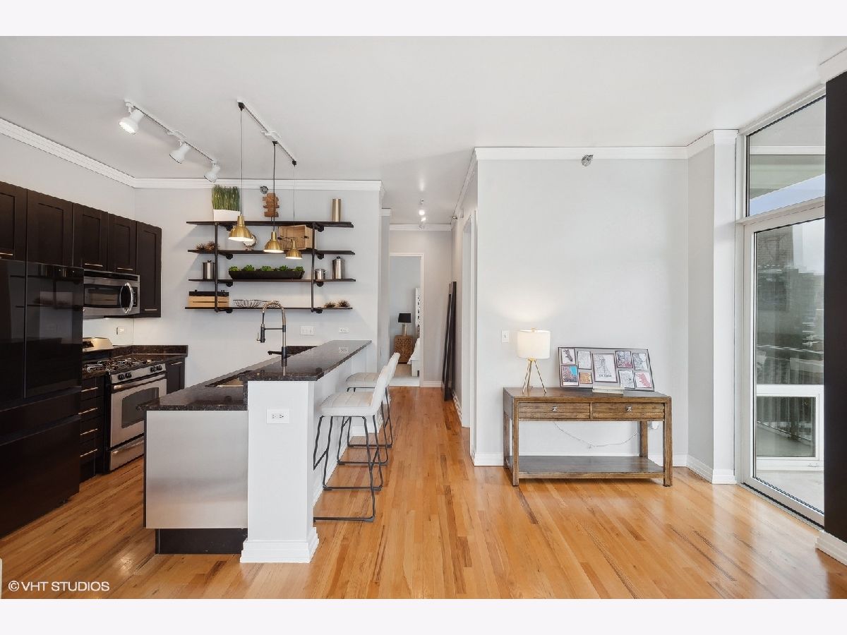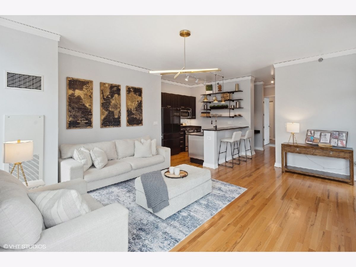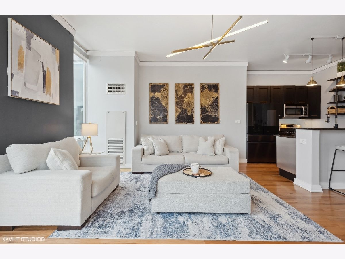 Welcome to Printer's Corner! This modern, mid-rise building is located in the exclusive far corner block of Chicago's coveted Printers Row neighborhood. Unit itself faces the NE corner of the building, making it one of the top 5 most desirable units in the building. The floor to ceiling window views overlook the unimpaired cityscape. Family room boasts 11ft. floor to ceiling windows, recently refinished hardwood flooring and access to your own private outdoor patio space. The entire condo has been repainted including all walls, ceilings, doors, and trim work. Kitchen features a breakfast bar w/seating, granite countertops, stainless steel appliances, new top grade Samsung refrigerator w/Bluetooth compatibility. Brand new light fixtures, recently painted cabinets w/brand new hardware, new garbage disposal and additional shelving for extra and ample kitchen storage. The oversized primary bedroom features a beautiful view of the Sears Tower. Walk your way through two sets of custom closets on either side (featuring high end built-ins) that lead you into the master bath. Features include ceramic tile, granite countertops, double sinks, ample vanity space, towel closet and whirlpool tub. Spacious second bedroom has a large closet for additional storage. Also features the floor to ceiling window allowing you and/or your guests to enjoy the city views from every room. An additional Storage unit (half cage) is also provided to each owner This location is a close-knit neighborhood where most people know each other, adding an extra layer of safety within just a few blocks. Excellent area if you own or are thinking of owning a dog. At least 4 bigger & smaller dog parks within walking distance of the building in every direction. All are kept meticulously, well maintained. This prime location allows you to walk across the street for easy access to Chicago's Riverwalk. The building has easy access to 55/90/94/290 expressways, Lake Shore Dr and Lower Wacker. Easy walk to the Blueline and Redline, Soldier Field, Museum Campus, Shedd Aquarium, Grant Park, Millennium Park, S. Michigan Ave. Down the street is the Roosevelt Collection which includes a movie theater, Target, H&M, Ulta, Old Navy, The Container Store, Victoria's Secret and more. Also located to block from the highly desirable British International School. Parking Spot (deeded separately) is an additional 30k (not included in listing price) but must be sold with unit. Ultra-private spot in a secure garage