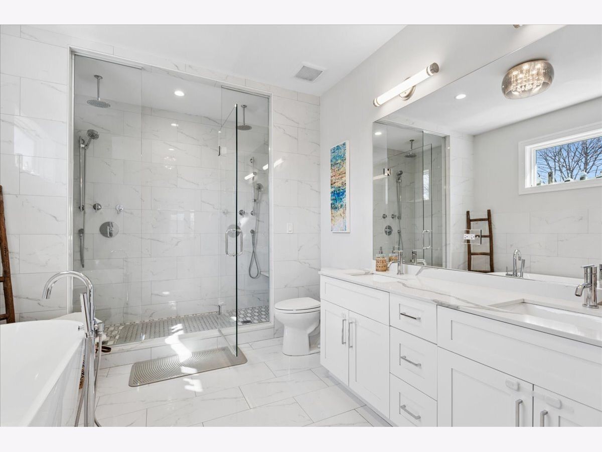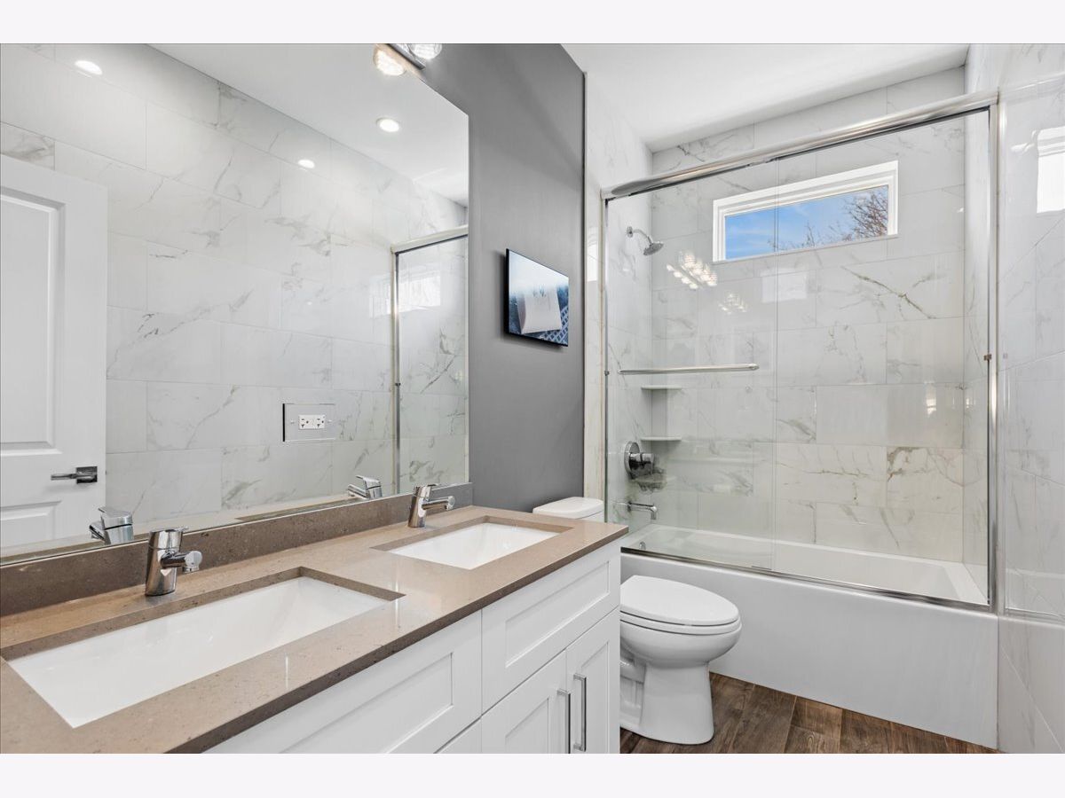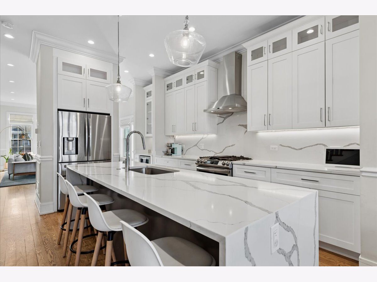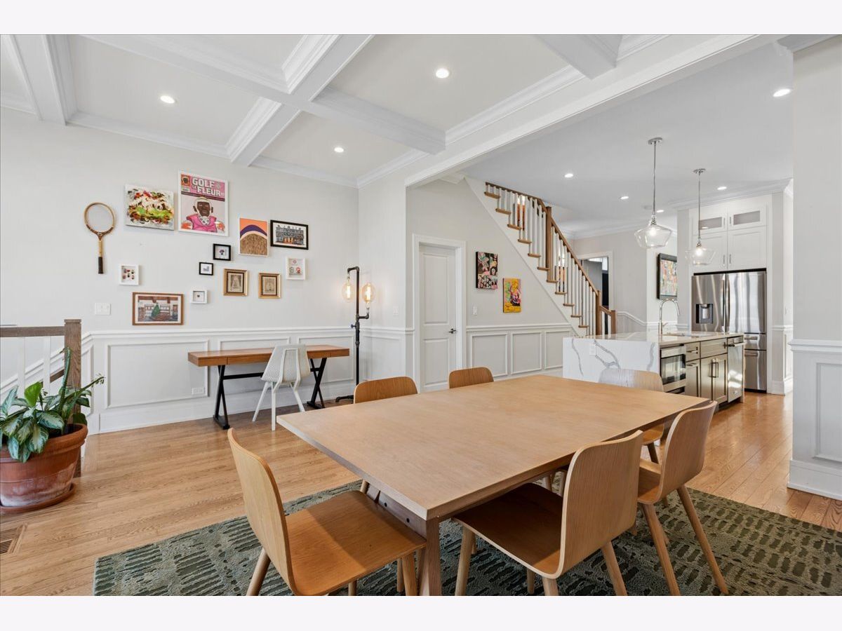 Beautifully constructed 5 bedroom / 3.1 bathroom home on a gorgeous tree-lined street in Humboldt Park/Logan Square, just blocks from the 606 Trail. This sun-filled home features hardwood floors throughout, soaring ceilings, crown molding, custom millwork, coffered ceilings in the dining room/family room, and wainscoting across the main level. The living room offers a wood-burning fireplace, has enough space for a dining room table and flows seamlessly into a butler's pantry. The gourmet kitchen is equipped with custom cabinetry, high-end stainless steel appliances, an oversized island with quartz countertops, and an additional enclosed pantry under the staircase. Just off the kitchen is a versatile flex space that can function as either a dining room or family room, with views of the beautifully landscaped yard. Upstairs, the spacious primary suite includes professionally organized closets and a spa-quality natural stone bath with a double shower, heated floors, freestanding tub, and double vanity. Two additional generously sized bedrooms and an additional full bath complete the second level. The lower level features radiant heated floors, a large rec room with a built-in wet bar, two additional, spacious bedrooms, a full bath and laundry room. A+ location close to the 606 Trail, both Mozart & Beilfuss Parks, Healy Metra stop, parks, shopping and all the restaurants, cafes & nightlife that Logan Square & Humboldt Park has to offer!