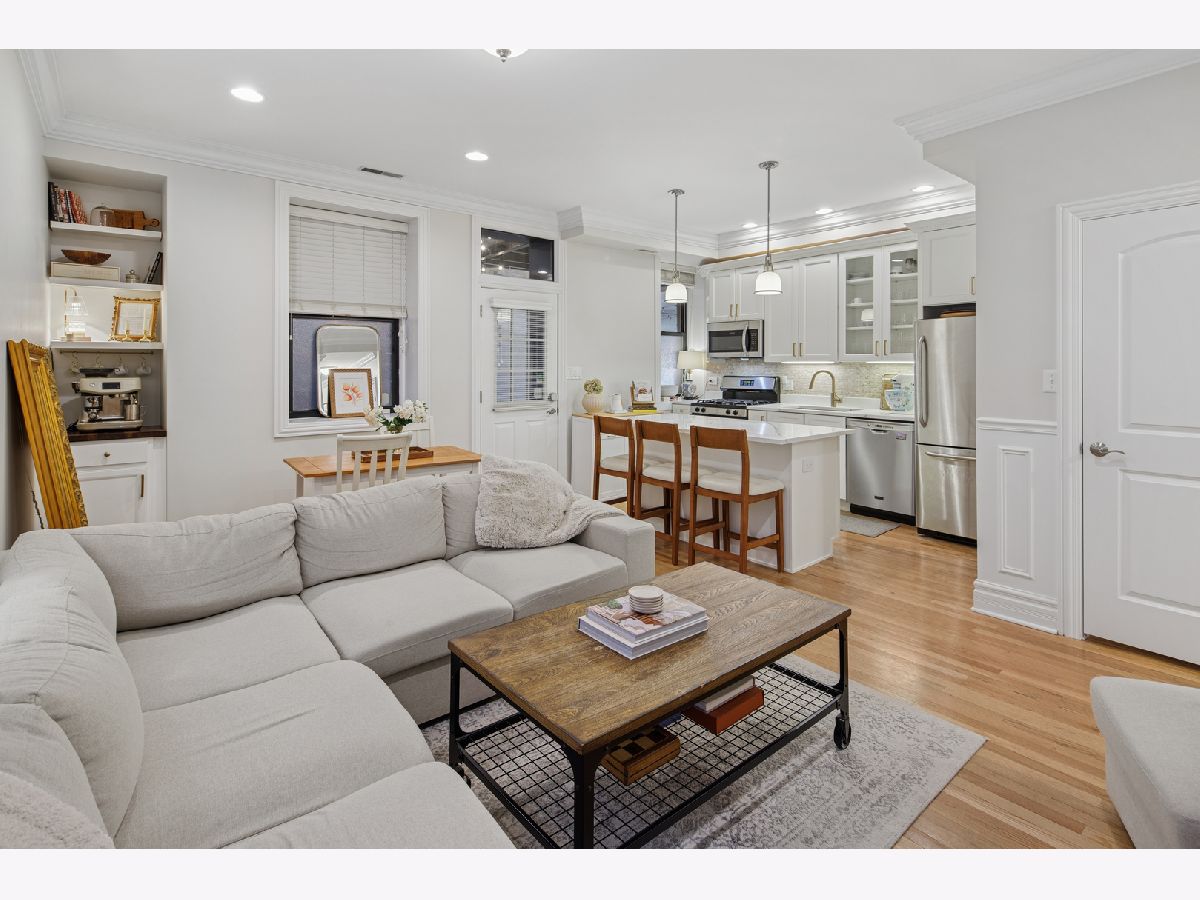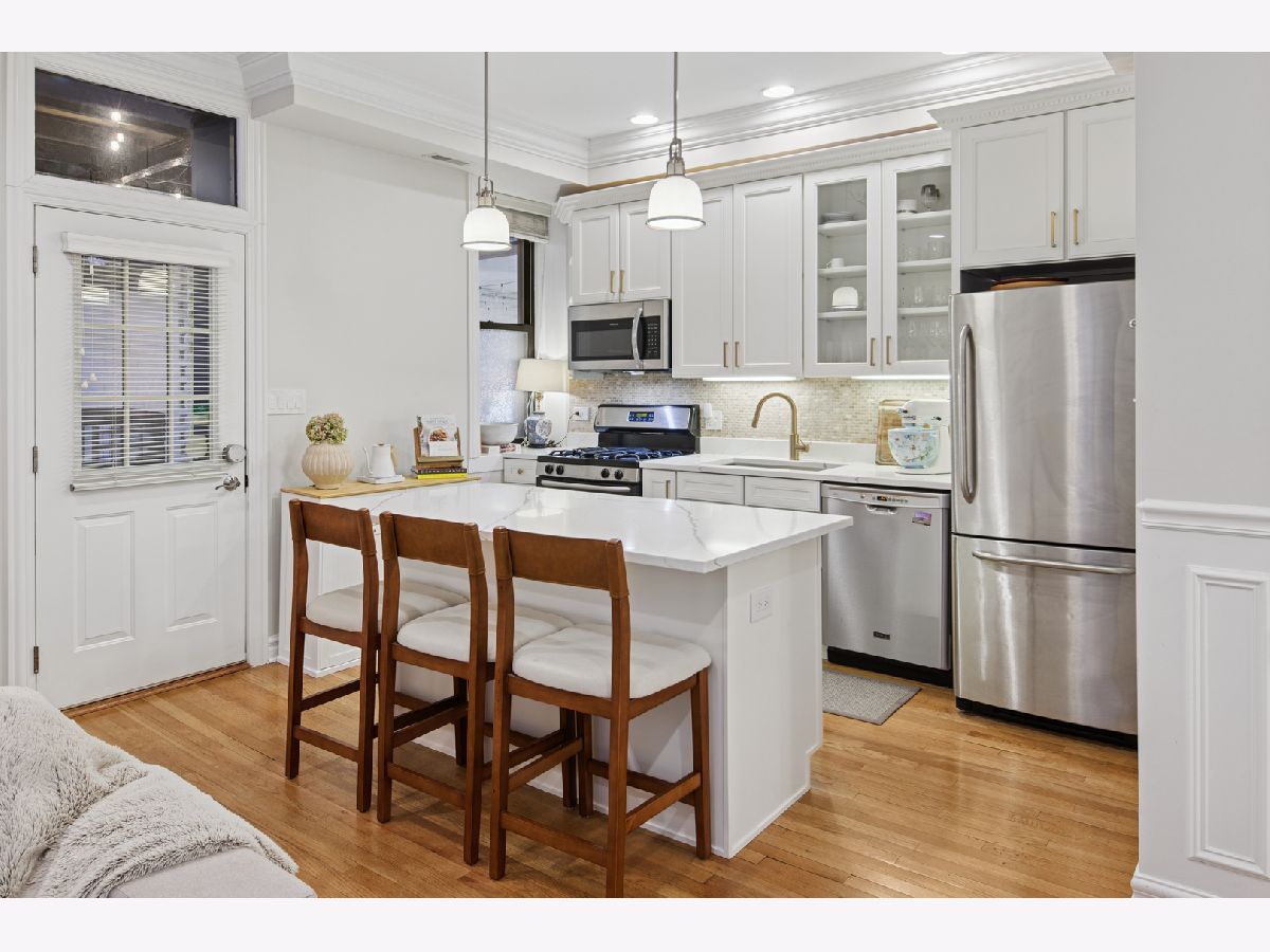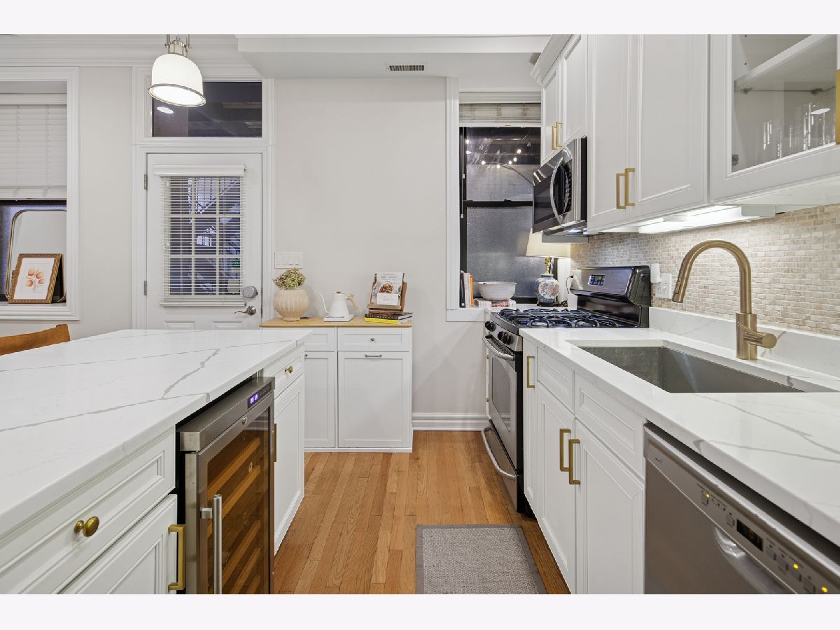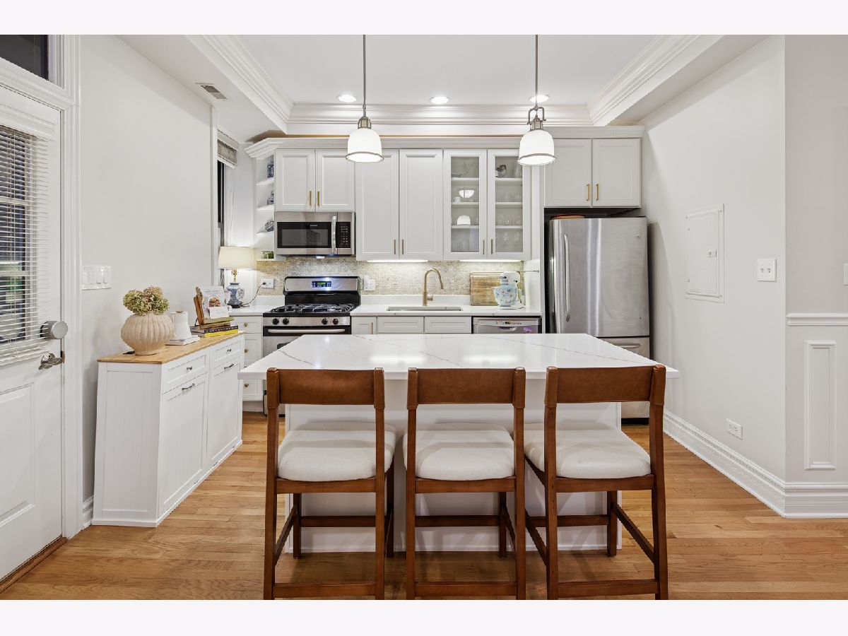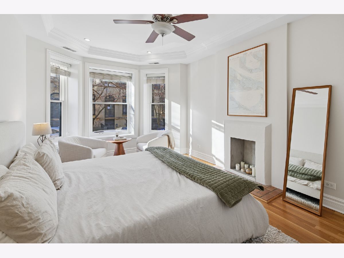 Classic Old Town character meets thoughtful, high-end updates in this beautifully maintained 3-bedroom, 2-bath home. Recently refreshed from top to bottom, the residence features hardwood floors throughout, rich architectural details, and an inviting layout designed for everyday living and entertaining. The kitchen anchors the home with crisp white cabinetry, quartz countertops, stainless steel appliances, a wine fridge, and newly built-out pantry shelving that maximizes storage and functionality. Just off the kitchen, a custom built-in coffee bar adds both style and convenience, creating a perfect morning routine. The open living and dining area flows seamlessly to a private outdoor deck with space for grilling and gathering. The spacious primary bedroom offers charming bay windows, a decorative fireplace, and a newly remodeled ensuite bathroom with modern finishes and a dual-sink vanity. Two additional bedrooms are well-proportioned and flexible for guests, work-from-home, or fitness space. Both bathrooms have been fully renovated, and all four front-facing windows have been recently replaced, enhancing comfort, efficiency, and curb appeal. Additional highlights include in-unit laundry, abundant storage, and a move-in-ready condition. Situated in the heart of Old Town, just moments from dining, nightlife, shops, the lakefront, and public transit, with easy permitted street parking or nearby rental options available.