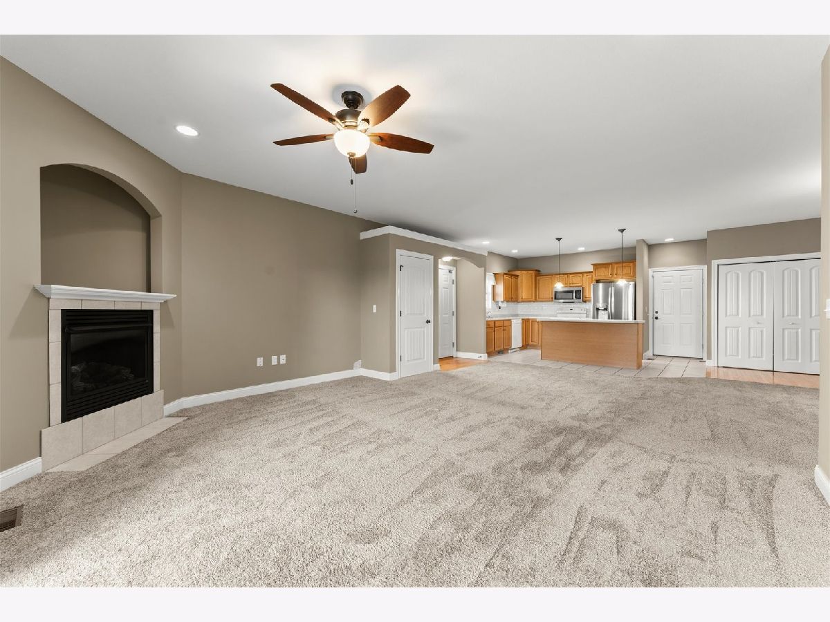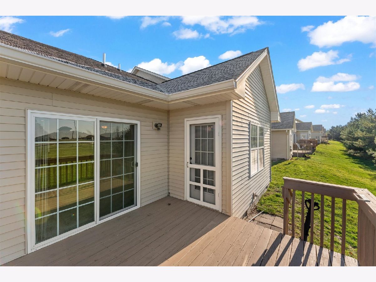 This move-in ready 2 bedroom, 2 bathroom one-story condo in Hunter's Ridge offers a bright, open floor plan. The inviting living room features a cozy gas fireplace and flows seamlessly into the kitchen, complete with a center island and seating space-perfect for everyday living or entertaining. The primary bedroom includes a private ensuite with double sinks and a walk-in closet. The spacious second bedroom, full bathroom, and convenient laundry area round out the interior. Enjoy outdoor relaxation on the back deck, plus the added benefit of an attached 2-car garage. Ideally located near the public library with easy access to Champaign and one block from coffee shops, restaurants, shopping, fitness center and more, this home combines convenience and low-maintenance living.