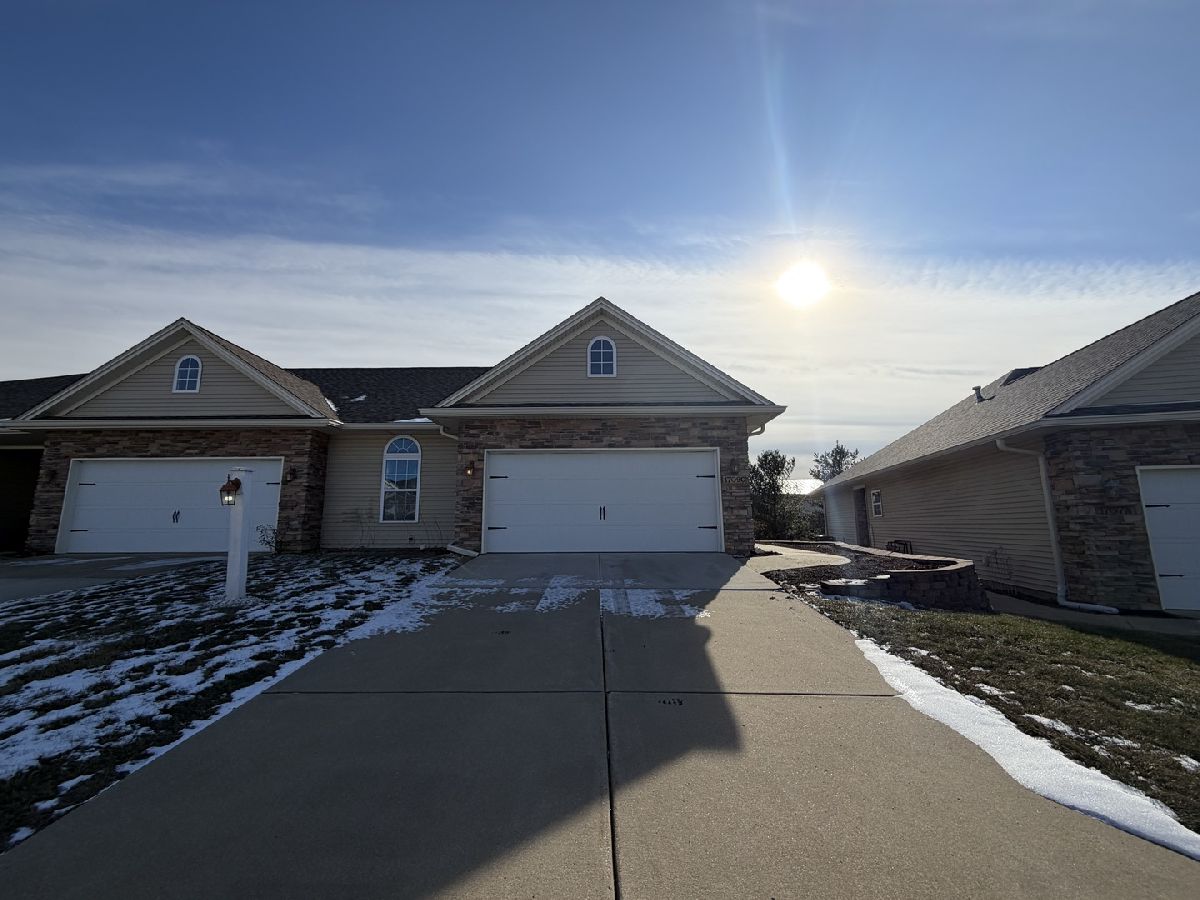 Enjoy low-maintenance living in this beautiful 2-bedroom, 2-bath condo in Mahomet's Hunters Ridge subdivision! A huge open-concept living and kitchen area with soaring ceilings creates an airy, welcoming feel - perfect for everyday living and entertaining. The kitchen features rich cherry cabinetry and durable ceramic tile flooring, while the living room is anchored by a cozy fireplace with a built-in entertainment nook. The spacious primary suite offers a large walk-in closet and a luxurious private bath with double vanities and a walk-in shower. Head outside to your private deck - ideal for relaxing or enjoying morning coffee. Lawn care and snow removal are included - making this an easy, carefree place to call home! Schedule your private showing today!