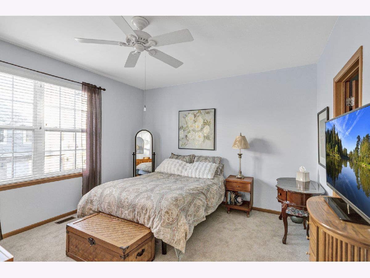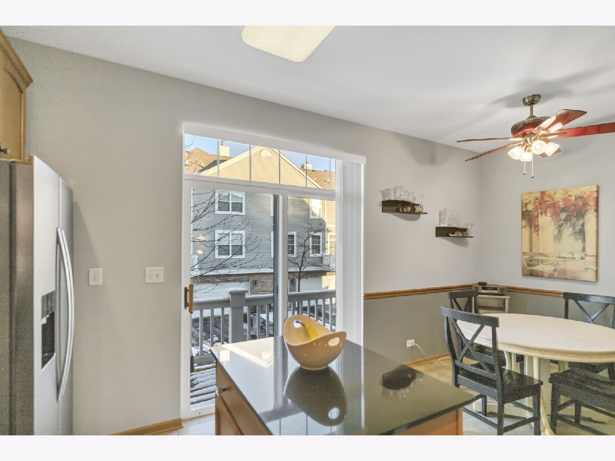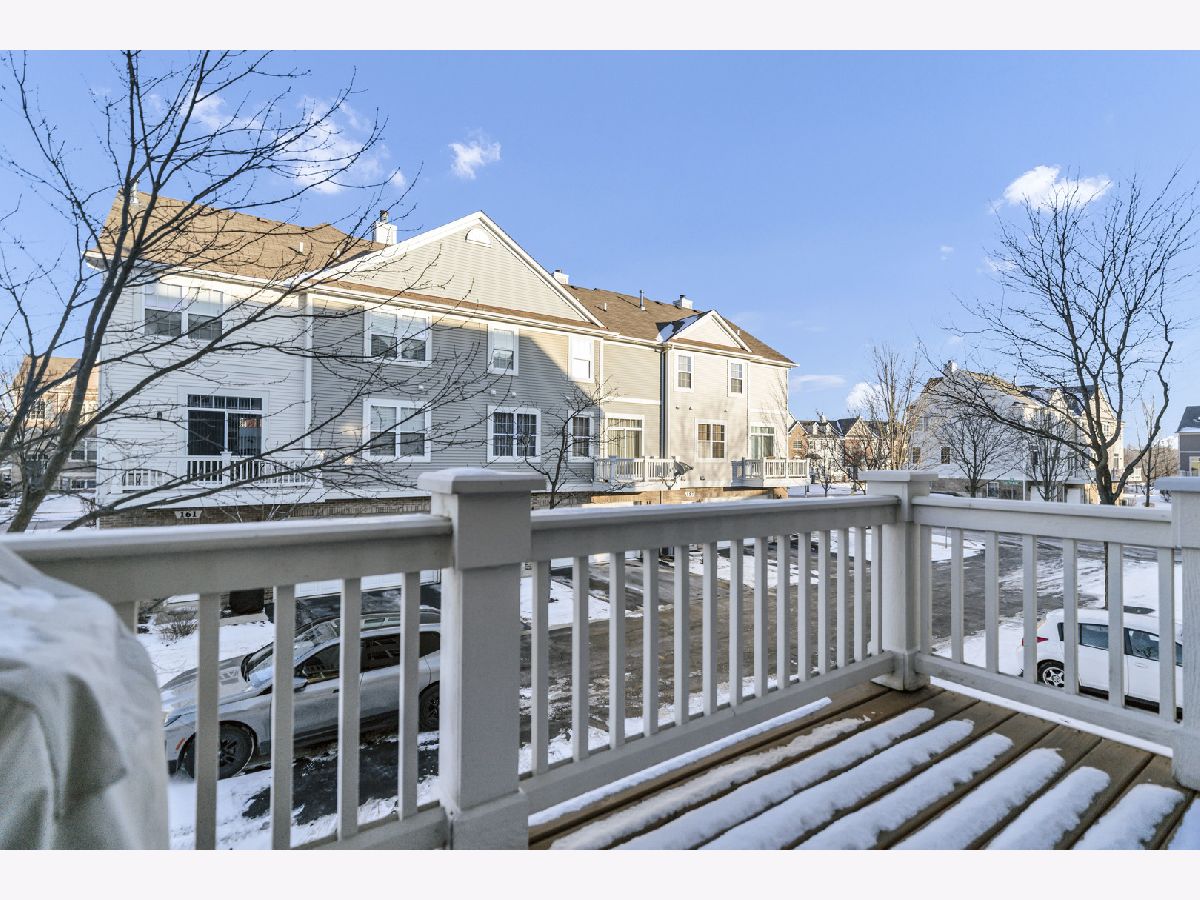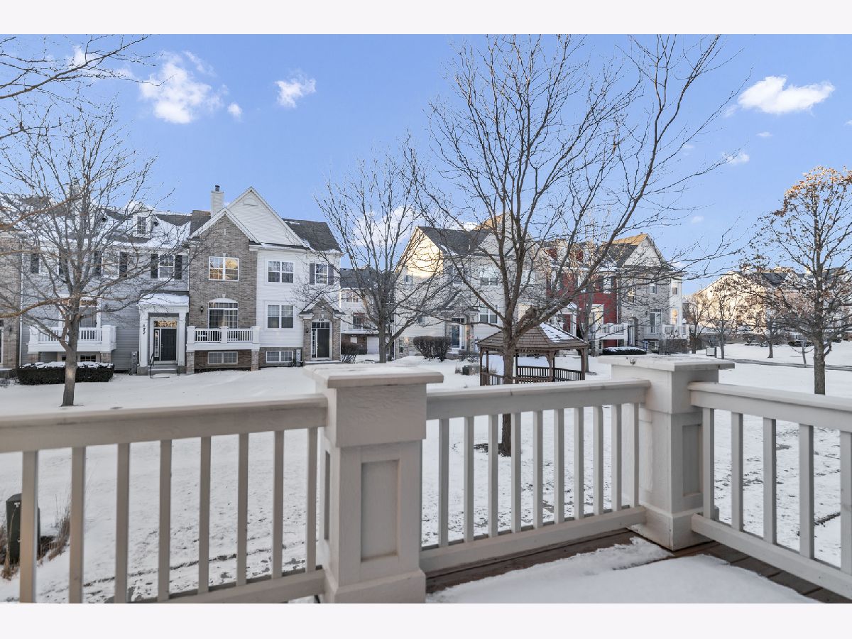 Well maintained 3 story end unit townhome in sought after Fountains at Town Center in Carol Stream. This home with freshly painted main living areas features a spacious living room with 9 foot cathedral ceilings, abundant natural light, a Limestone gas fireplace, and a slider to a balcony. The formal dining area is great for entertaining. The kitchen boasts 42 inch Maple cabinetry with crown molding, NEW Whirlpool stainless steel appliances; including stove, refrigerator, microwave, and dishwasher, tile backsplash, granite countertops, and an eat-in area with a sliding door to a second balcony with gas outlet for grill. There is also a convenient main level powder room for guests. Rare main level primary bedroom includes a walk in closet, new carpet, and en-suite with double sinks. Upstairs offers an additional primary bedroom with walk-in closet, two additional bedrooms, a full bath, and a laundry area with extra storage cabinets. The finished basement provides additional living space with a family room, making this home perfect for entertaining. Enjoy your morning coffee on one of two balconies-one overlooking a beautifully landscaped outdoor space. Situated in a prime location near shopping, dining, parks, and major highways for everyday convenience and easy living. This home truly has it all.