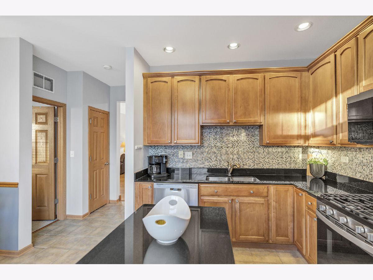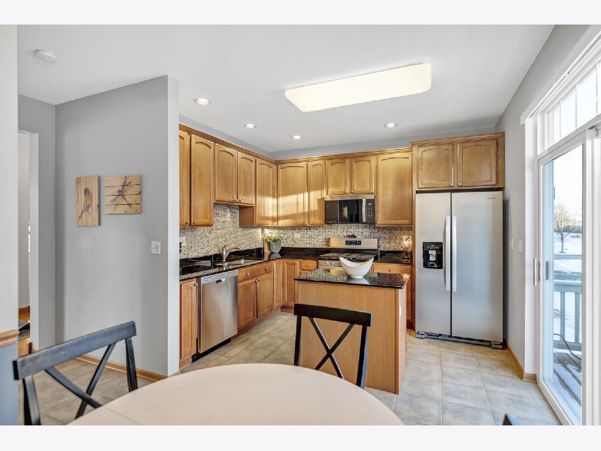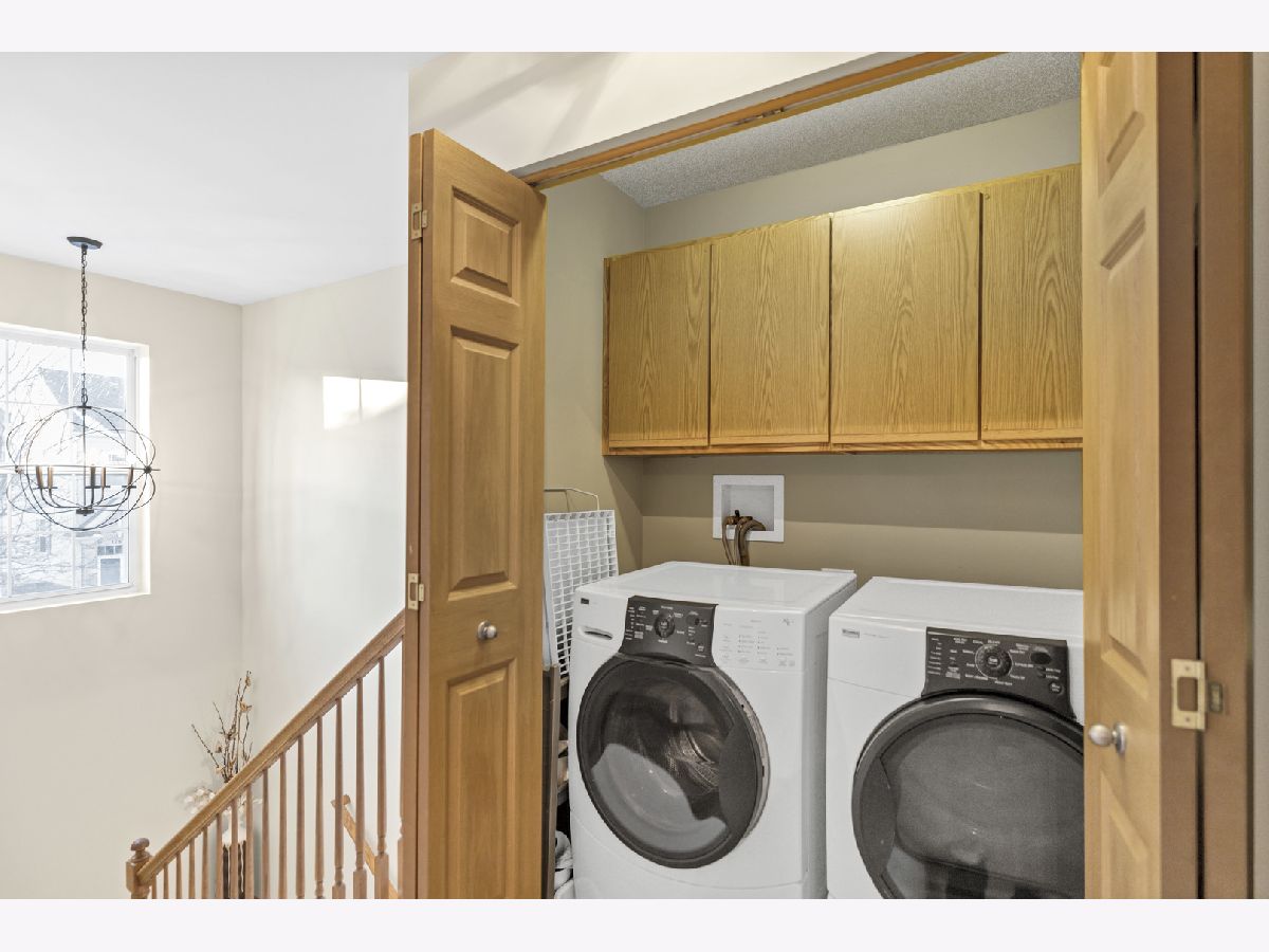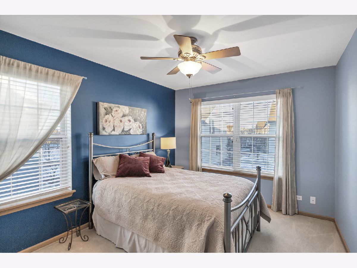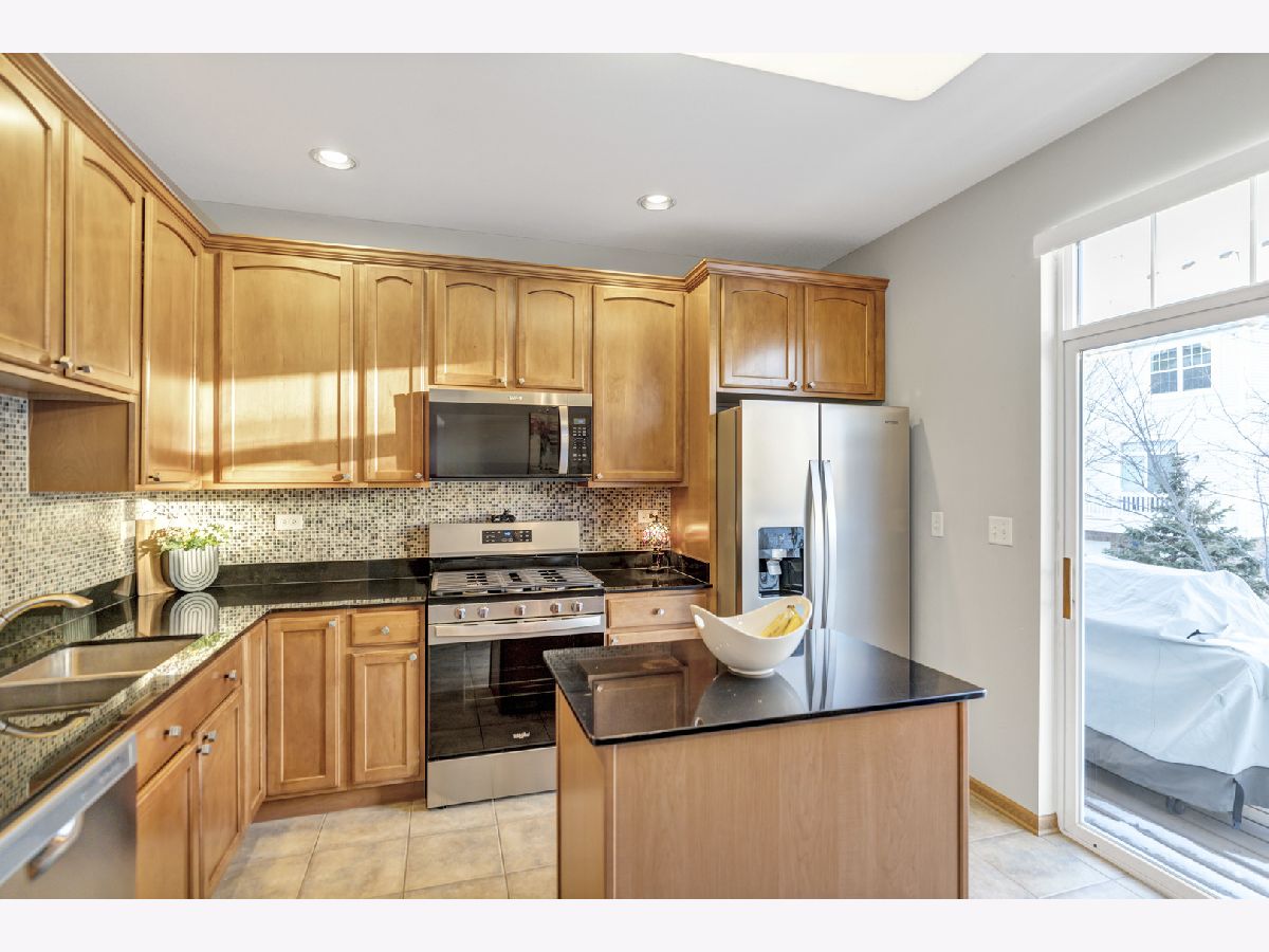 Well maintained 3 story end unit townhome in sought after Fountains at Town Center in Carol Stream. This home with freshly painted main living areas features a spacious living room with 9 foot cathedral ceilings, abundant natural light, a Limestone gas fireplace, and a slider to a balcony. The formal dining area is great for entertaining. The kitchen boasts 42 inch Maple cabinetry with crown molding, NEW Whirlpool stainless steel appliances; including stove, refrigerator, microwave, and dishwasher, tile backsplash, granite countertops, and an eat-in area with a sliding door to a second balcony with gas outlet for grill. There is also a convenient main level powder room for guests. Rare main level primary bedroom includes a walk in closet, new carpet, and en-suite with double sinks. Upstairs offers an additional primary bedroom with walk-in closet, two additional bedrooms, a full bath, and a laundry area with extra storage cabinets. The finished basement provides additional living space with a family room, making this home perfect for entertaining. Enjoy your morning coffee on one of two balconies-one overlooking a beautifully landscaped outdoor space. Situated in a prime location near shopping, dining, parks, and major highways for everyday convenience and easy living. This home truly has it all.