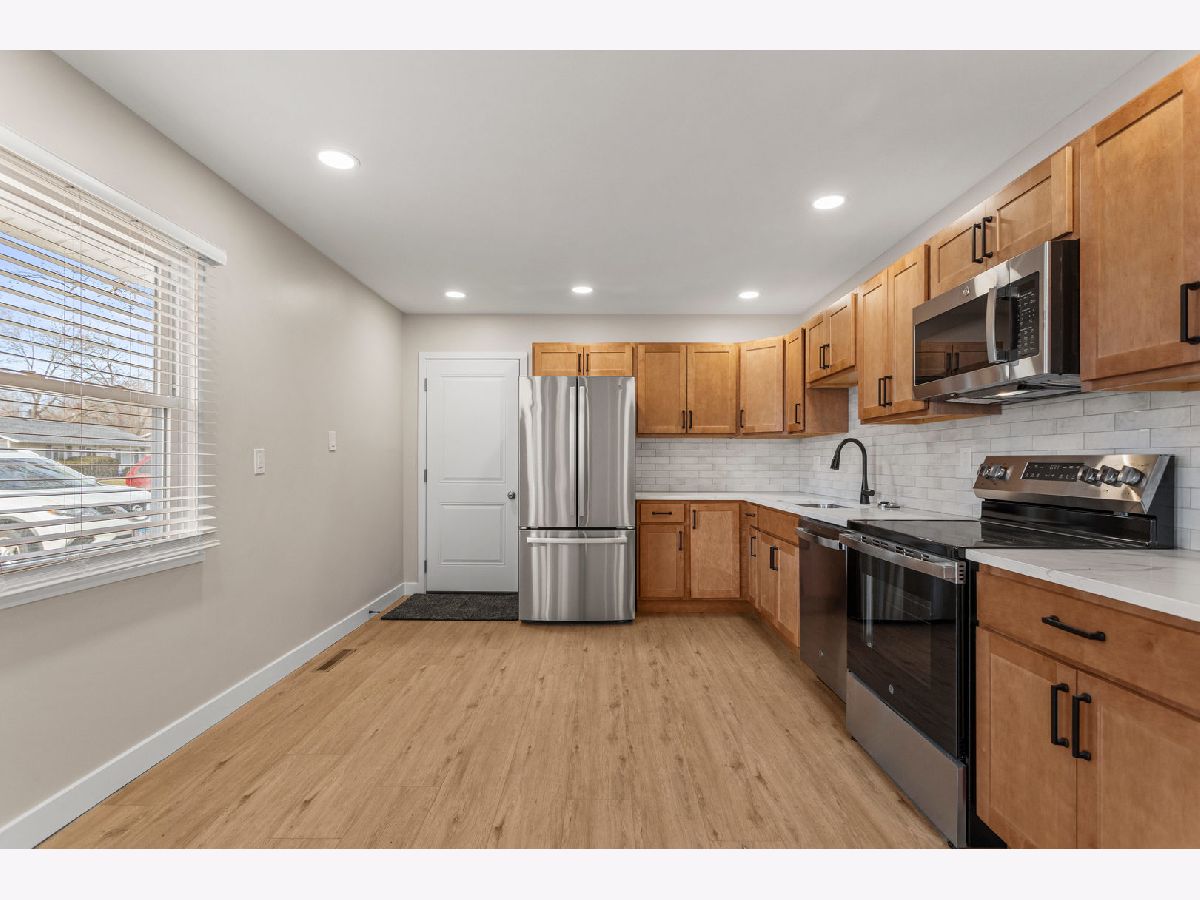 Completely Reimagined & Move-In Ready in South West Champaign! From the moment you arrive, this beautifully transformed home impresses with striking curb appeal and thoughtful modern upgrades throughout. No detail was overlooked-this is truly a turnkey property designed for today's buyer. Step inside to discover a brand-new kitchen featuring sleek quartz countertops, a ceramic tile backsplash, and all-new stainless-steel appliances, seamlessly blending style and function. Luxury vinyl plank flooring flows throughout the home, complemented by new base trim and contemporary lighting, including LED can lights that create a bright, inviting atmosphere. The fully renovated bathroom feels "awe" inspired with a lighted vanity mirror, elegant gold-accented fixtures, and stylish finishes. Practical upgrades include new laundry cabinetry, a new hot water heater, and a modern garage door for added convenience and peace of mind. Outside, enjoy a deep, nearly fully fenced backyard-perfect for entertaining, pets, or play-complete with a storage shed, new patio for grilling, and fresh landscaping. Additional exterior improvements include new front siding and a roof installed in 2001. Nothing to do but move in and enjoy this upscale home in a sought-after location. Broker owned.